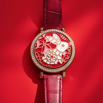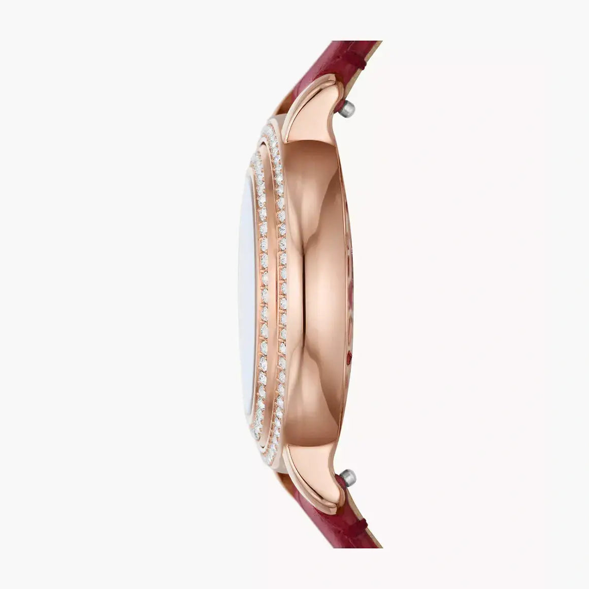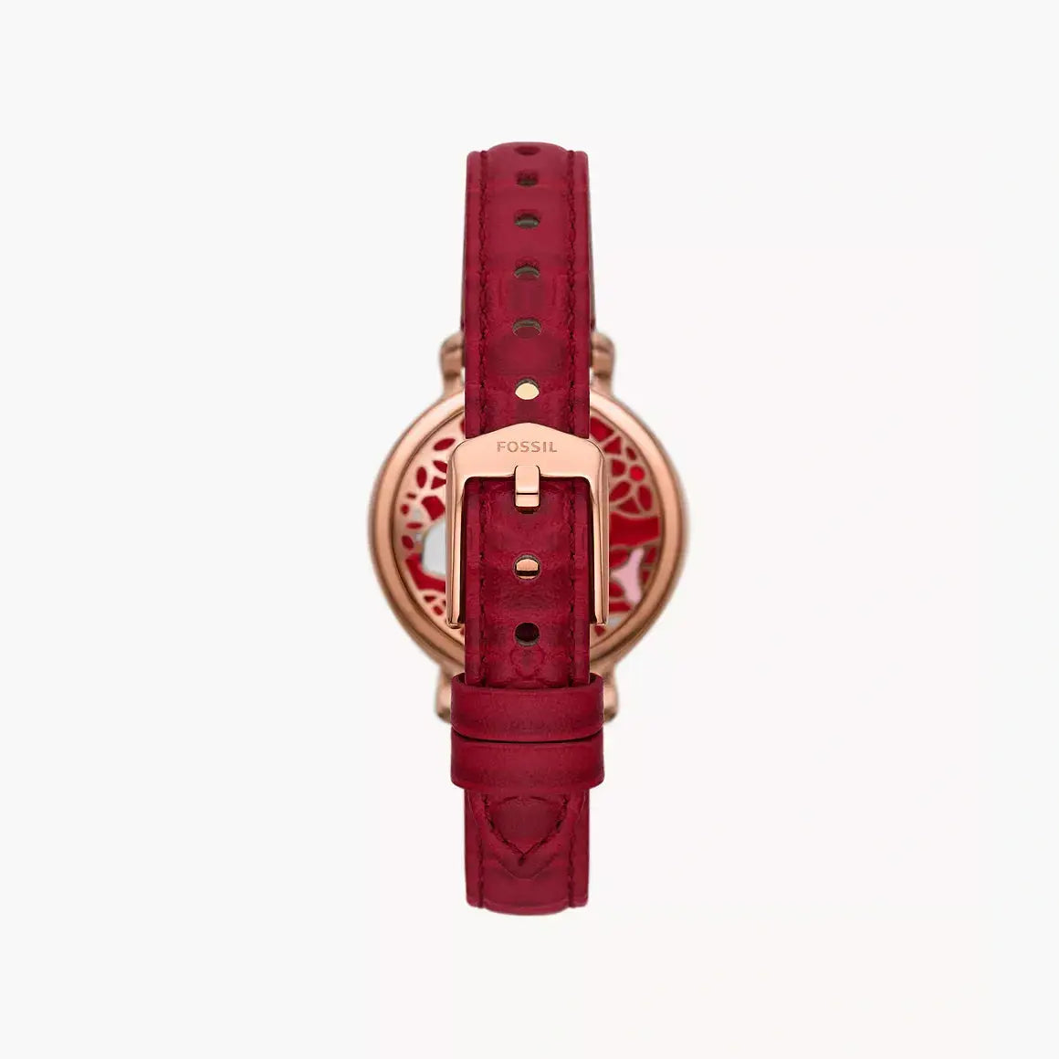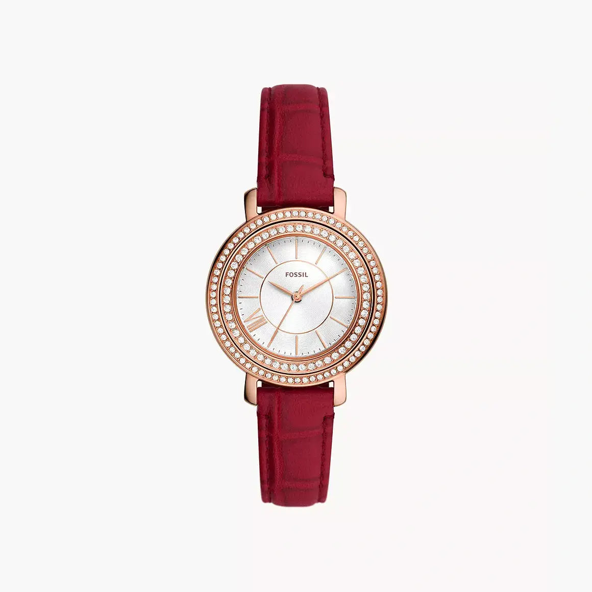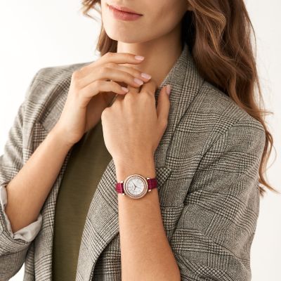 Go to the shopThis 34mm Jacqueline watch features a silver textured dial, three-hand movement and red LiteHide™ leather strap.