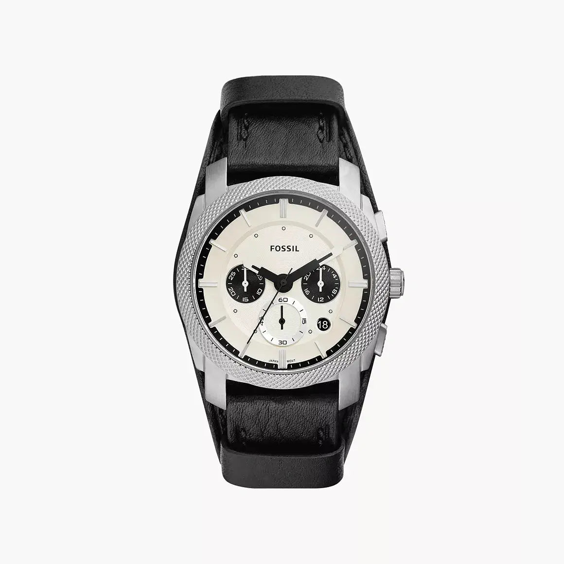 This 42mm Machine features a white satin, textured dial, chronograph movement and black LiteHide™ leather strap.