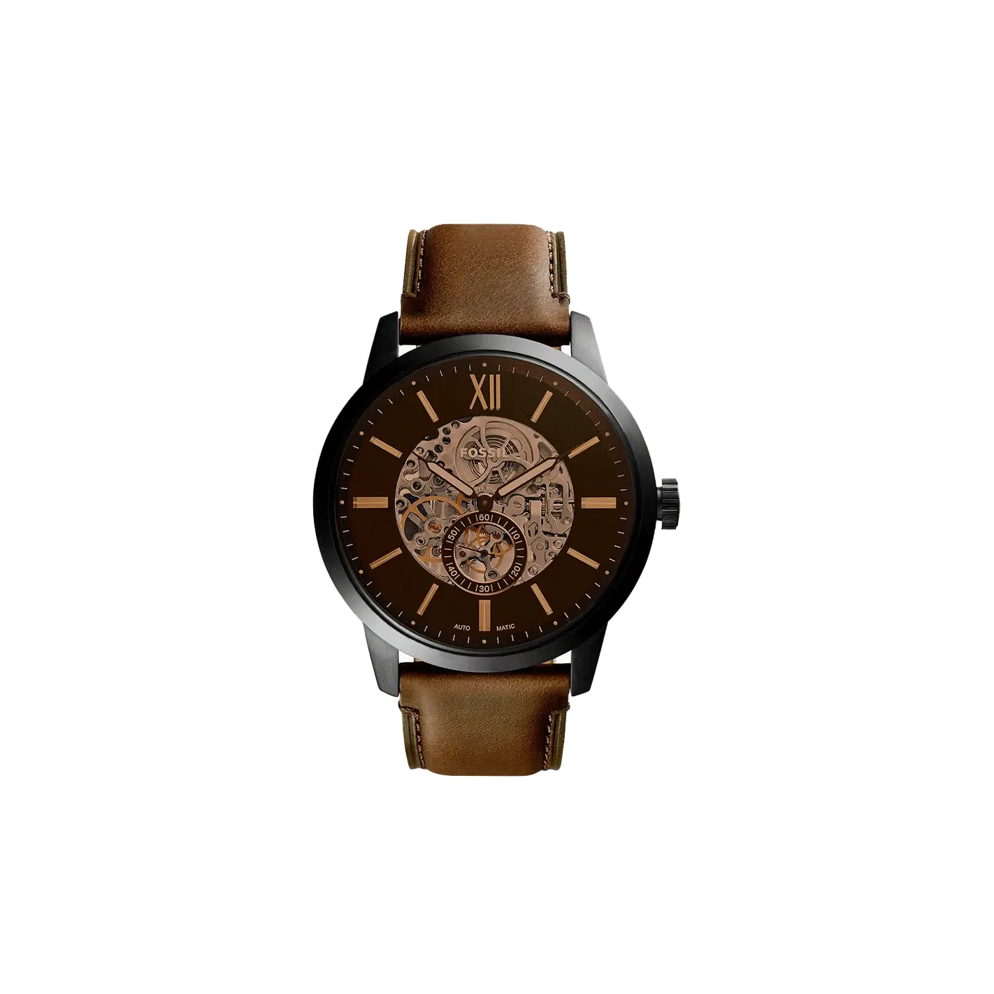 This sensational wrist watch breathes innovation. Daring and complex from the inside and out, our new automatic Townsman makes an unforgettable impression with a stunning steel case showcasing a see-through skeleton dial. This beautiful watch boast of two peach lum hands, peach lum dash markings at all hours, brown leather strap and all you can do is abide and let it adorn your wrist and do what it does best.