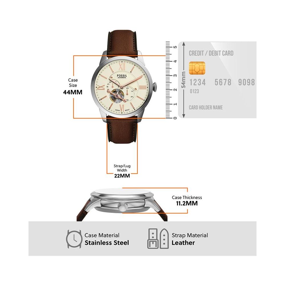 The Townsman,s traditional open heart dial offers a glimpse of its precision Japanese automatic movement in action. Its centerpiece,the balance wheel,is constantly spinning back and forth, bringing the watch to life. Fossil leather products support responsible manufacturing via the Leather Working Group.