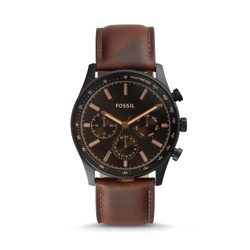 Style and function combine in the House of Fossil's brown multifunction watch makes it unique. This 44mm Sullivan features a black sunray dial with a true amber crystal, multifunction movement and a brown leather strap. The stylish design is quickly recognizable and looks great with all kinds of outfits.