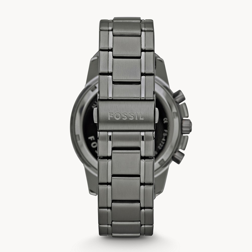 Smoke grey ion-plated stainless steel case and bracelet. Fixed smoke grey ion-plated bezel. Black dial with luminous hands and Arabic numeral hour markers. Minute markers around the outer rim. Dial Type: Analog. Luminescent hands and markers. Date display at the 3 o'clock position. Chronograph - three sub-dials displaying: 60 second,...