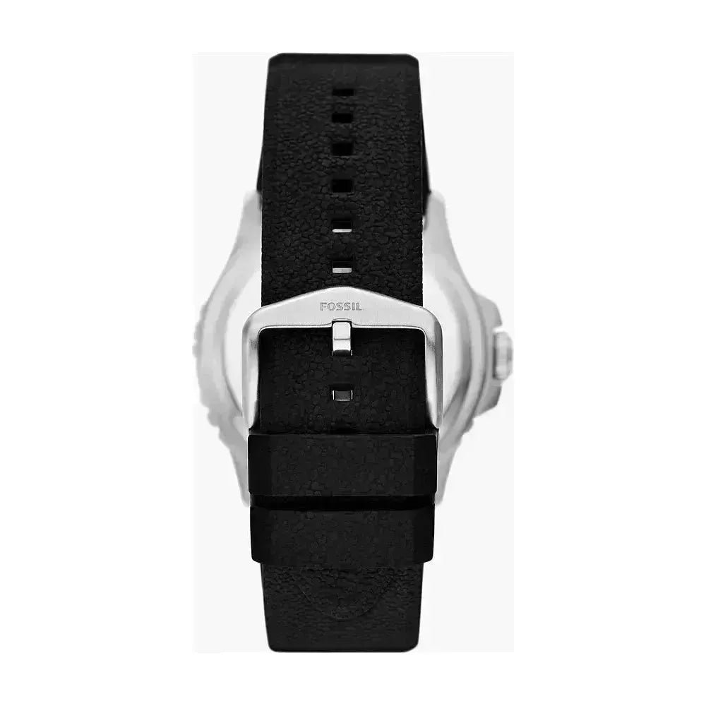 This 46mm Fossil Blue GMT features a black and blue sunray dial, GMT movement and black silicone strap.