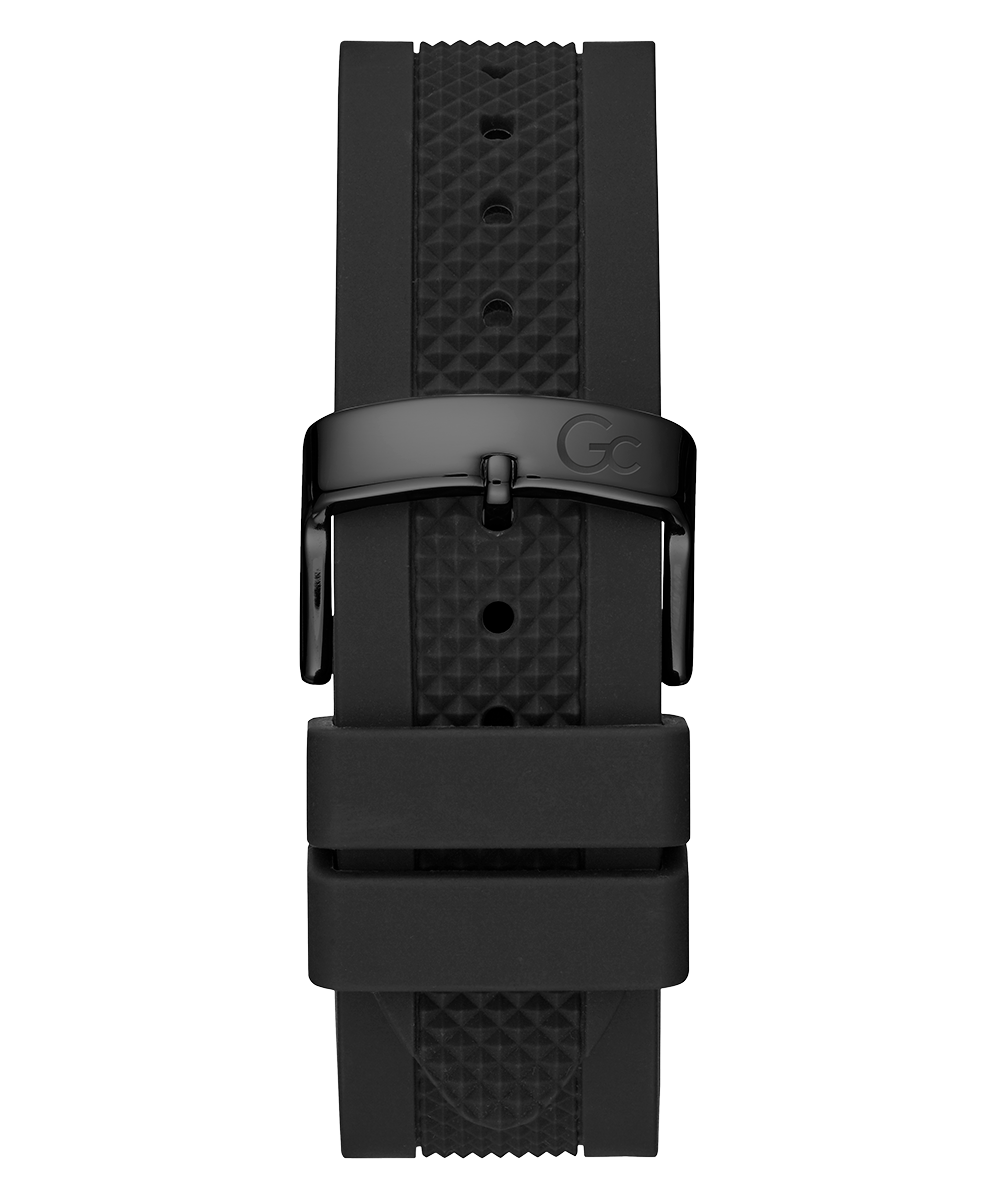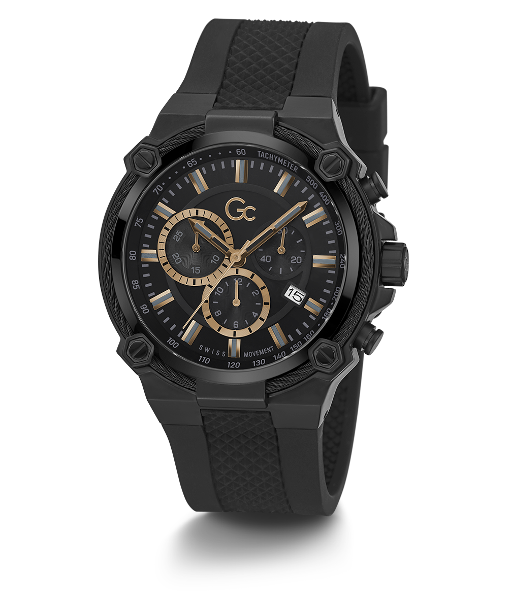 An impressive black tone-on-tone men's sports chronograph with black cable on bezel and matching silicone strap