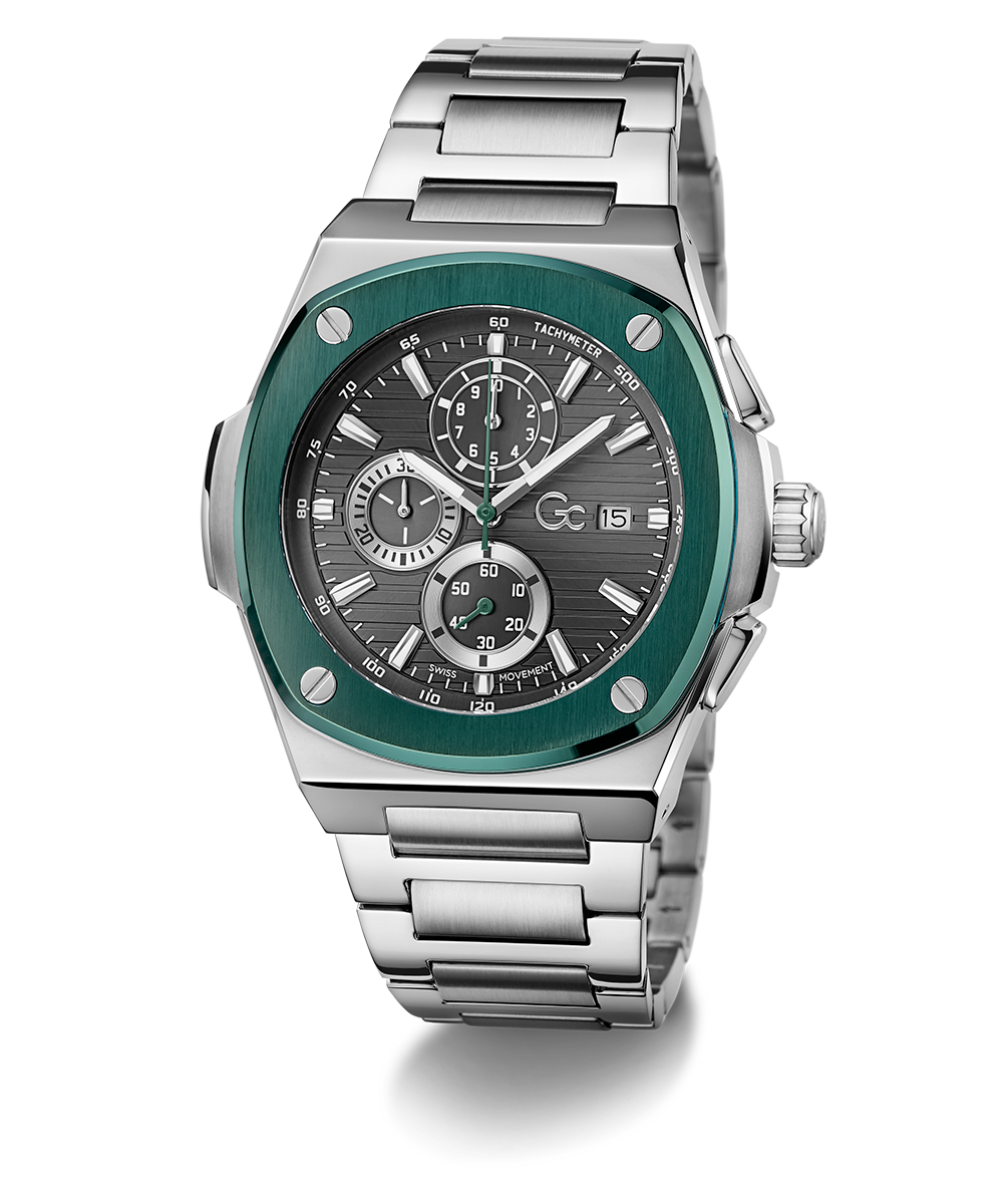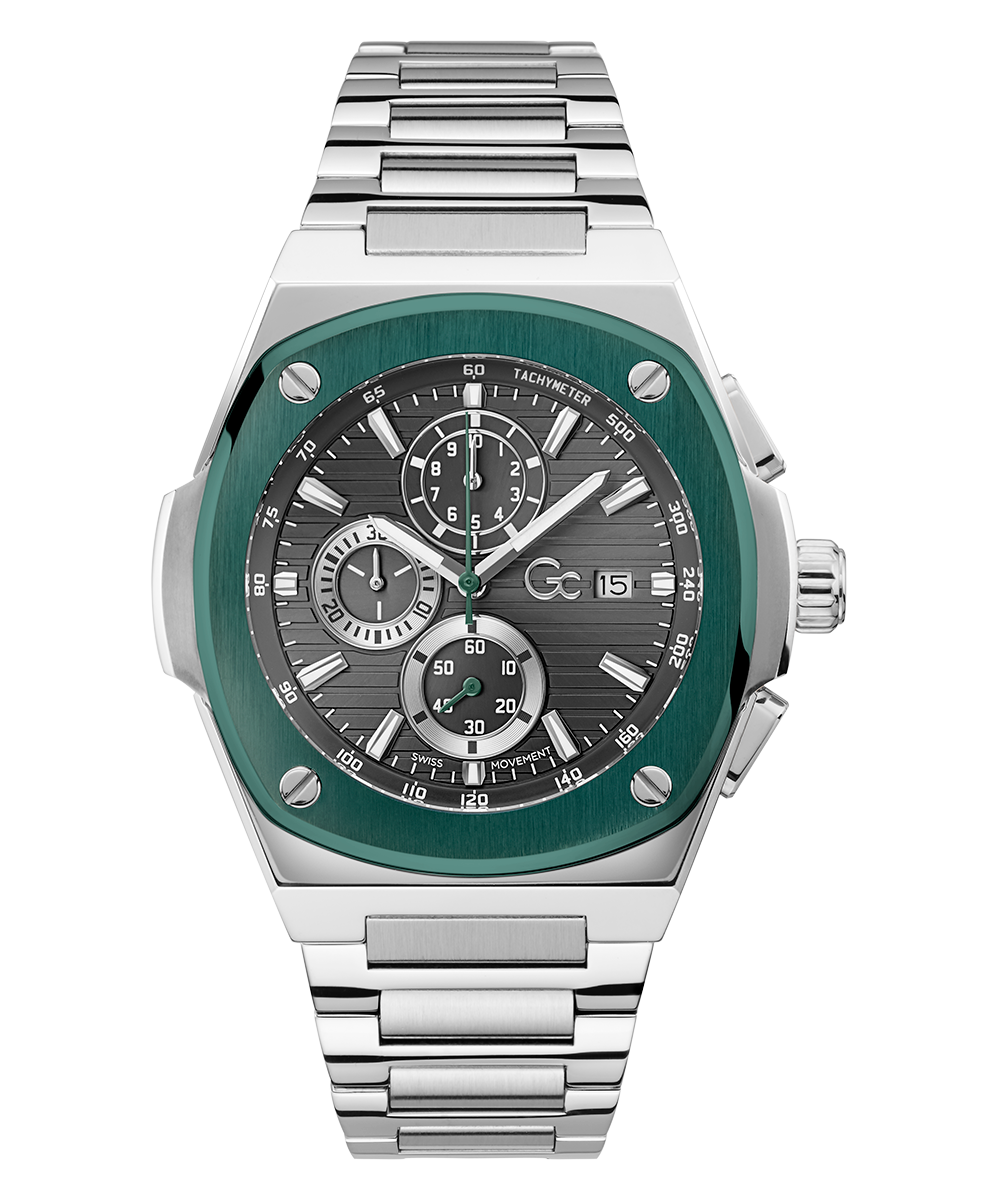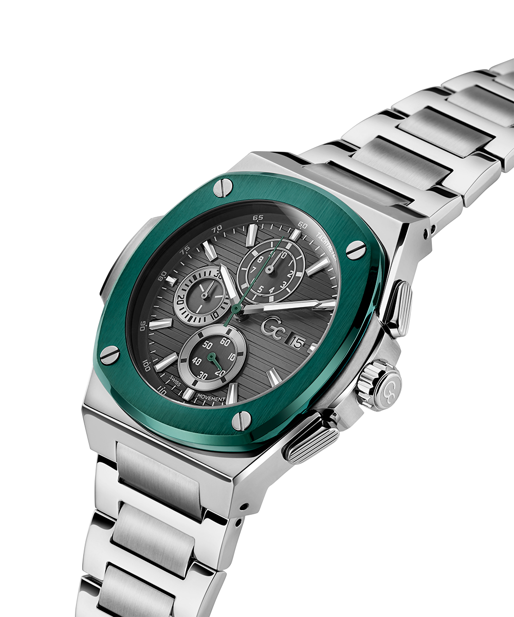 Bold styling and strong character define the male version of the Gc Coussin Shape. Featuring a 44mm case and a highly detailed gun striped pattern dial, this chronograph exudes a premium horological mastery. The screw design details on the bezel harmonize with the elevated aesthetic, while the silver tone case...