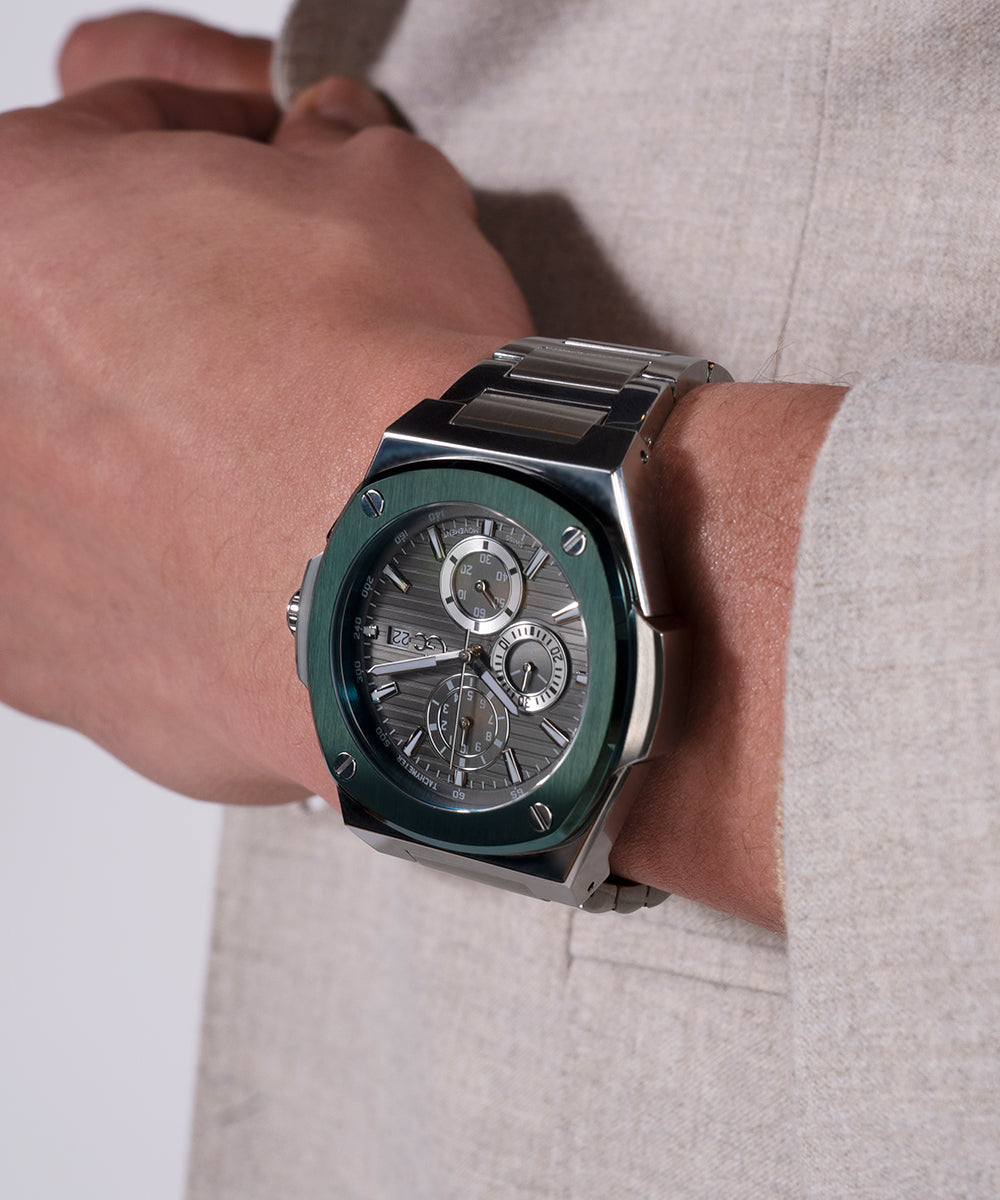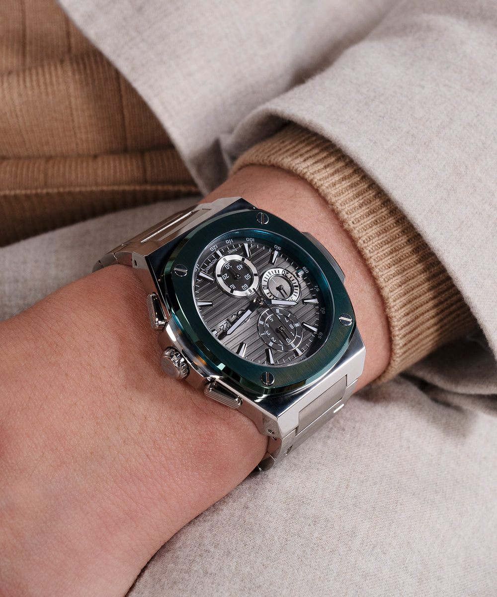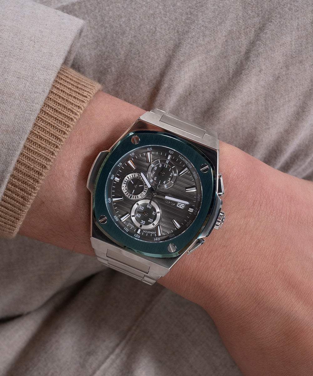 Bold styling and strong character define the male version of the Gc Coussin Shape. Featuring a 44mm case and a highly detailed gun striped pattern dial, this chronograph exudes a premium horological mastery. The screw design details on the bezel harmonize with the elevated aesthetic, while the silver tone case...