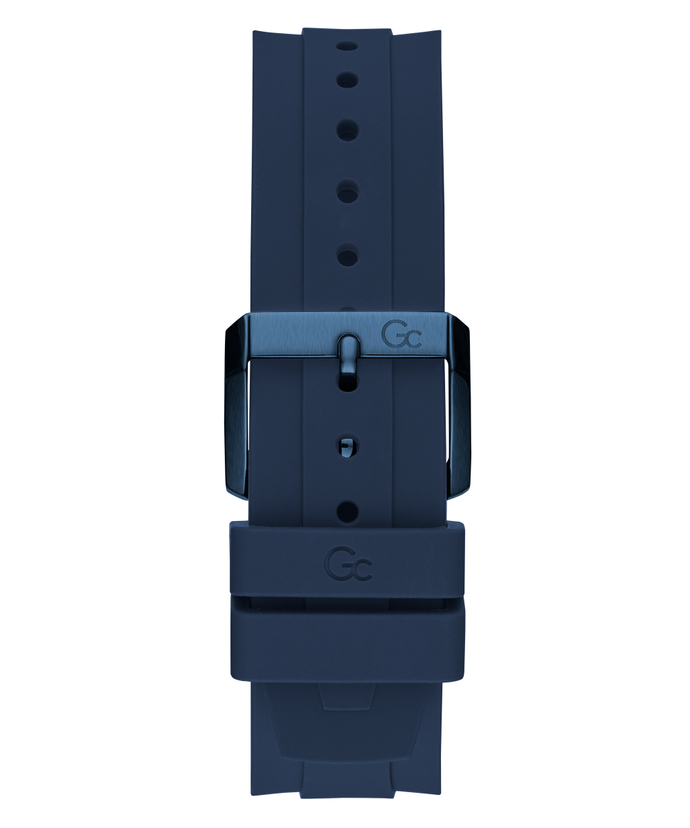 Bold styling and strong character for the Gent version of the Gc coussin shape.With its 44mm case and highly detailed black square pattern dial, this chronograph offers a look of premium horological mastery.The screw design details on the bezel all in harmony with the total blue look and the silicon...