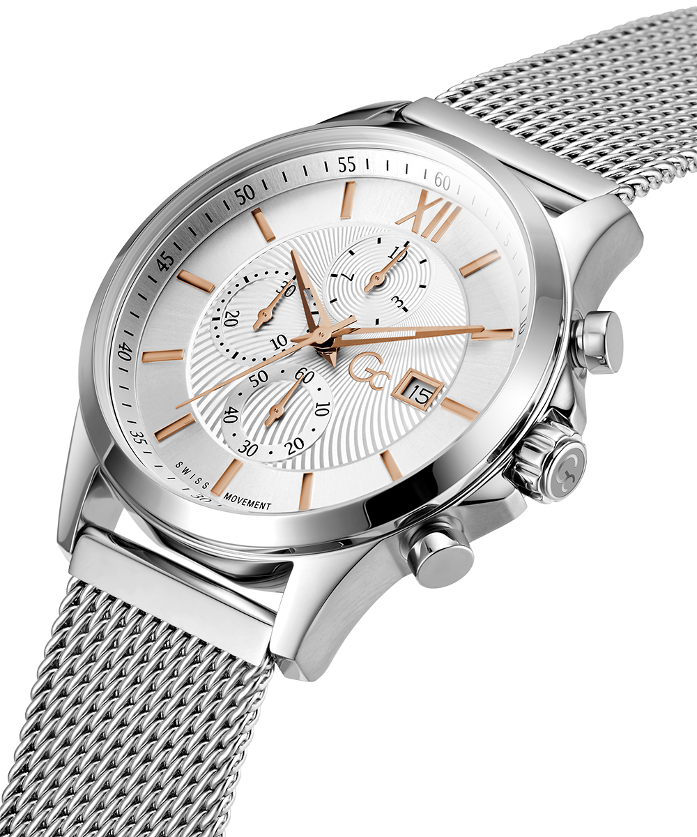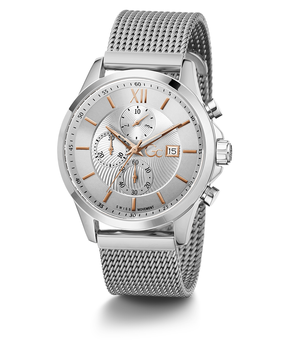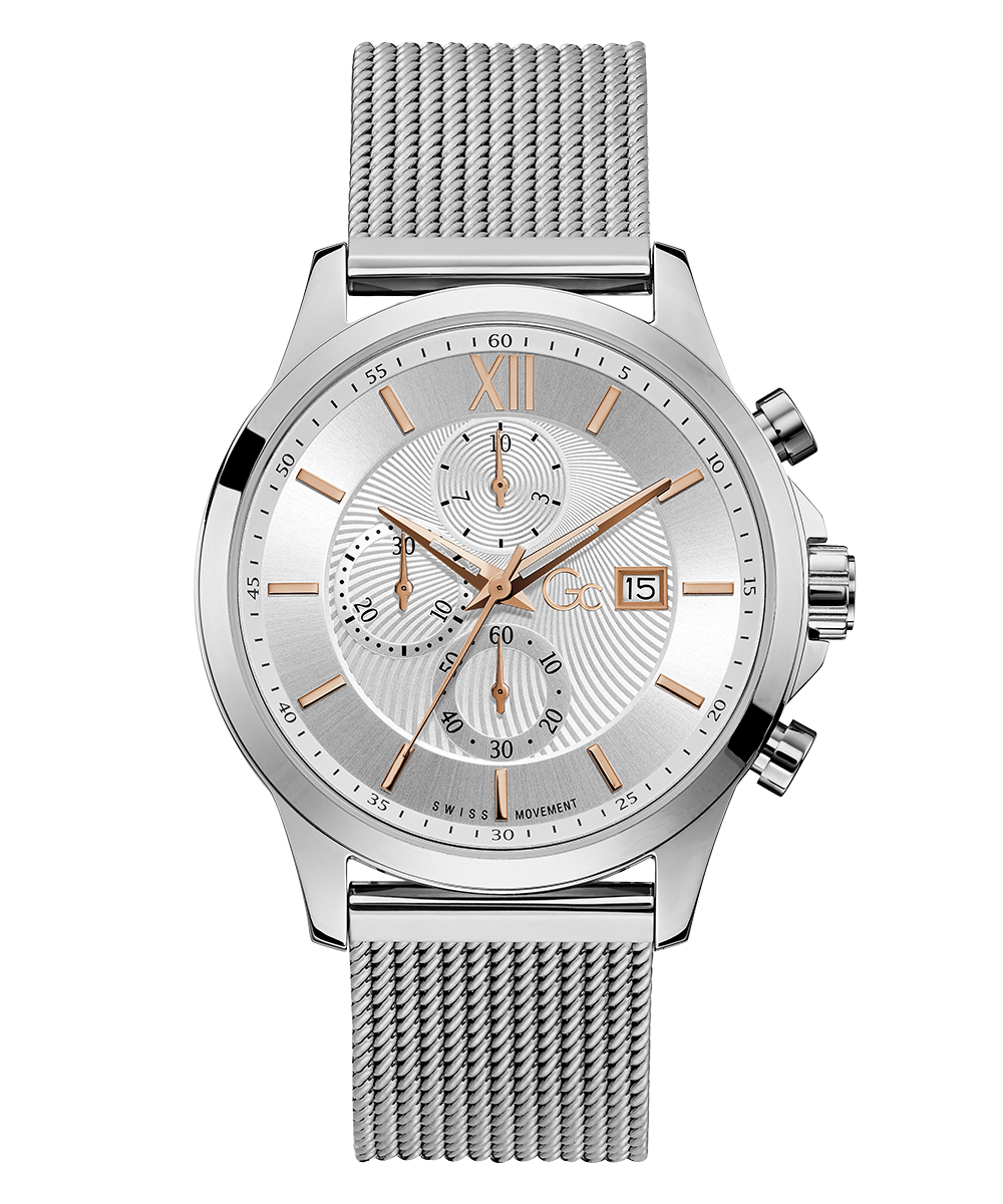 Go to the shopAdopt a look of classic elegance with a fashionable touch. The pure lines of this all silver tone men's chronograph combine with its silver guilloché dial on a stylish contemporary silver tone mesh bracelet