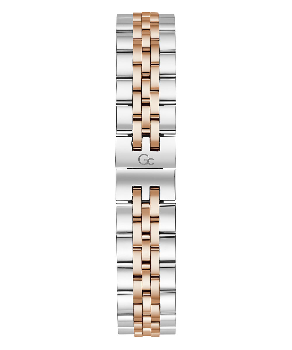 Add a touch of refinement to your everyday wardrobe with the Gc Flair. It has a distinctive notched bezel and a comfortable, supple five links bracelet and, for the two-tone version, an eye-catching sunray white dial with a visible day date swiss movement through windows at 3 and 6 o'clock.