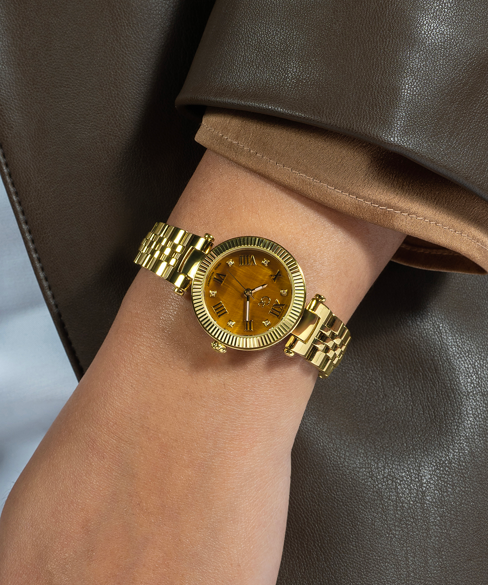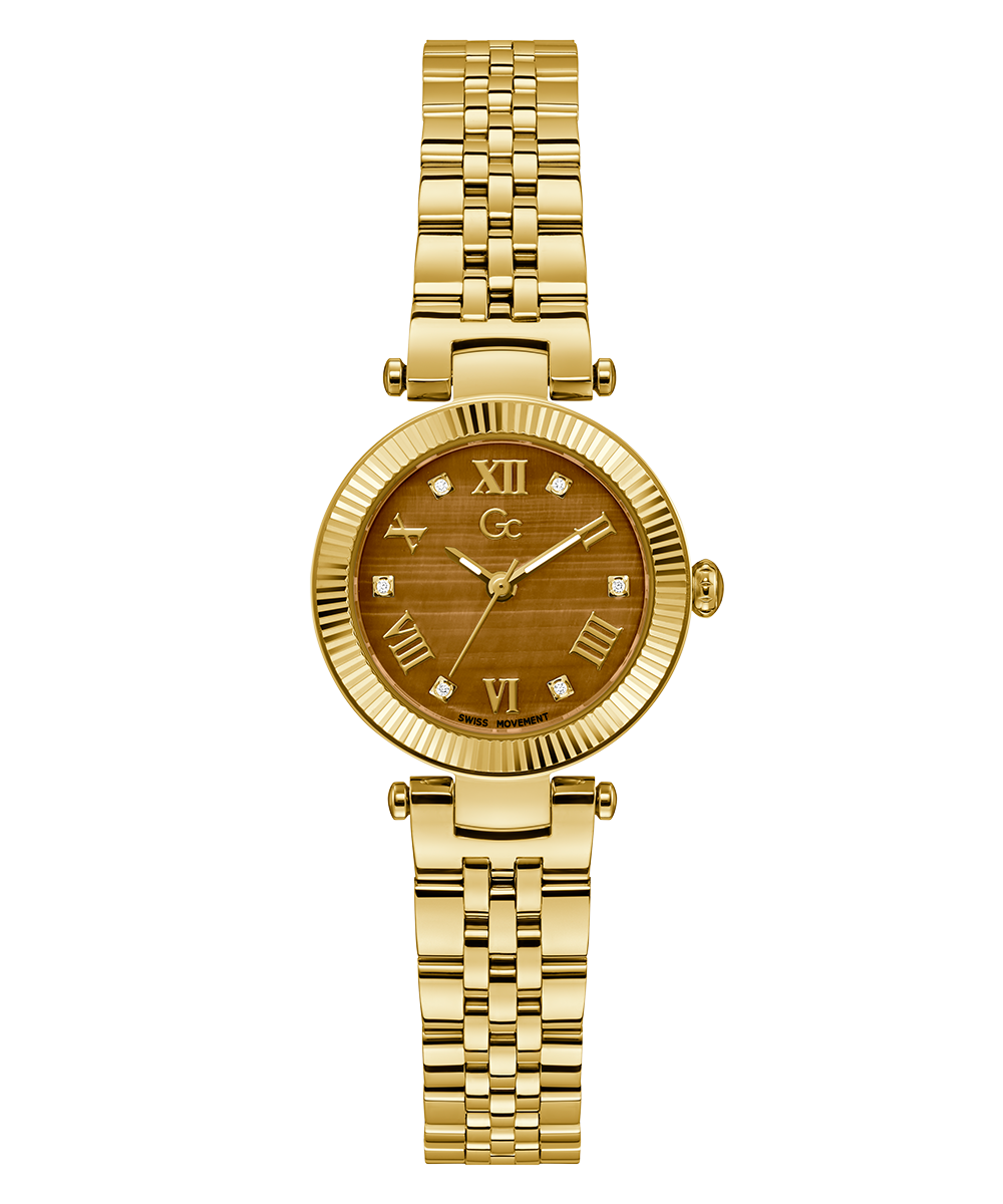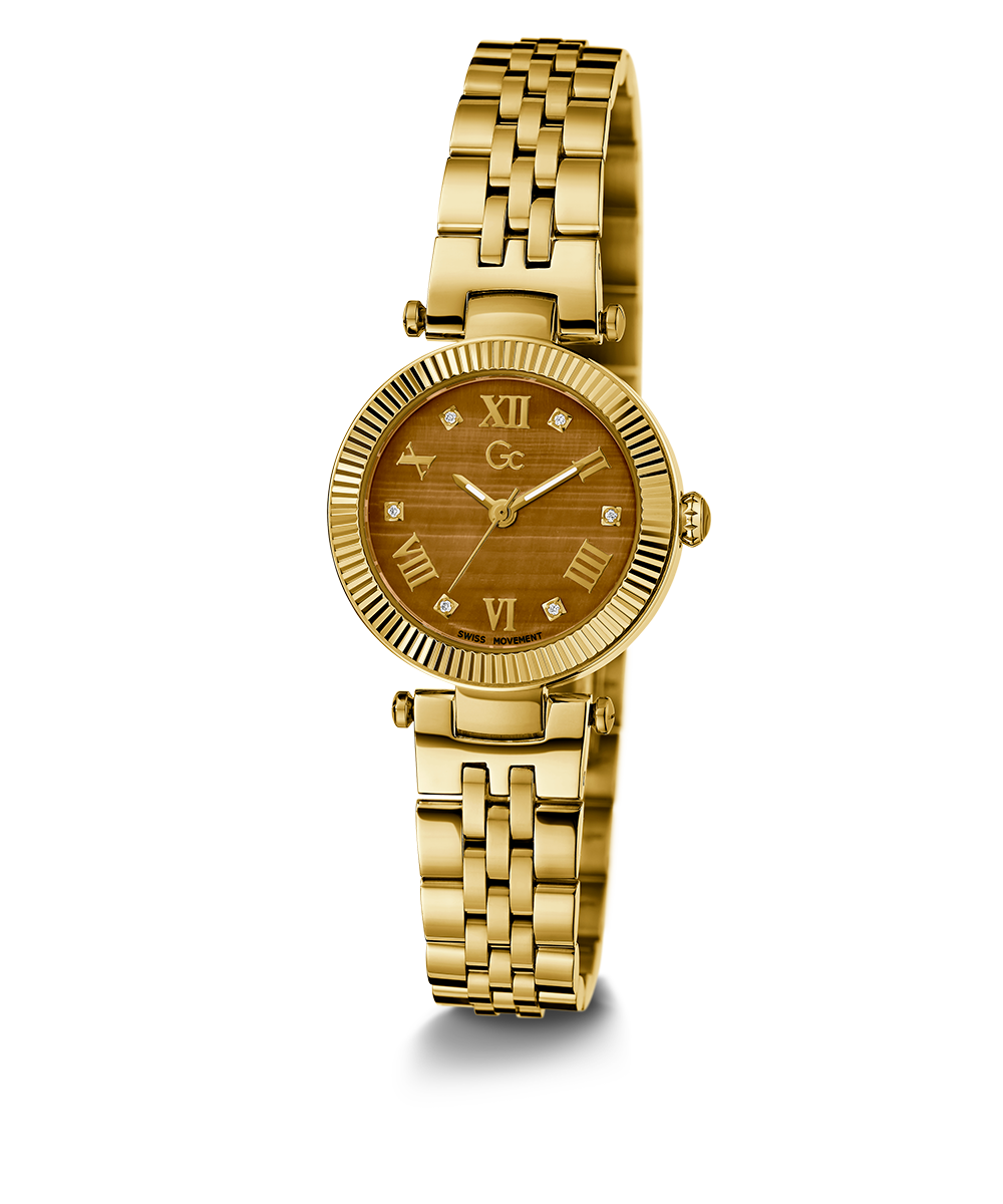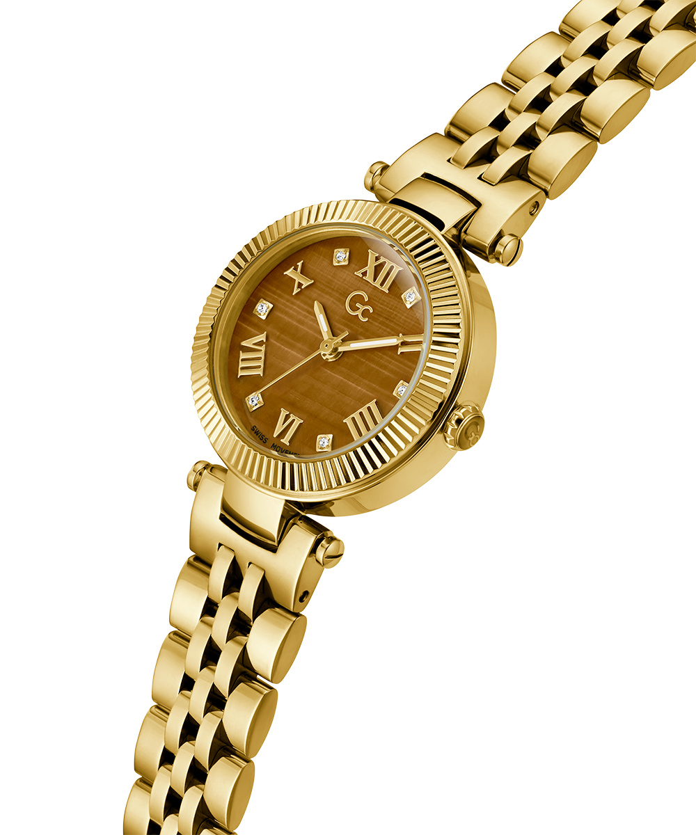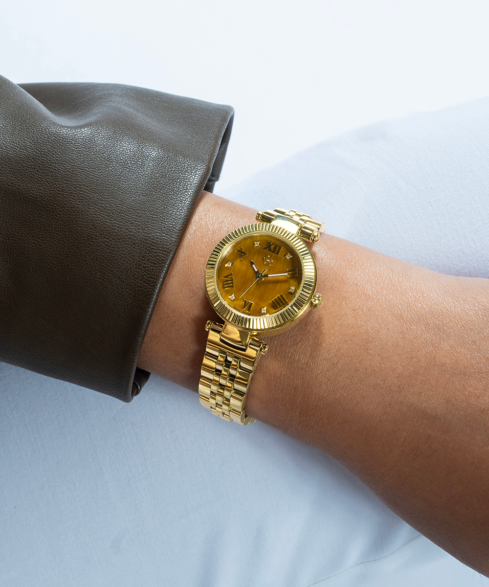 Gc Watches is creating moments that captivate with our Gemstone collection. Various moments relate to our customers that have developed an emotional connection to our brand. Three gemstones have been chosen to highlight the timepieces' fundamentals with their gem meanings. The bronze dial is crafted in genuine Tiger Eye, a...