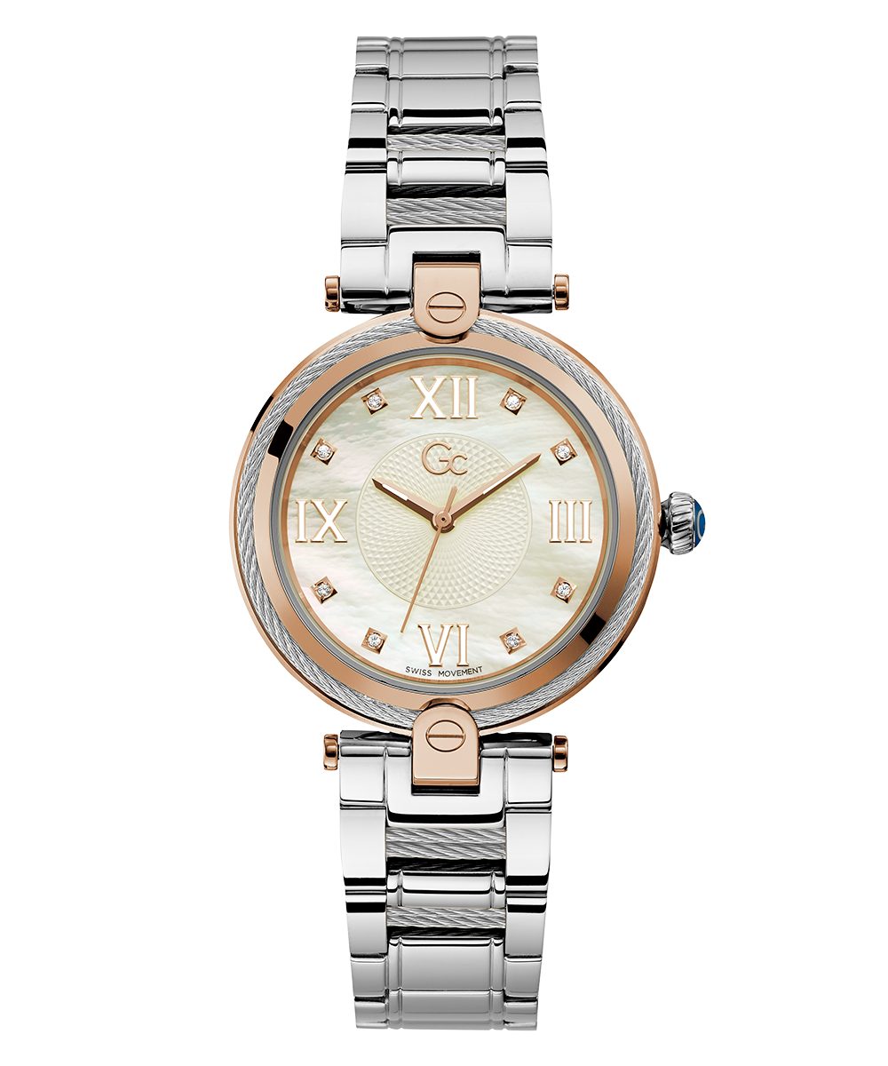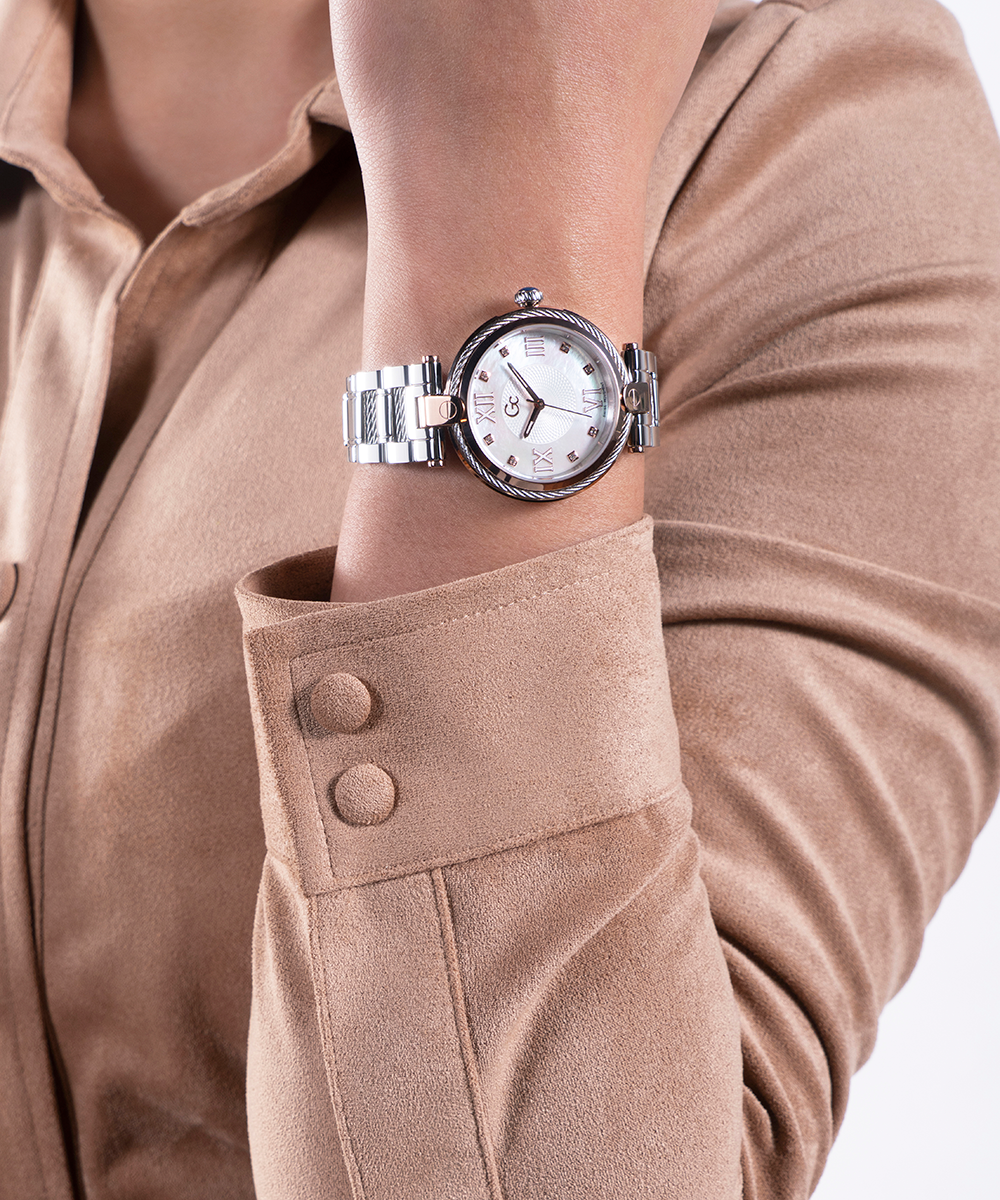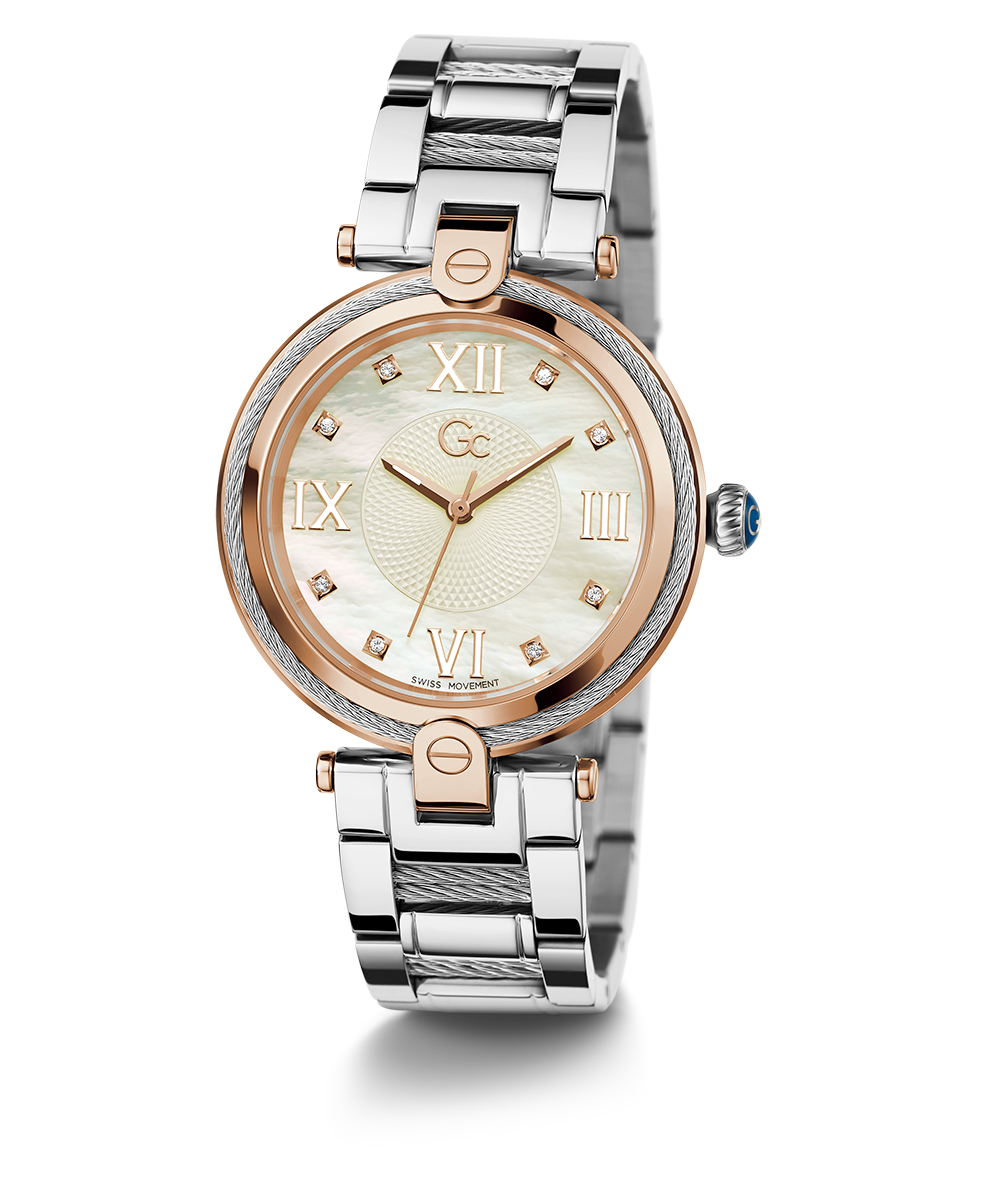 Don’t resist the charm of the Gc FUSION and its new declination enhanced with glittering cable details on bezel and bracelet. The elegant white mother of pearl dial is set with crystals on the indices and roman numbers at 3, 6, 9 and 12 o’clock, perfectly matching both the rose...