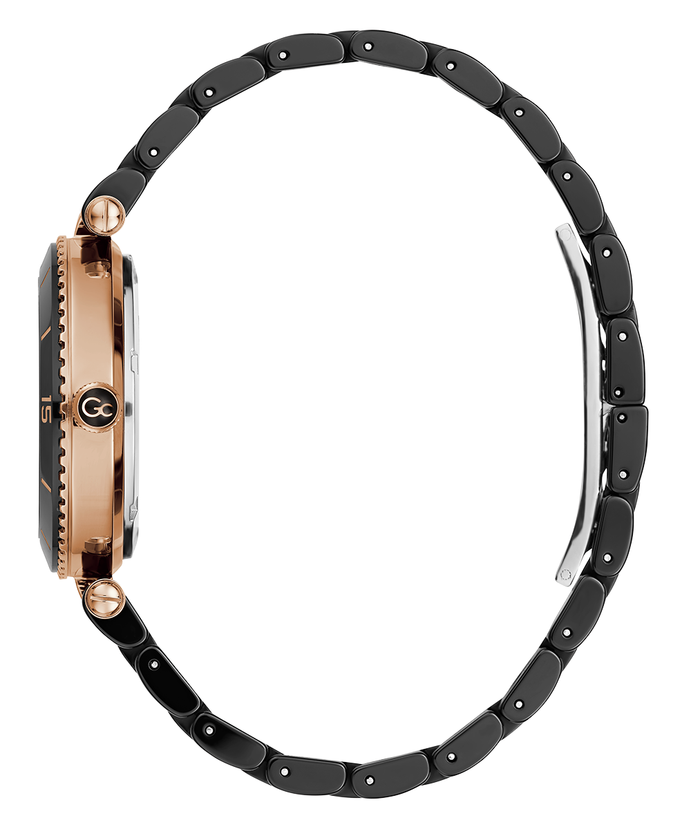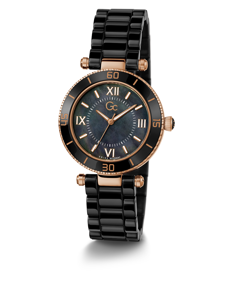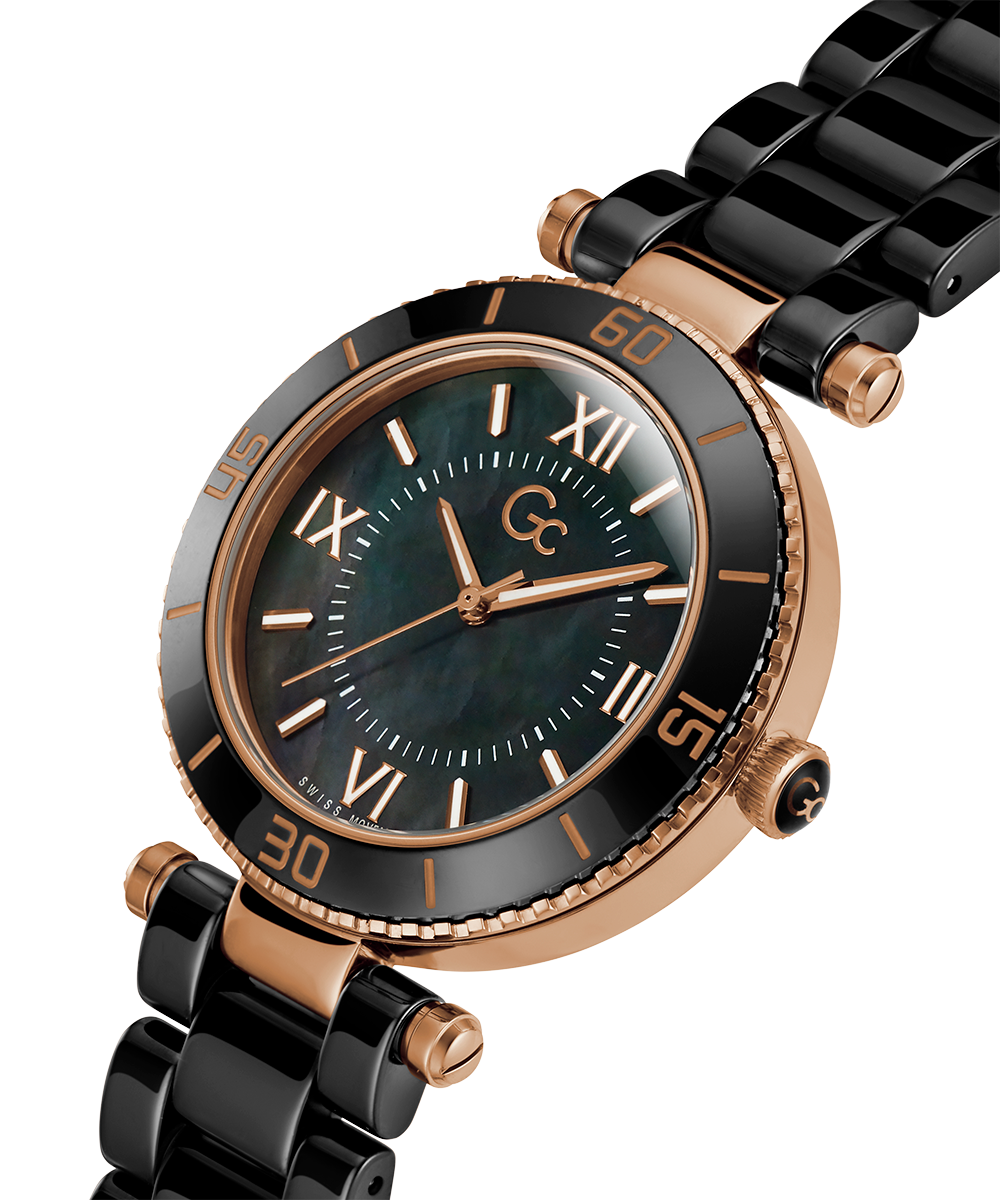 Back to origins with this Ceramic version of the Gc Muse model. With full black ceramic and MOP dial, three-link bracelet and a refined diver top ring, this timepiece brings back all the design elements that makes Gc watch a perfect companion. The crenulated black & rose gold bezel add...