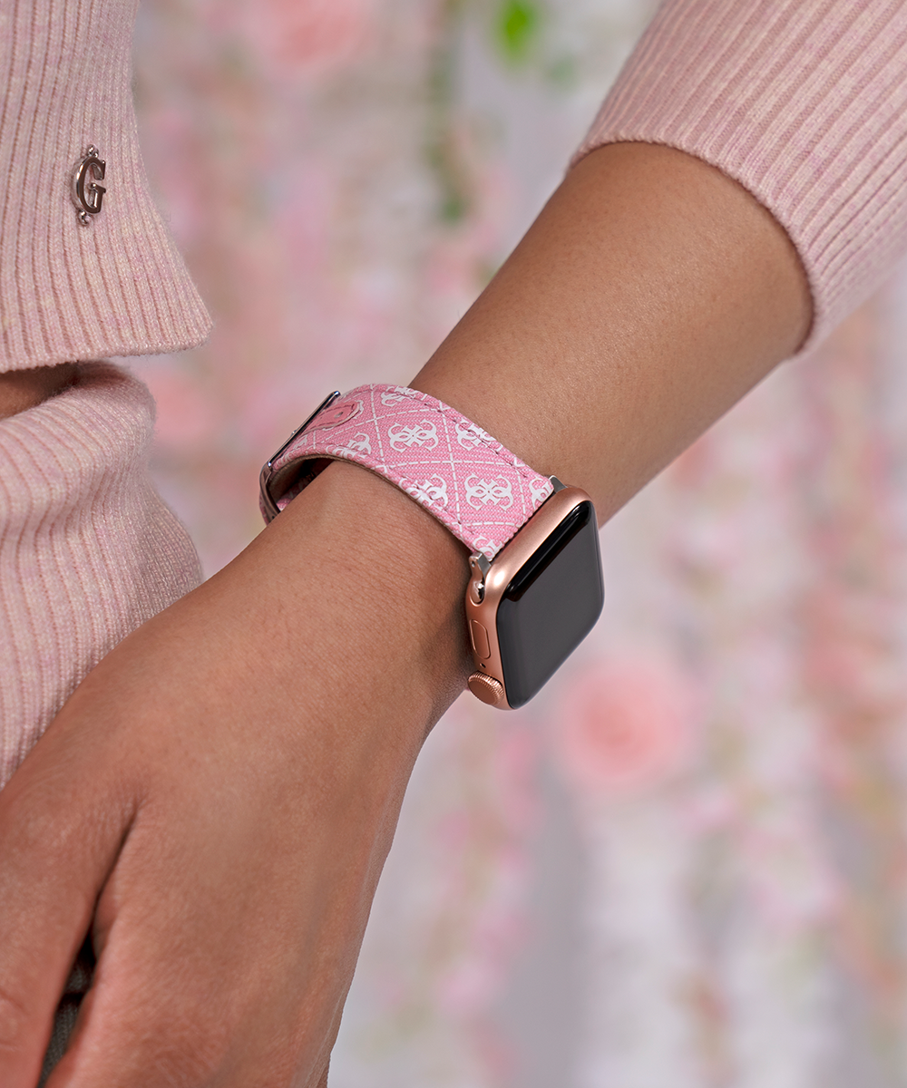 Part of our Breast Health Awareness collection, this pink denim strap features the signature quattro "G" logo in white. Compatible with Apple Watches 38-40 mm. *Apple Watch not included