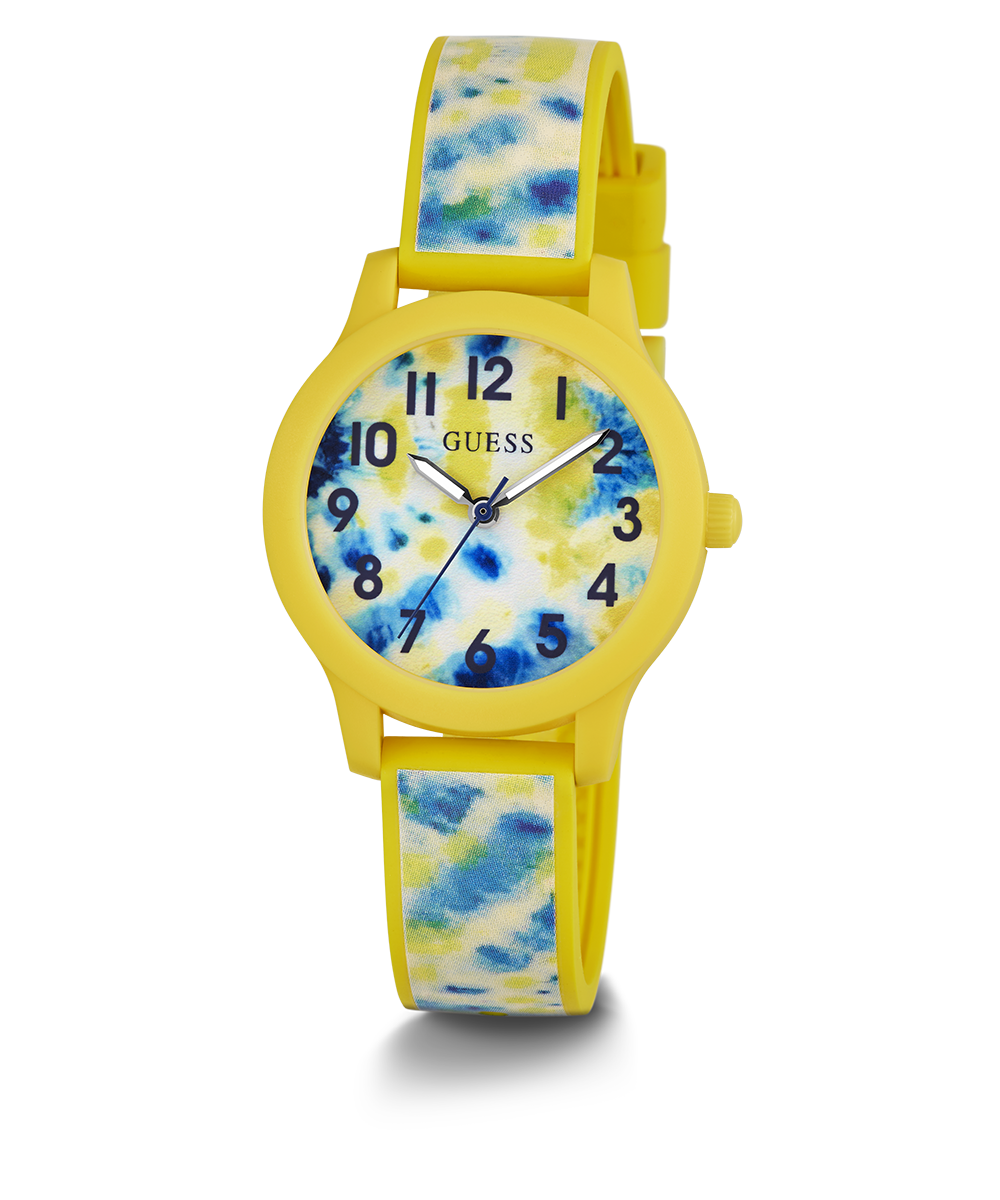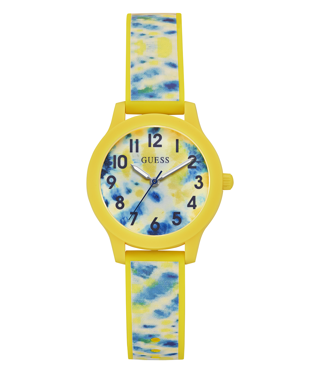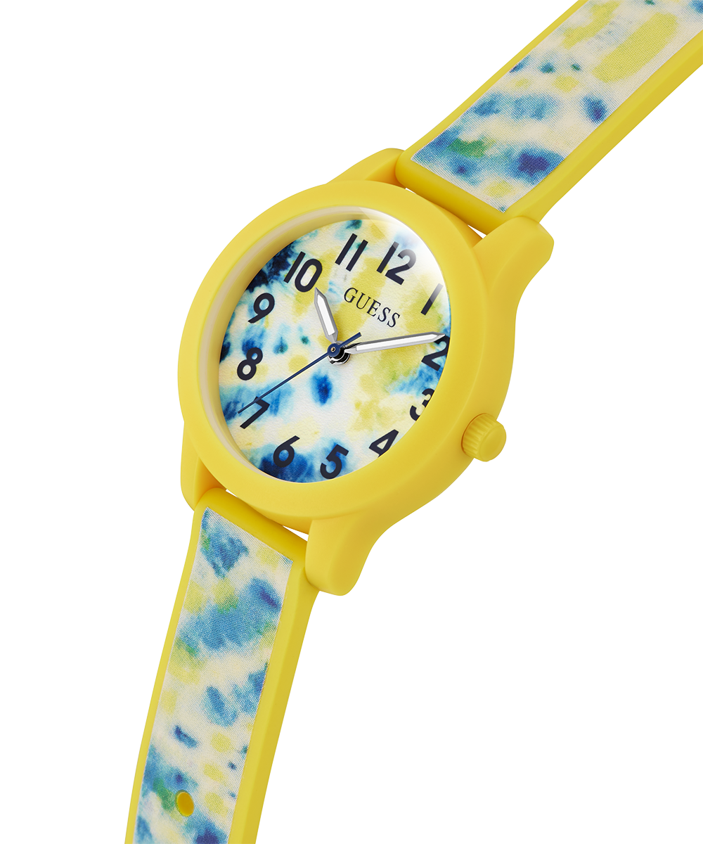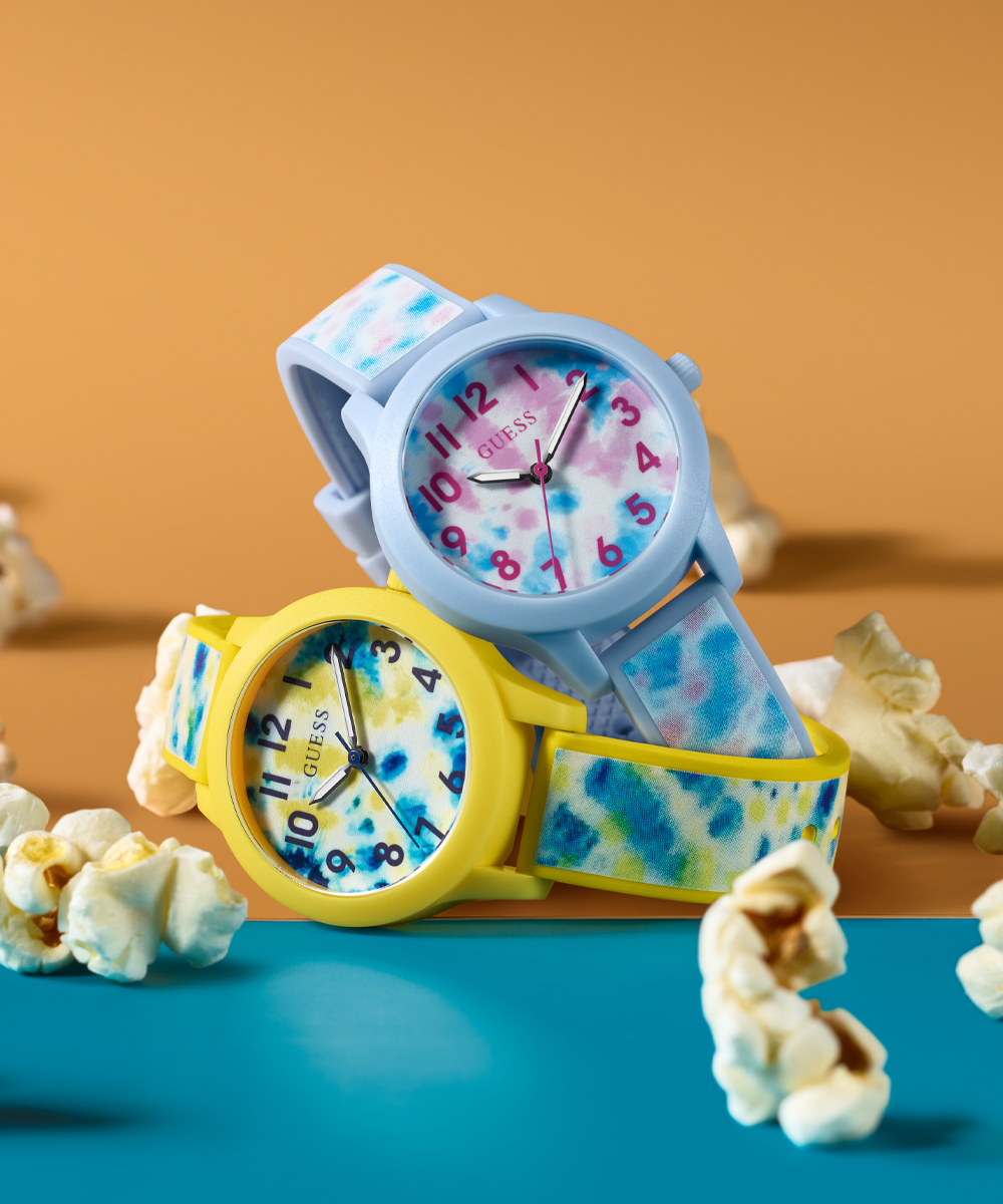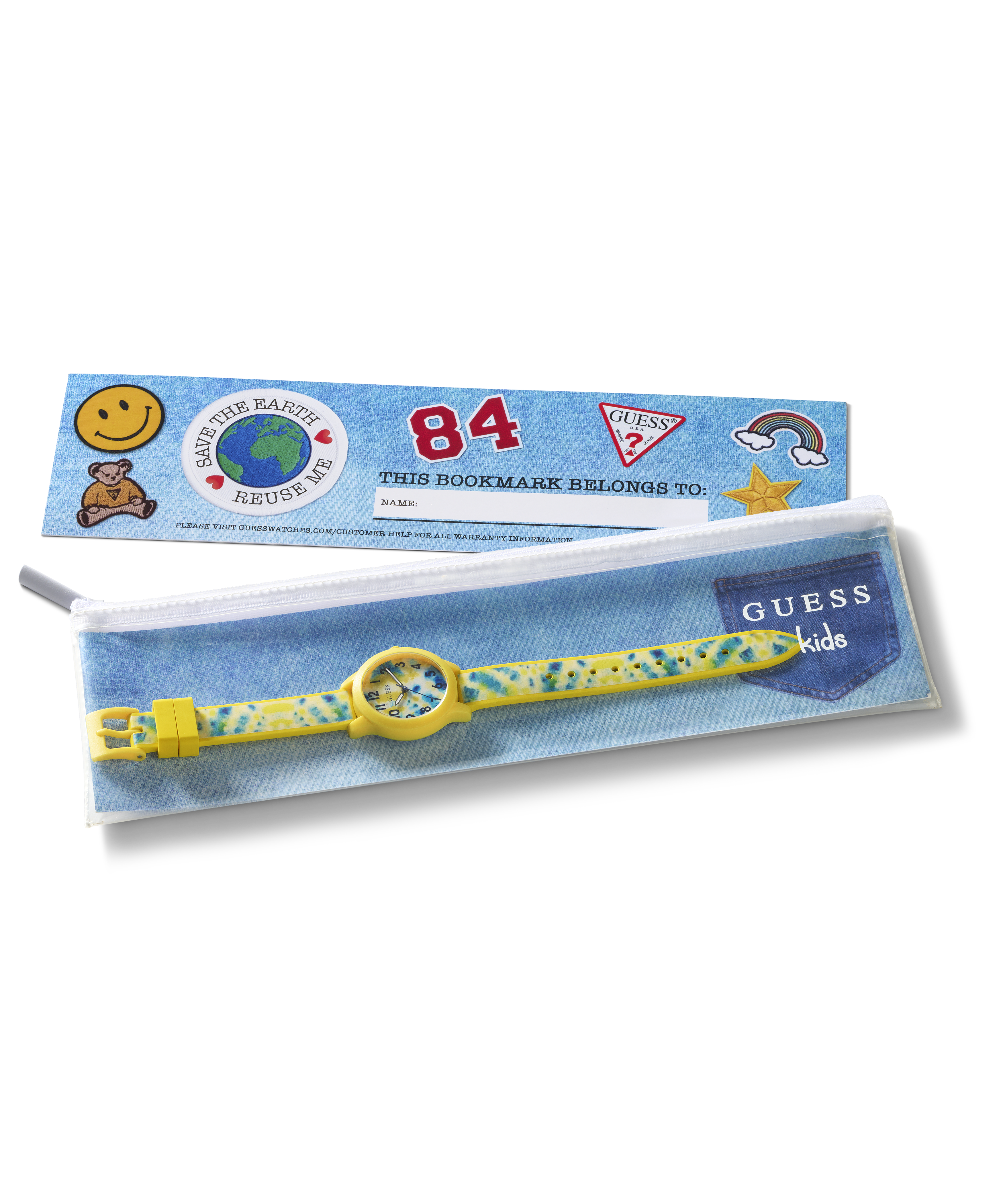 This colorful 32 mm kids bio-based watch features a tie dye pattern throughout both the dial and strap and bold numerals for easy time telling. This style ships in a recycled plastic pouch that doubles as a pencil case and has an insert that also can be used as a...