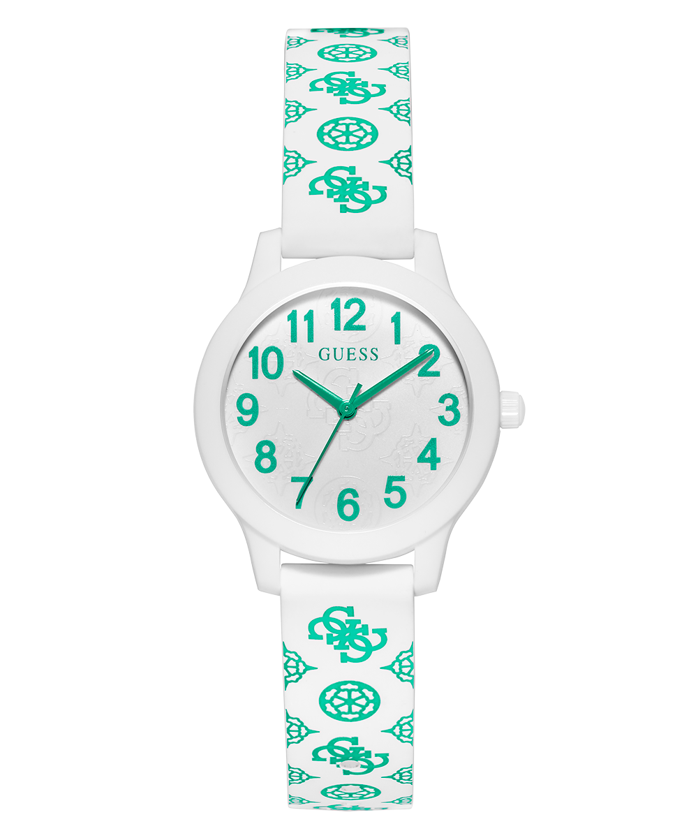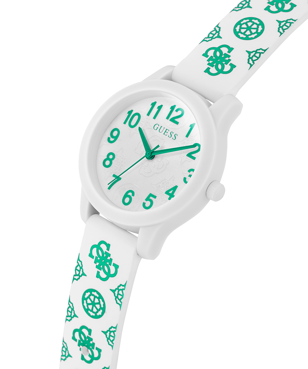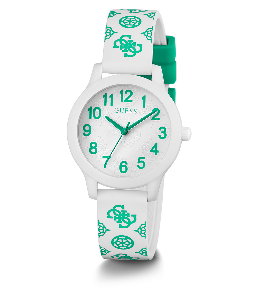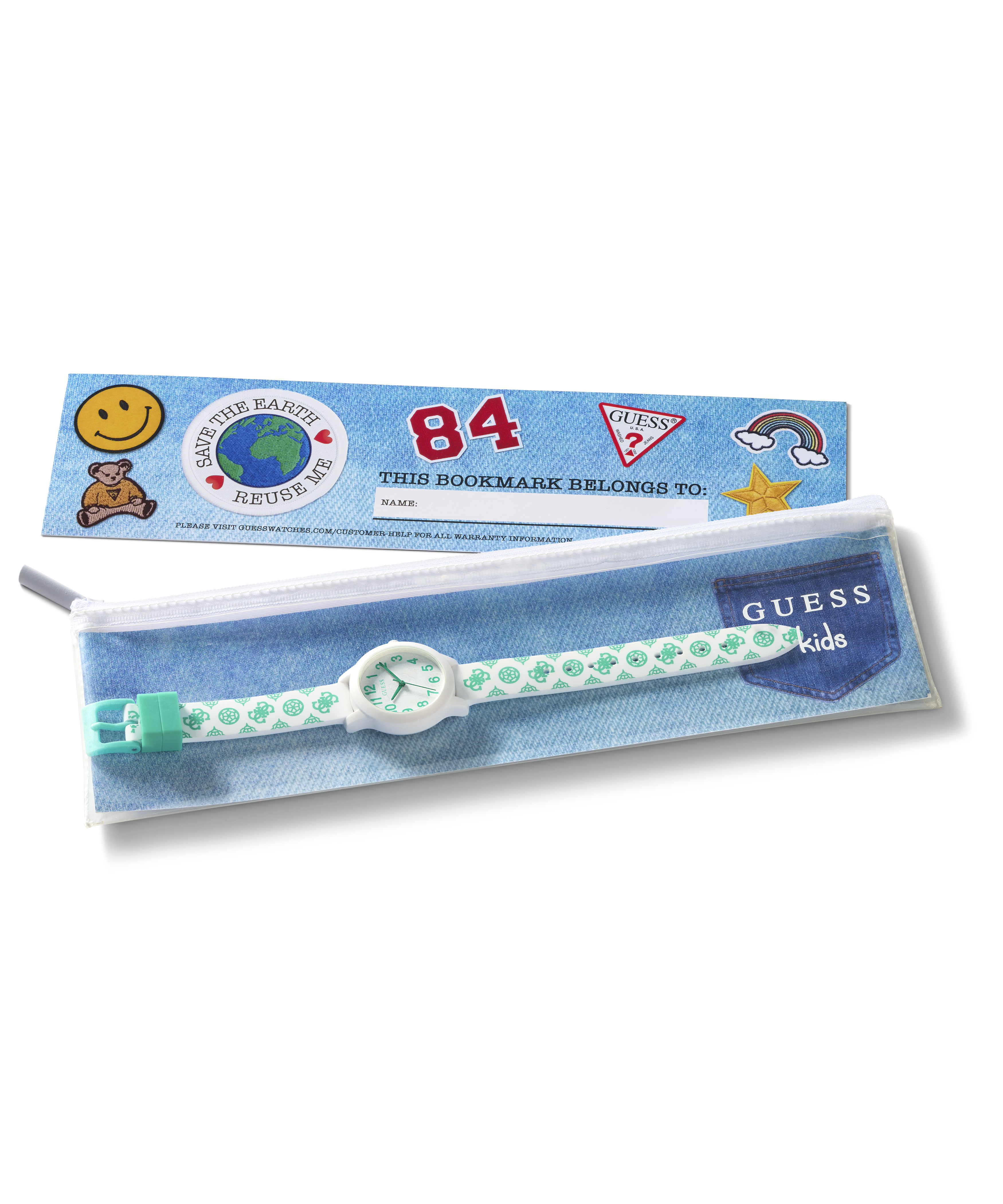 This fun and colorful 32 mm kids bio-based watch features both the iconic Peony "G" and the Quattro "G" logo patterns from strap to dial with bold numerals for easy time telling. This style ships in a recycled plastic pouch that doubles as a pencil case and has an insert...