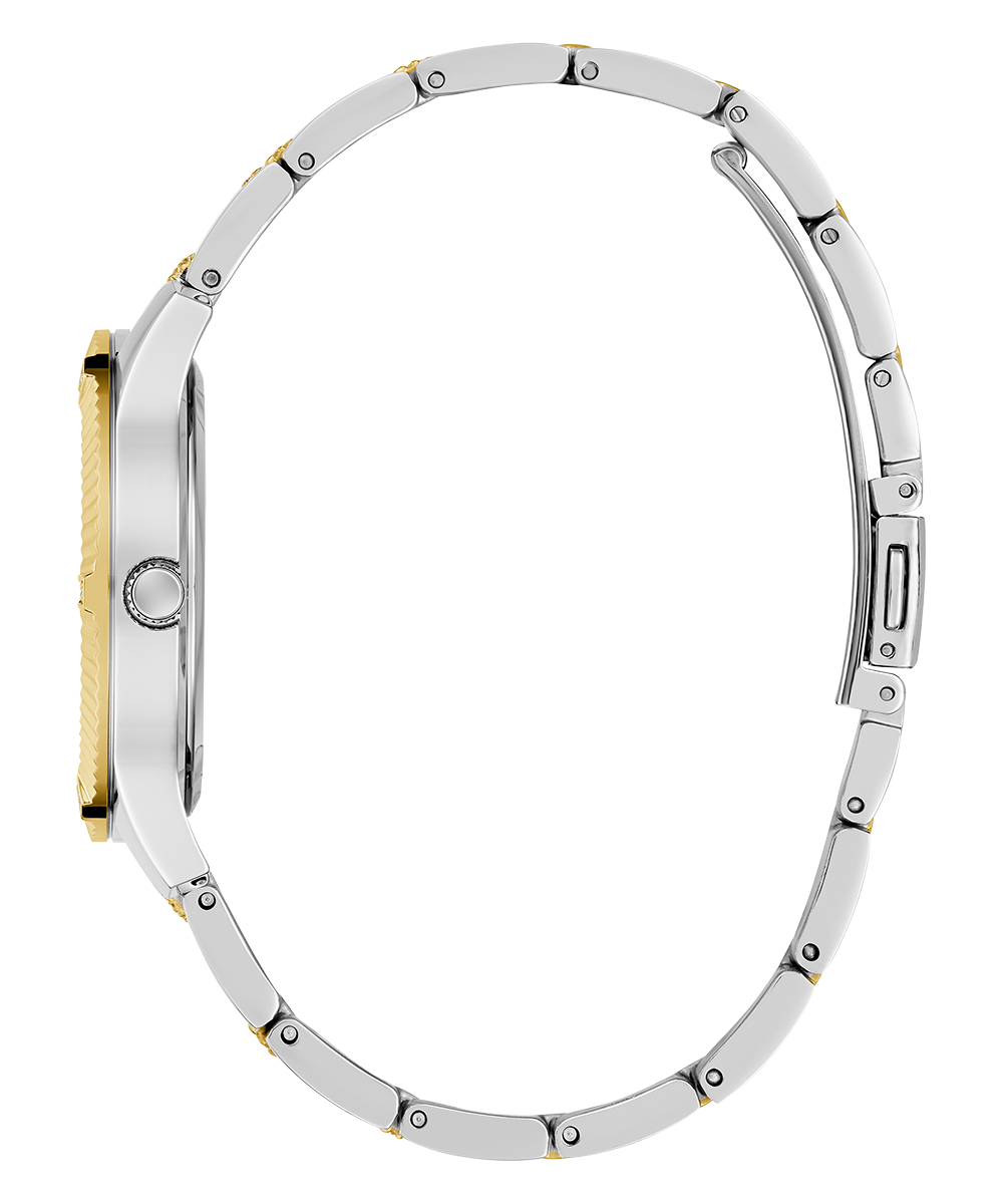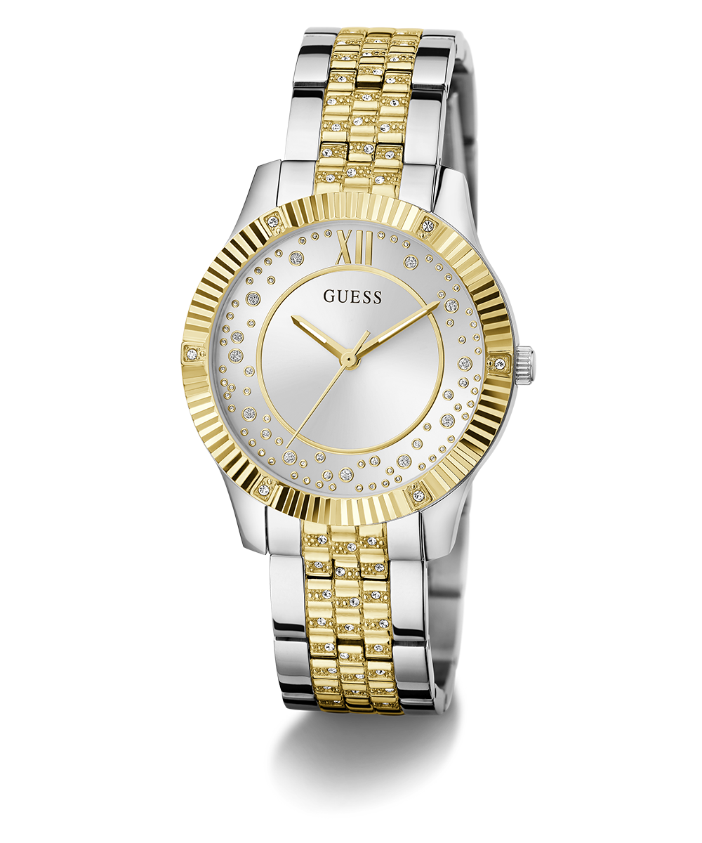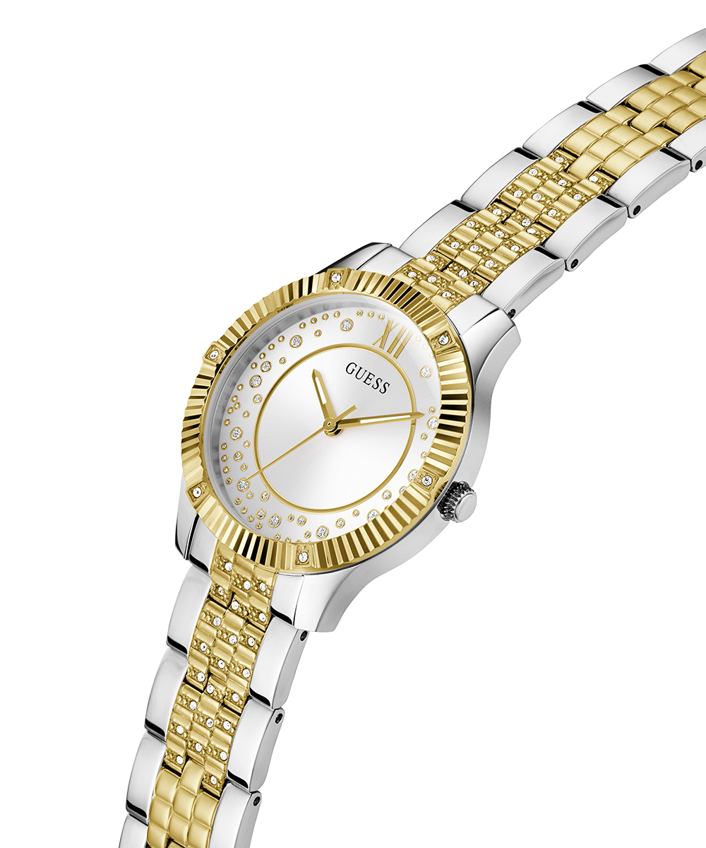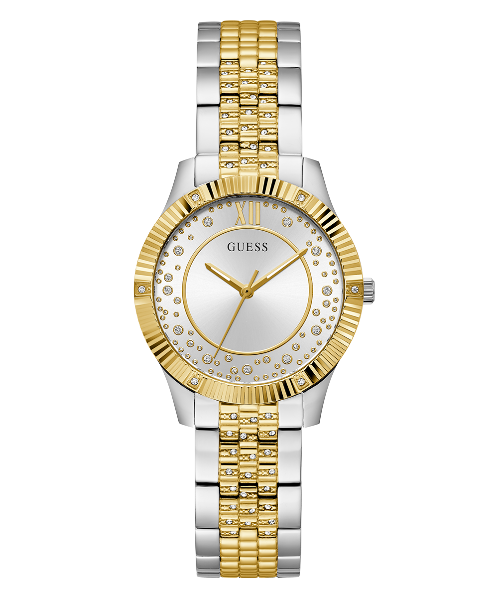 Leave everyone starstruck with this style on your wrist! A coin edge bezel with touches of crystal and a glitz dial paired with a textured bracelet with crystal make this timepiece a great staple option in your watch wardrobe.