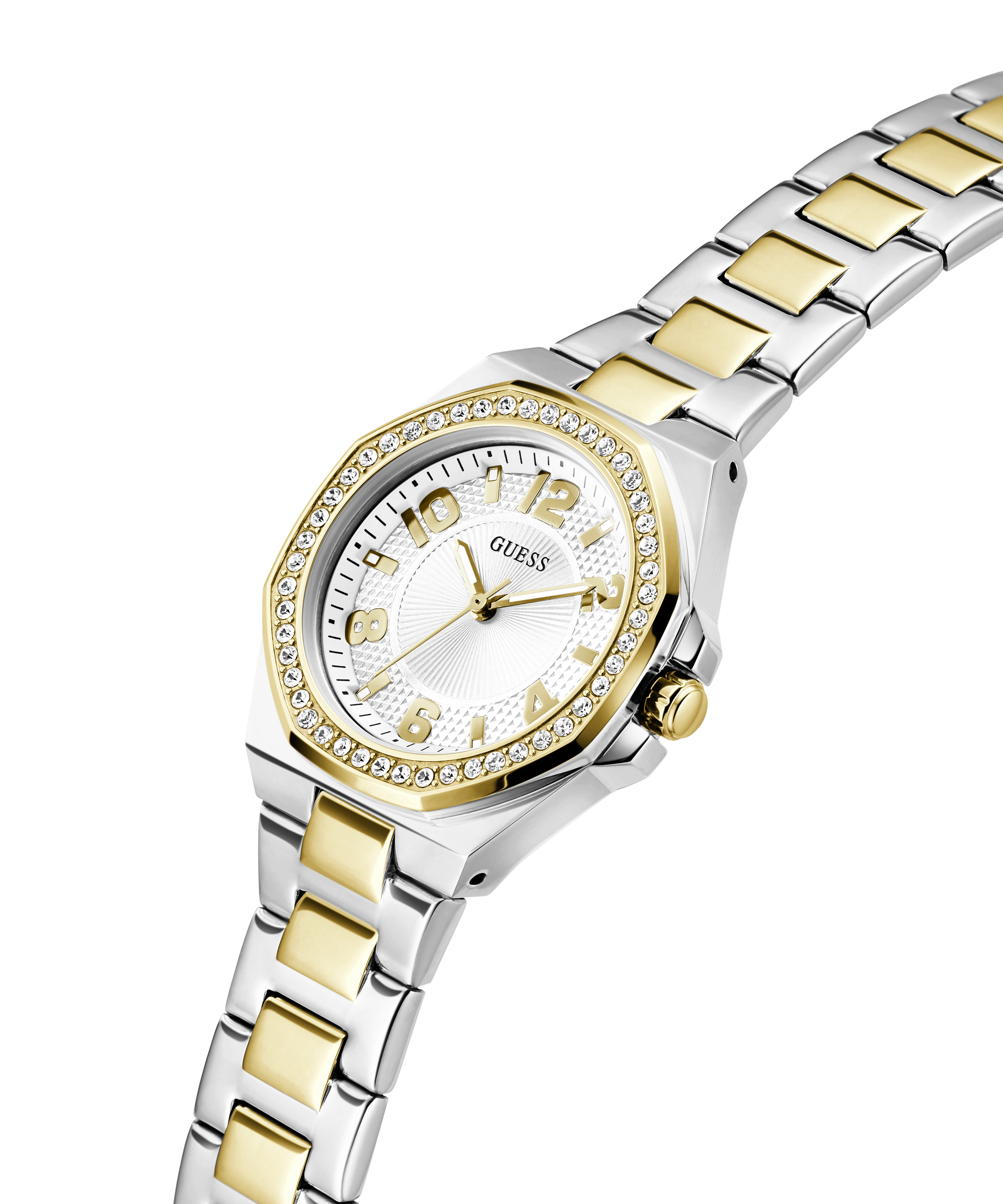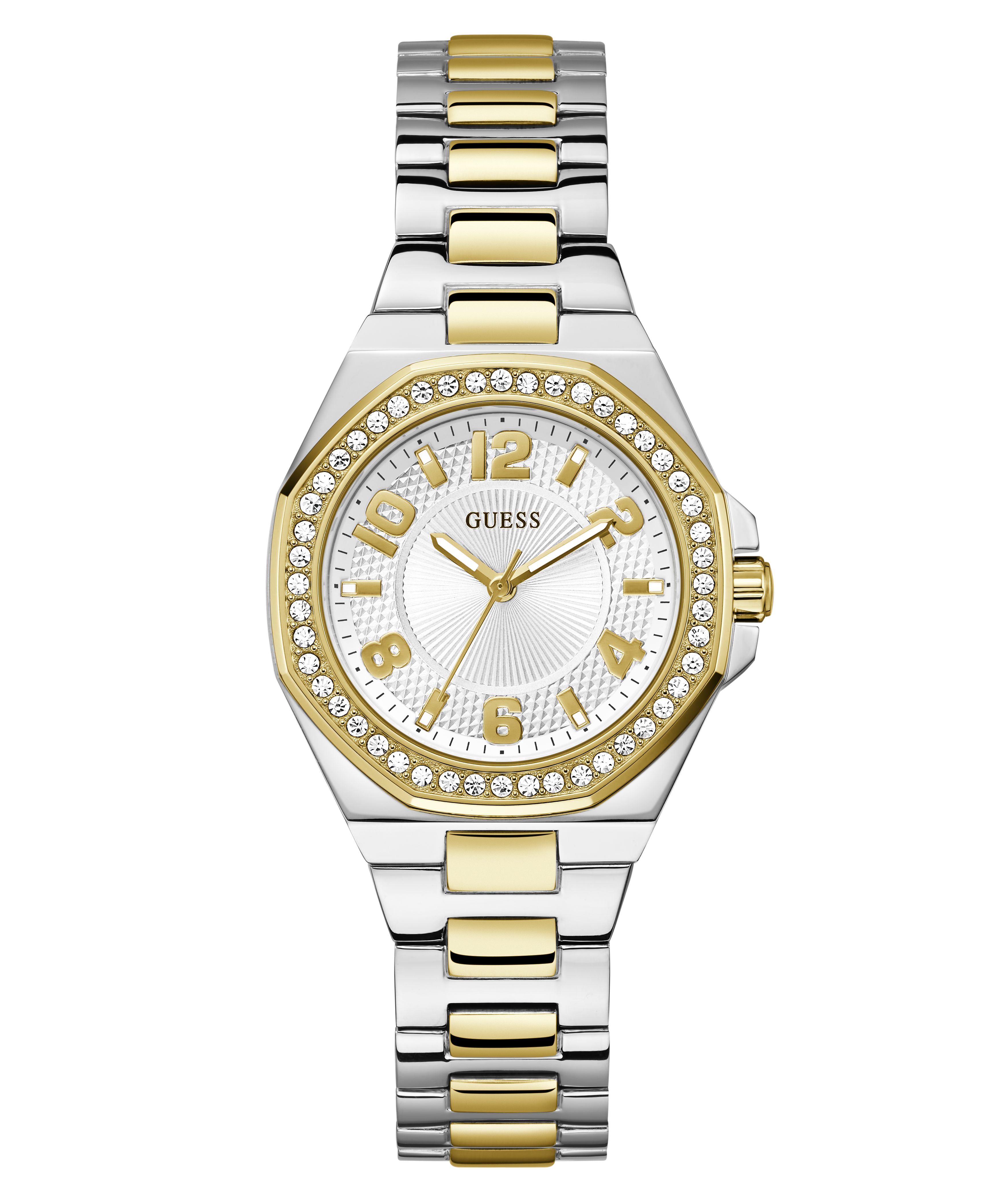 A style fit for royalty, this petite look features a beautiful textured dial and full crystal bezel