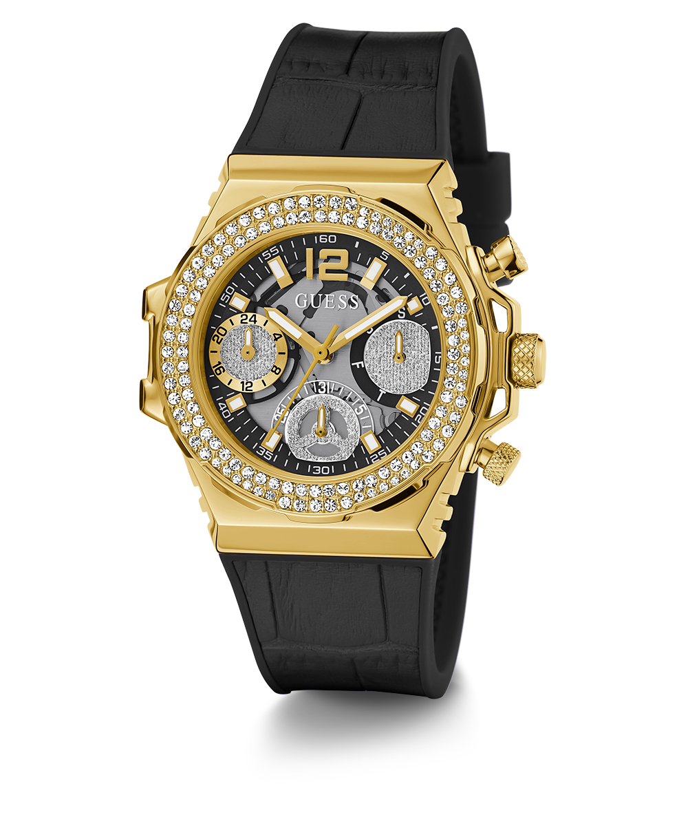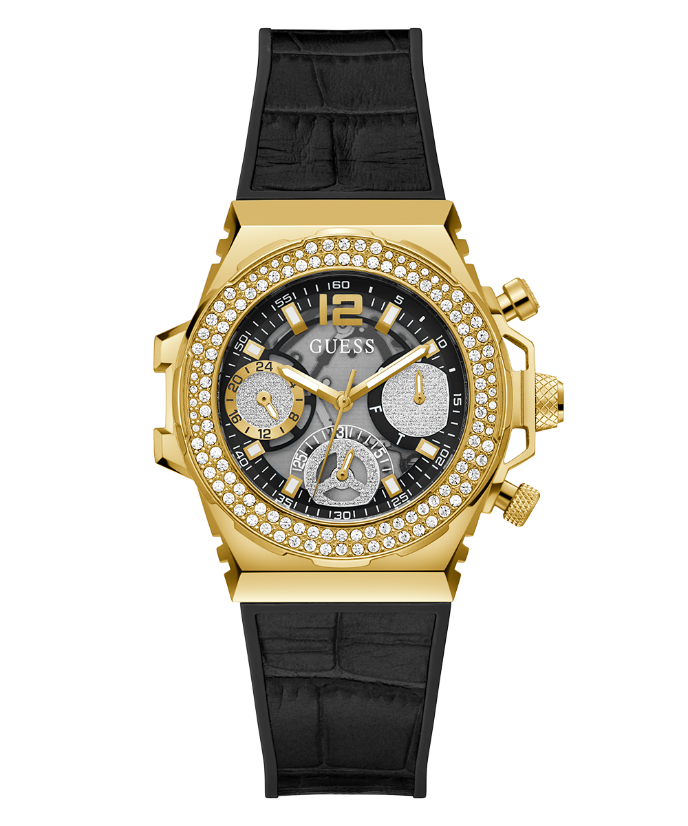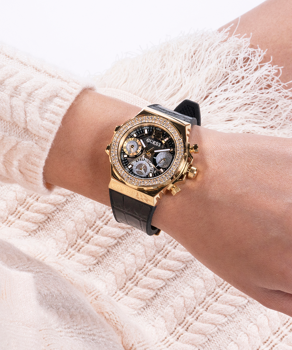 GUESS Ladies Black Gold Tone Multi-function Watch
