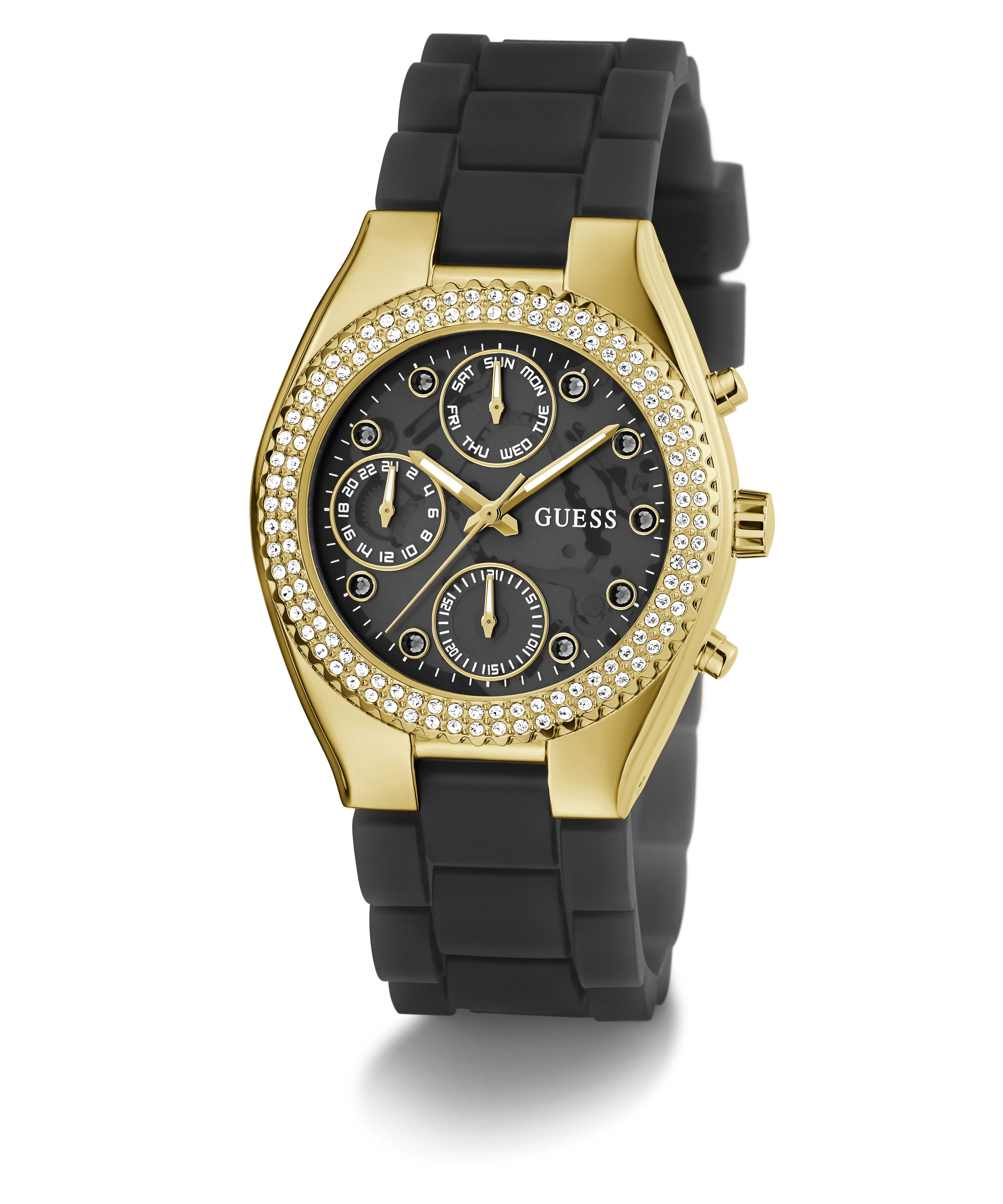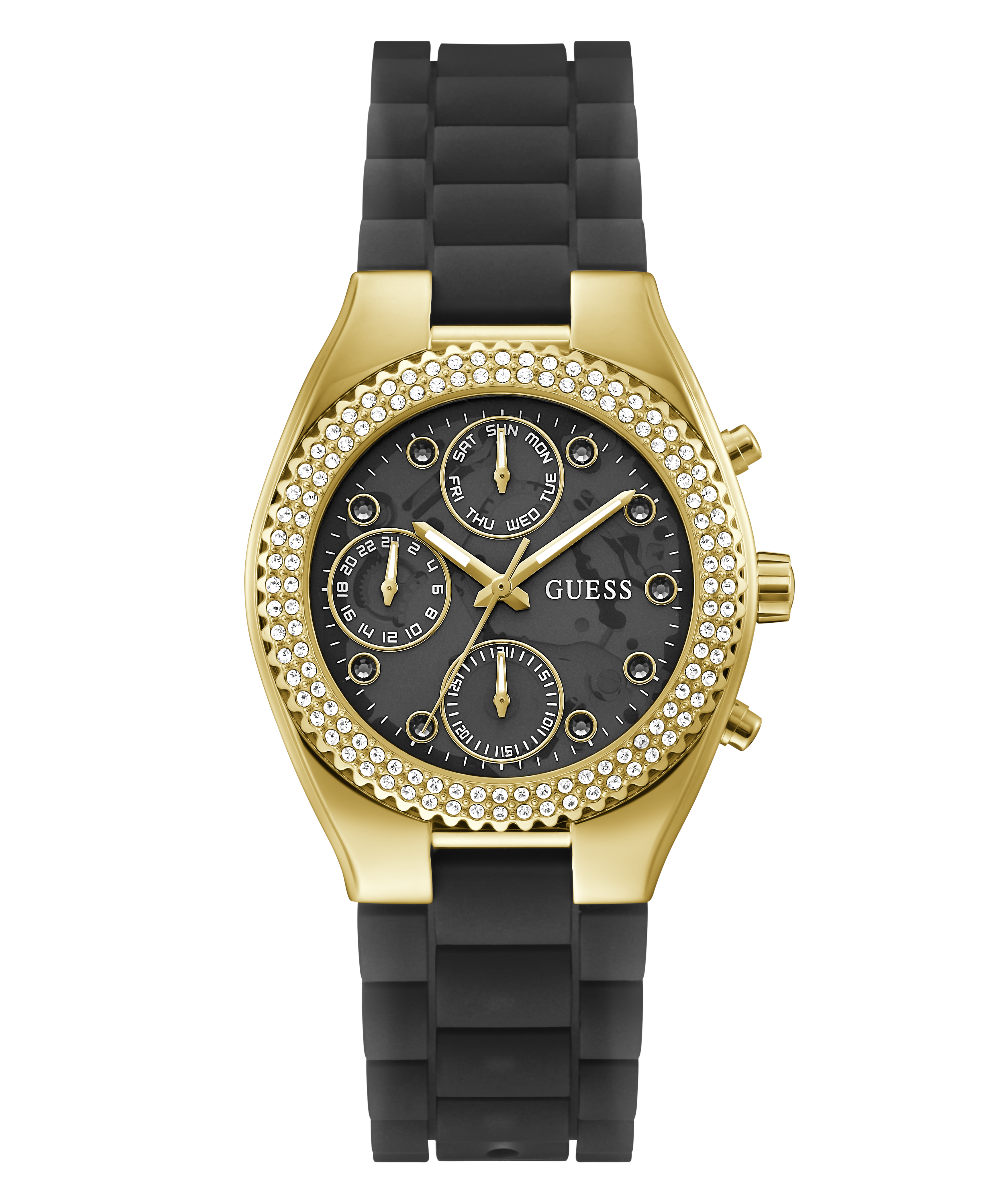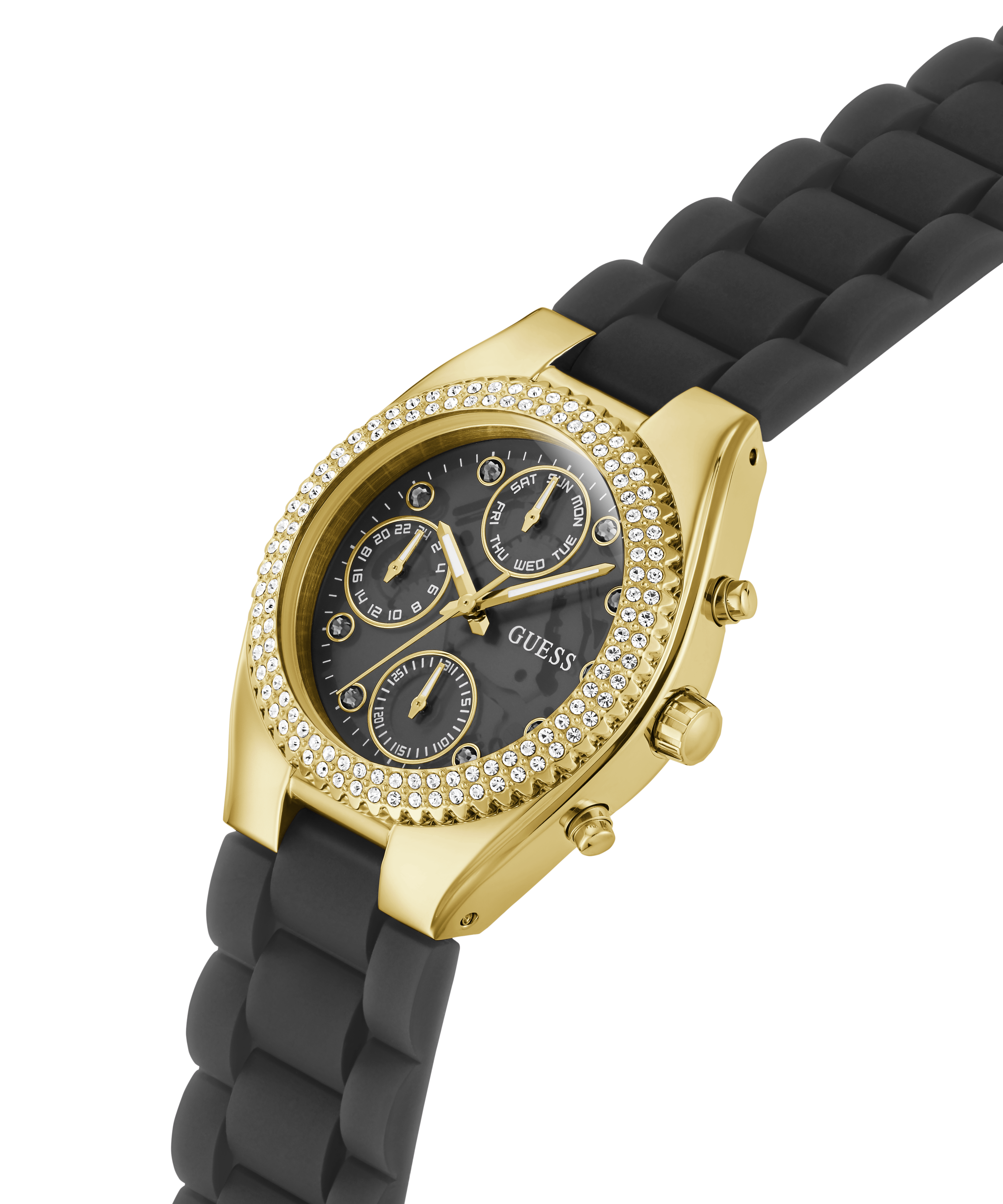 GUESS Ladies Black Gold Tone Multi-function Watch