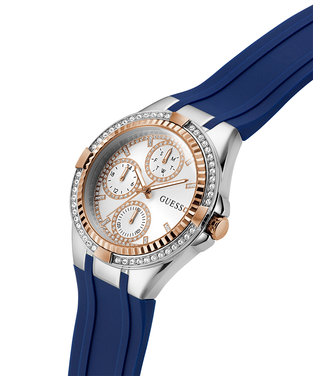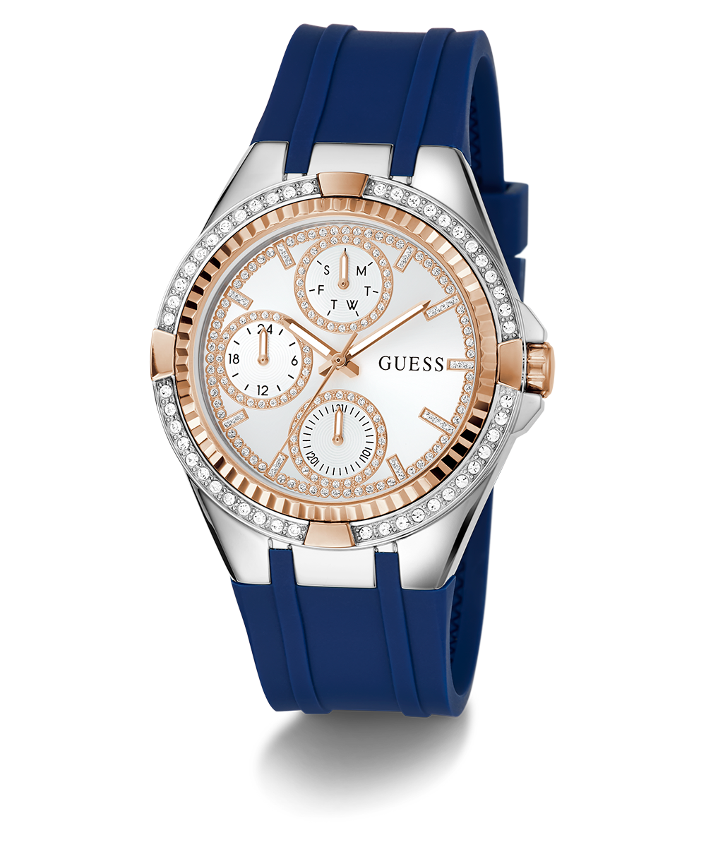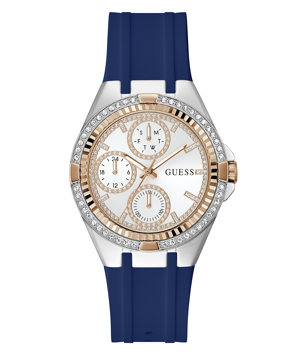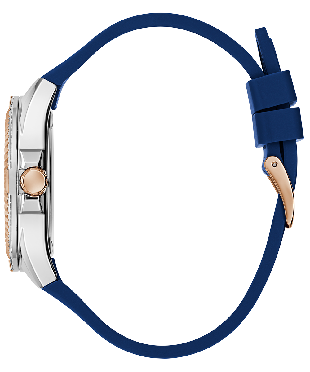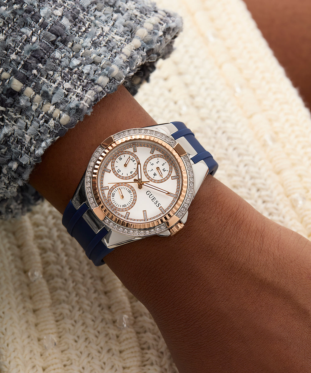 Go to the shopFreshen up your watch wardrobe with this cool new sport style featuring a touch of two-tone, interesting bezel texture and a silicone strap!
