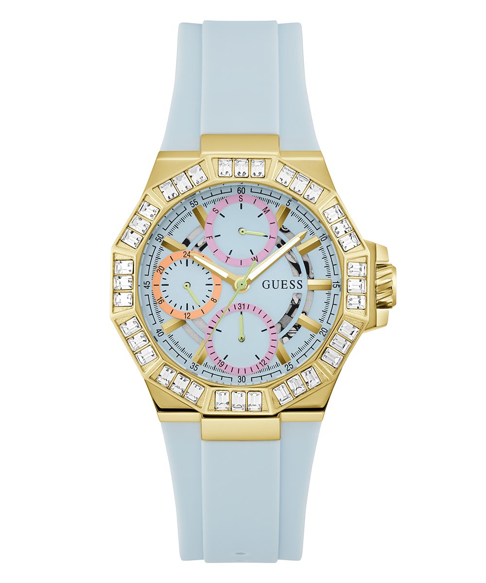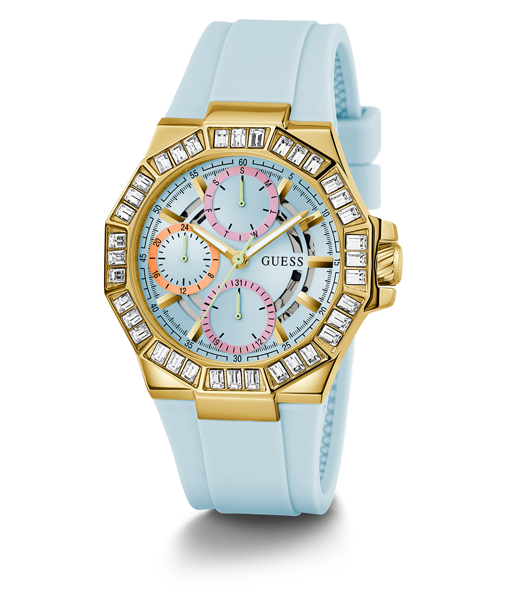 GUESS Ladies Blue Gold Tone Multi-function Watch
