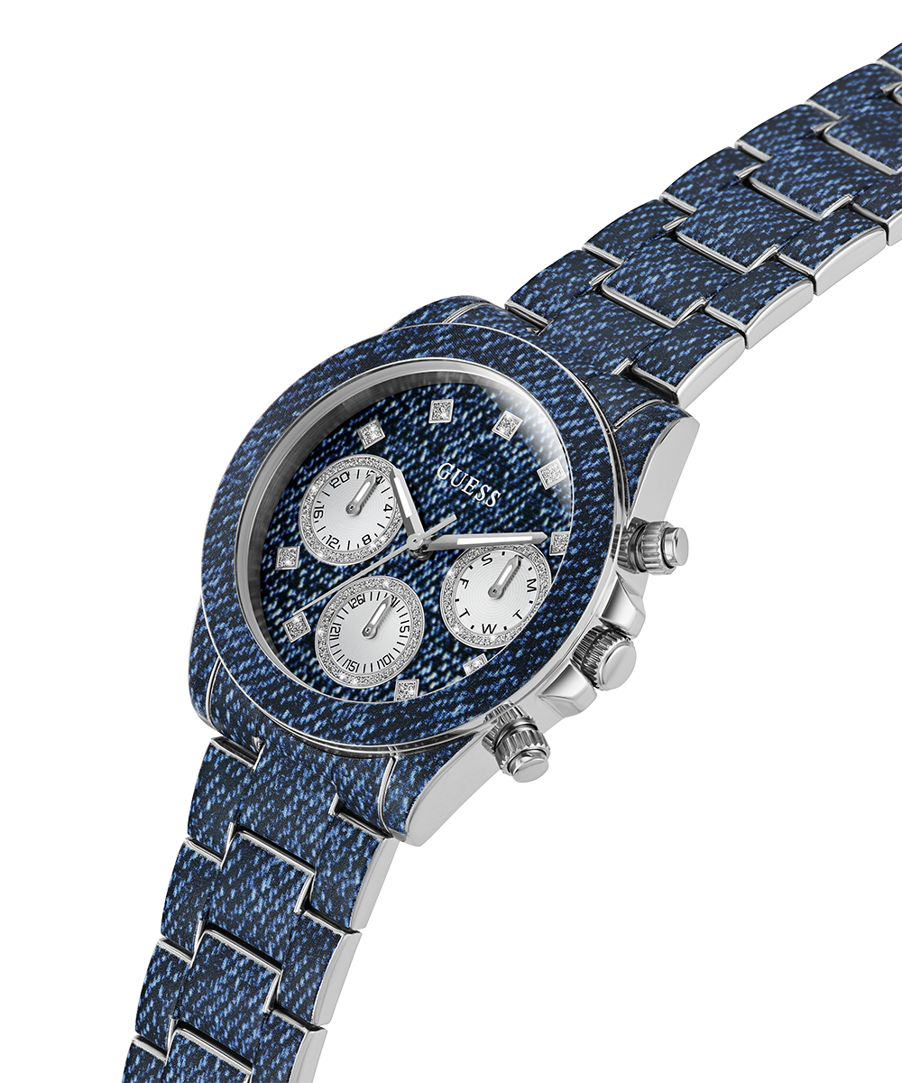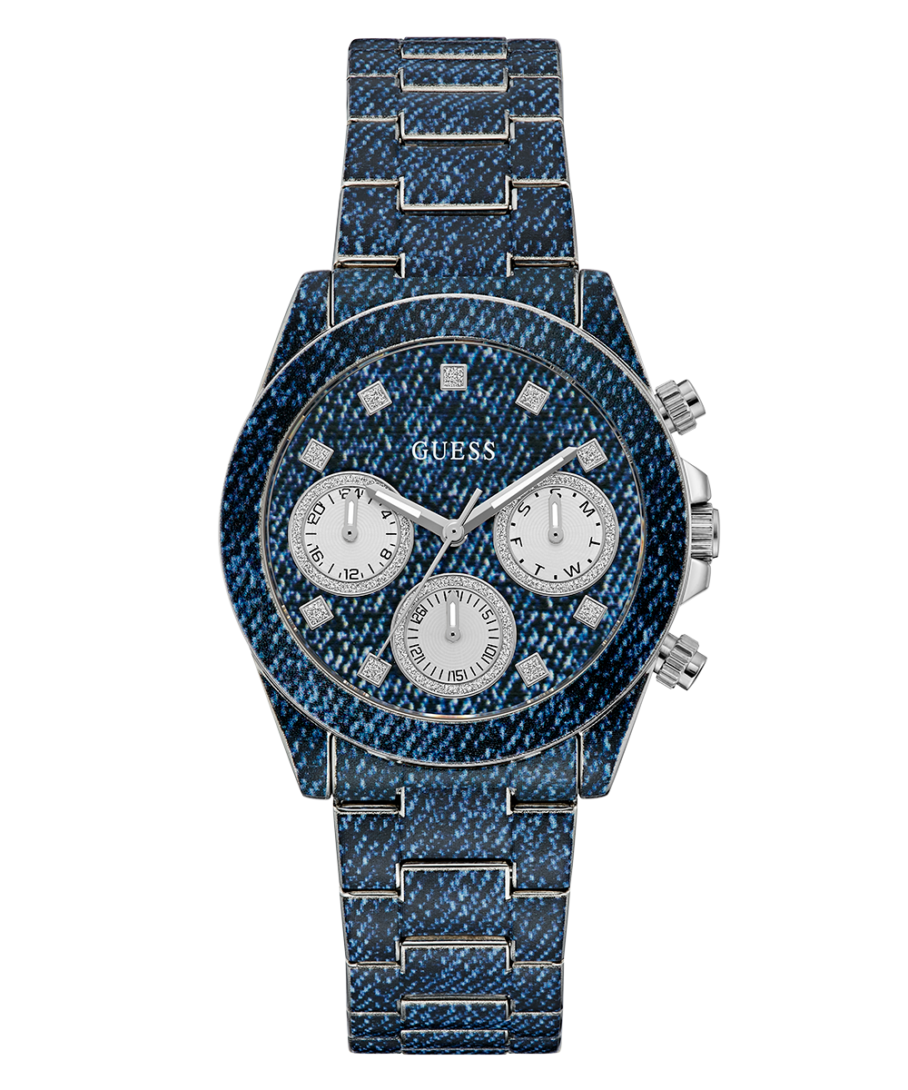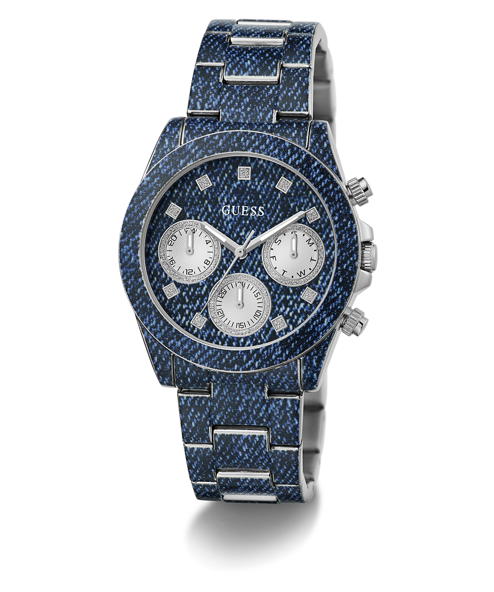 Go to the shopShow your love for GUESS with an iconic denim style featuring a digitally printed denim pattern across the bracelet and multi-function dial with a subtle touch of glitz!