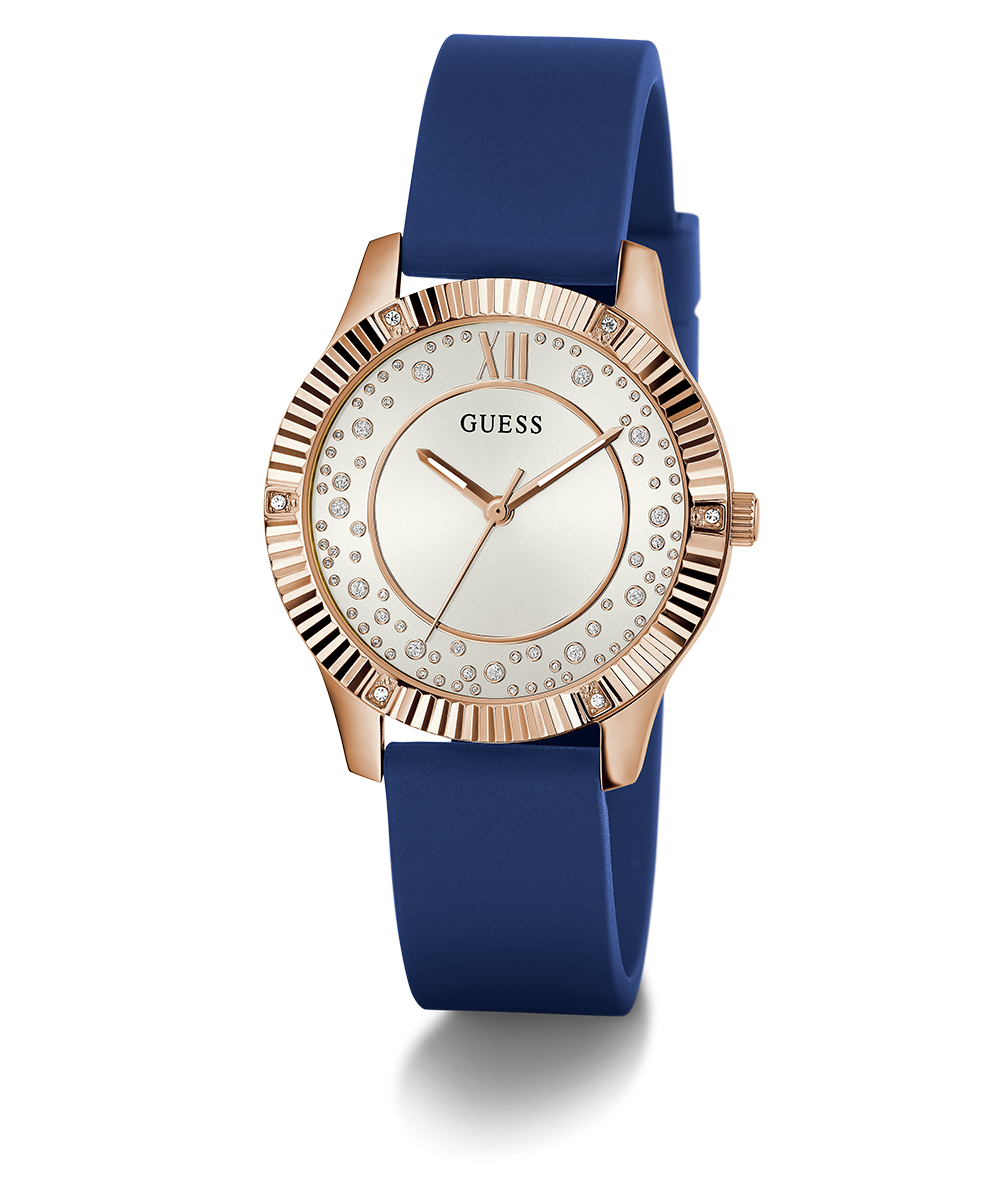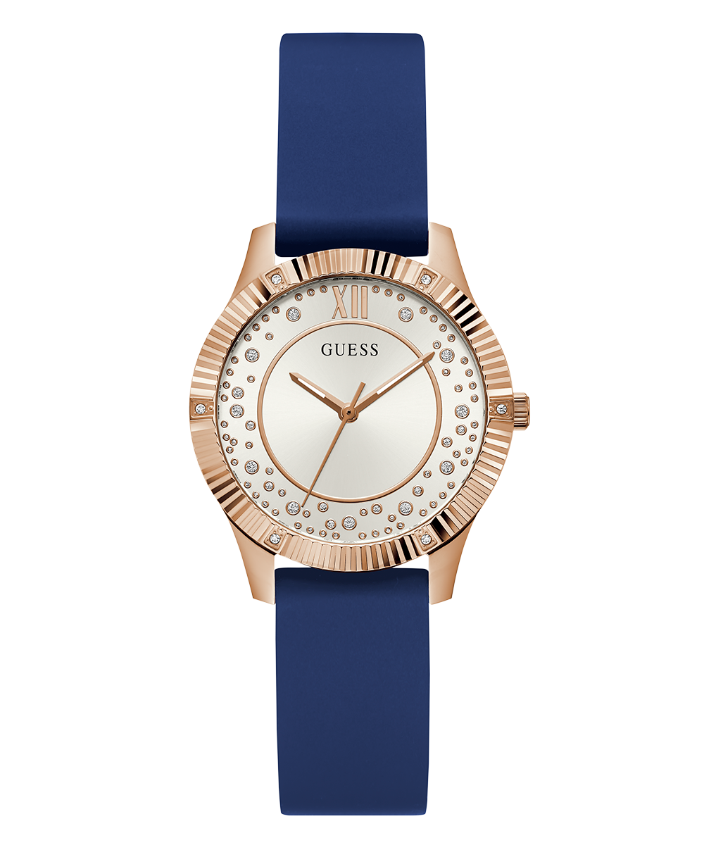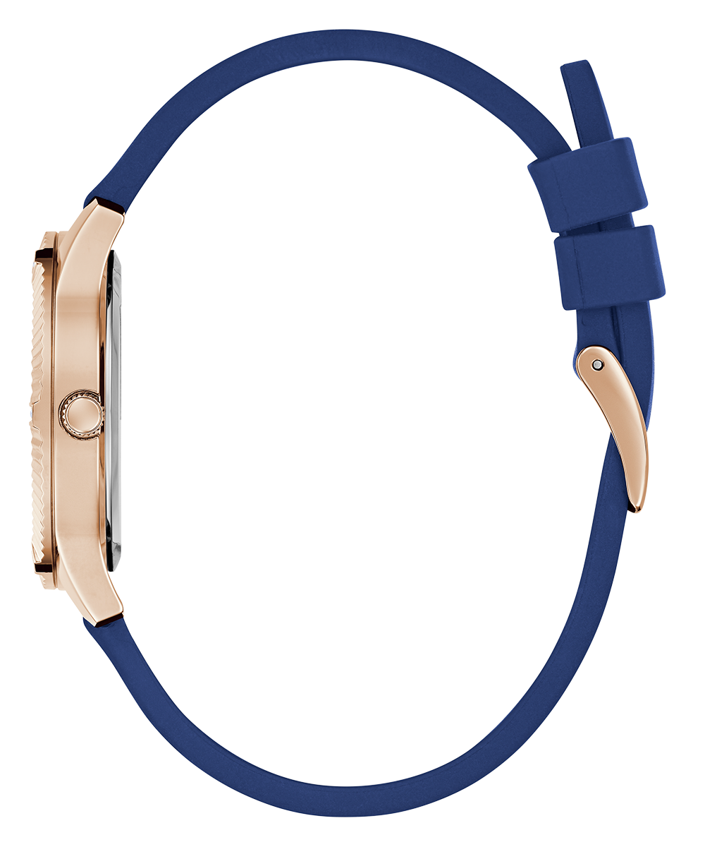 GUESS Ladies Blue Rose Gold Tone Analog Watch