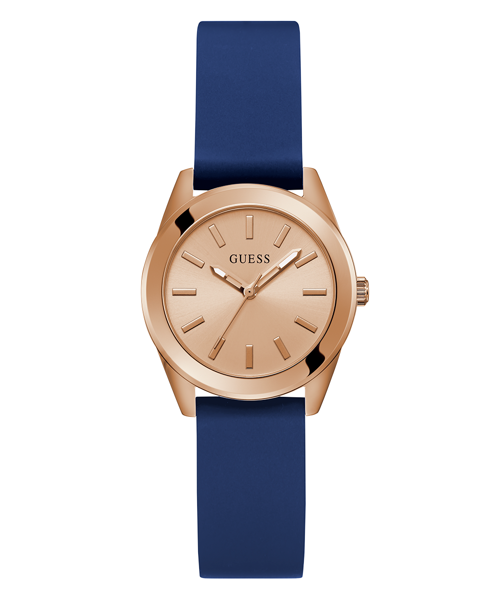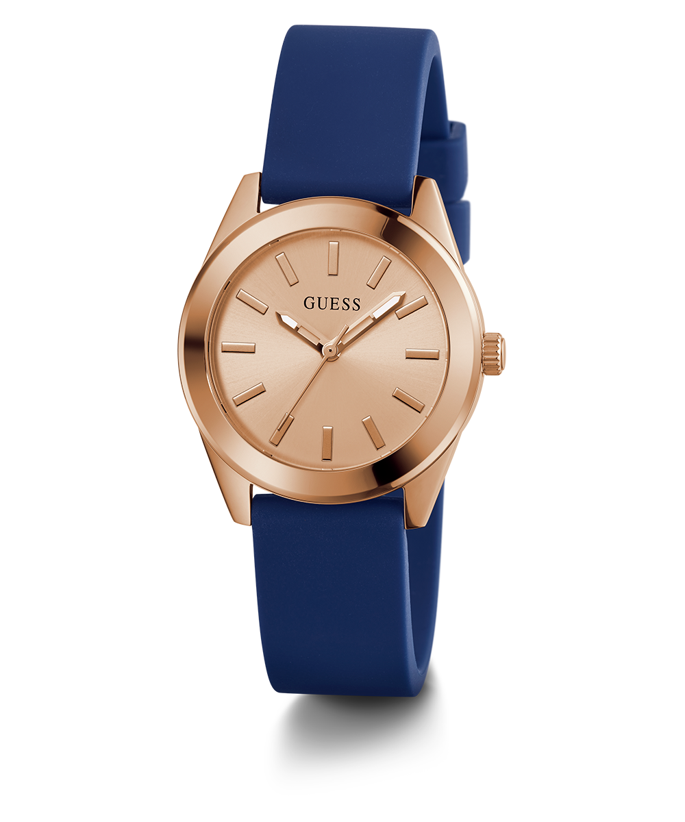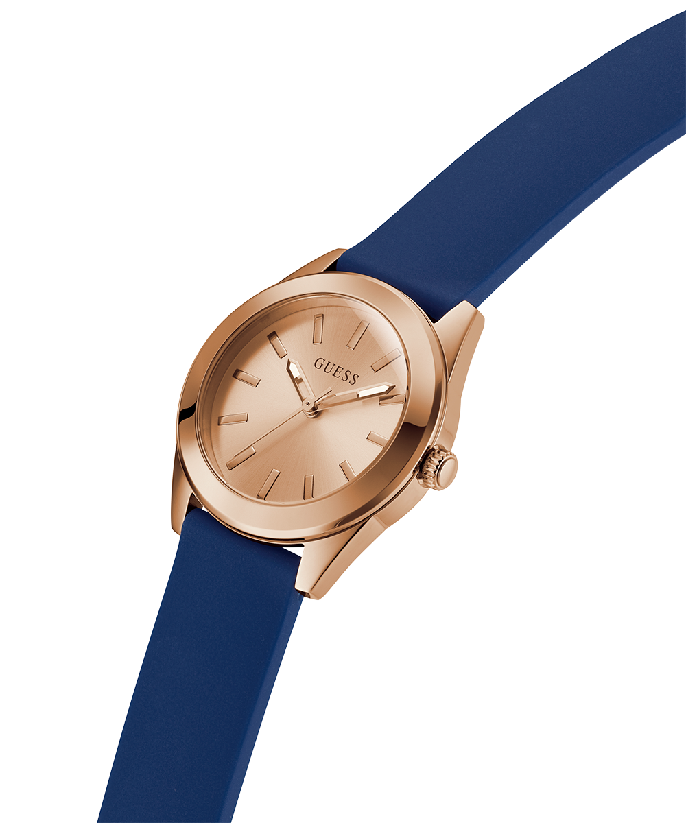 GUESS Ladies Blue Rose Gold Tone Analog Watch