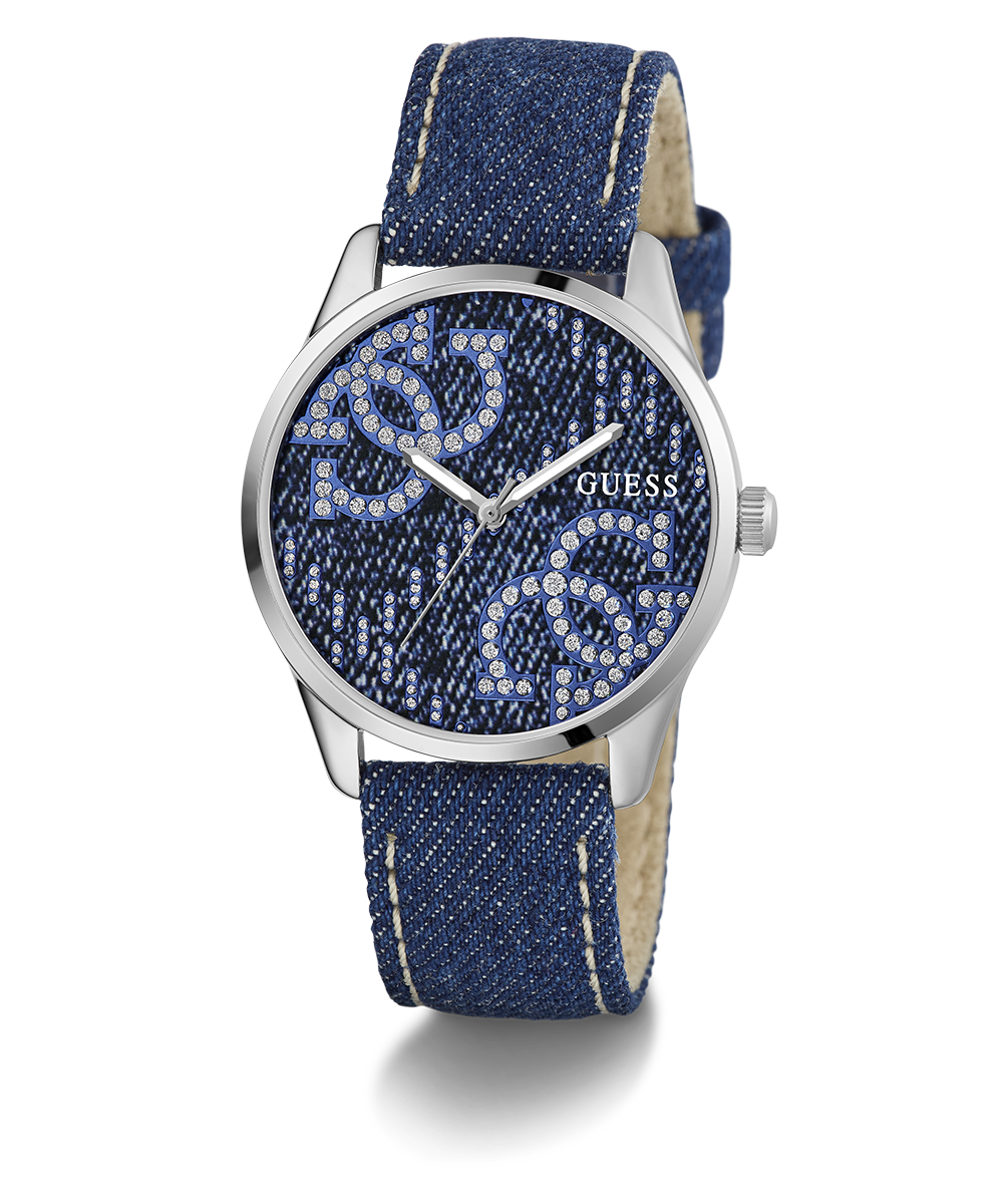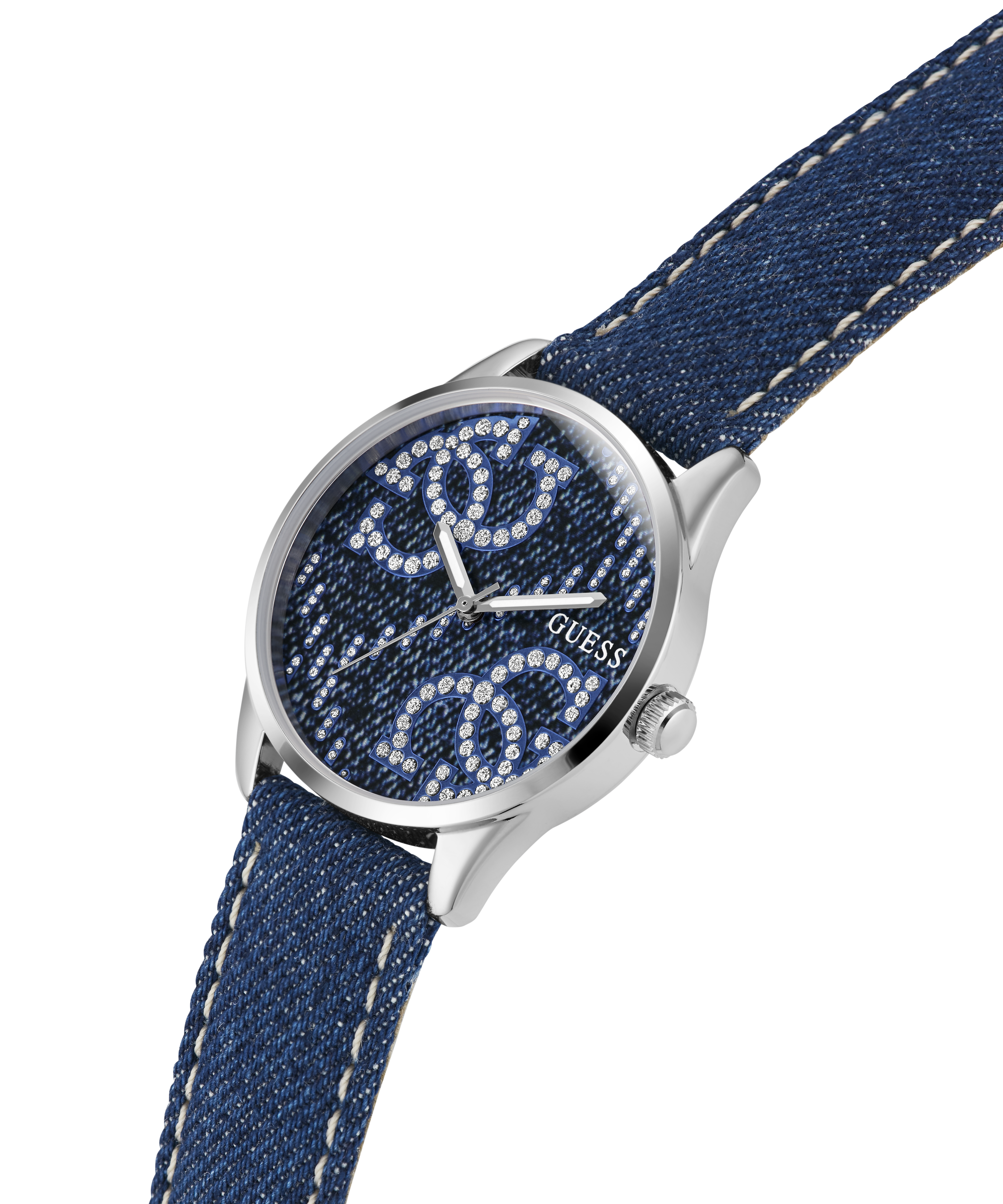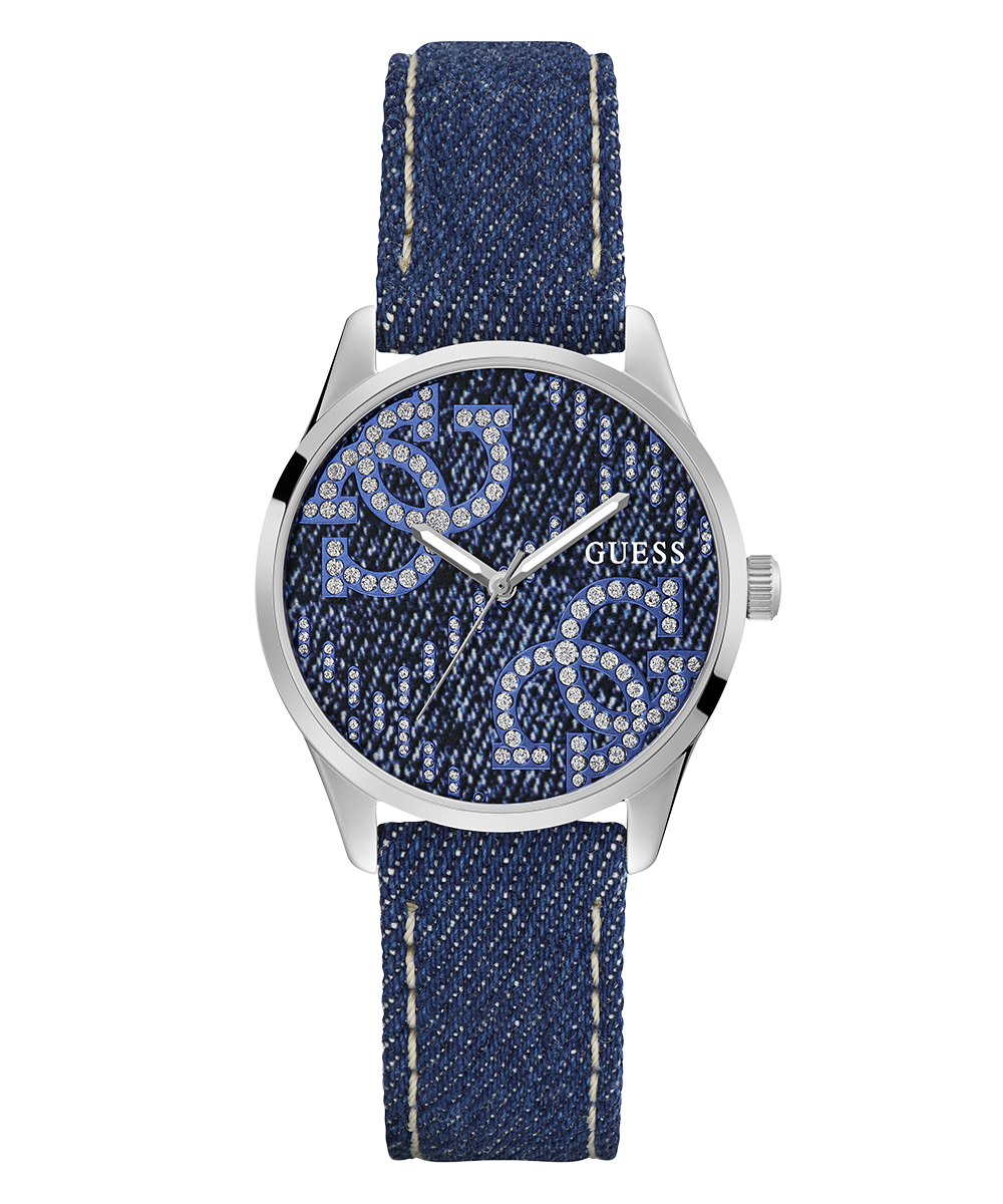 Go to the shopThis new look features a stitch pattern on the dial and the signature GUESS Quattro 'G' logo paired with a blue denim strap