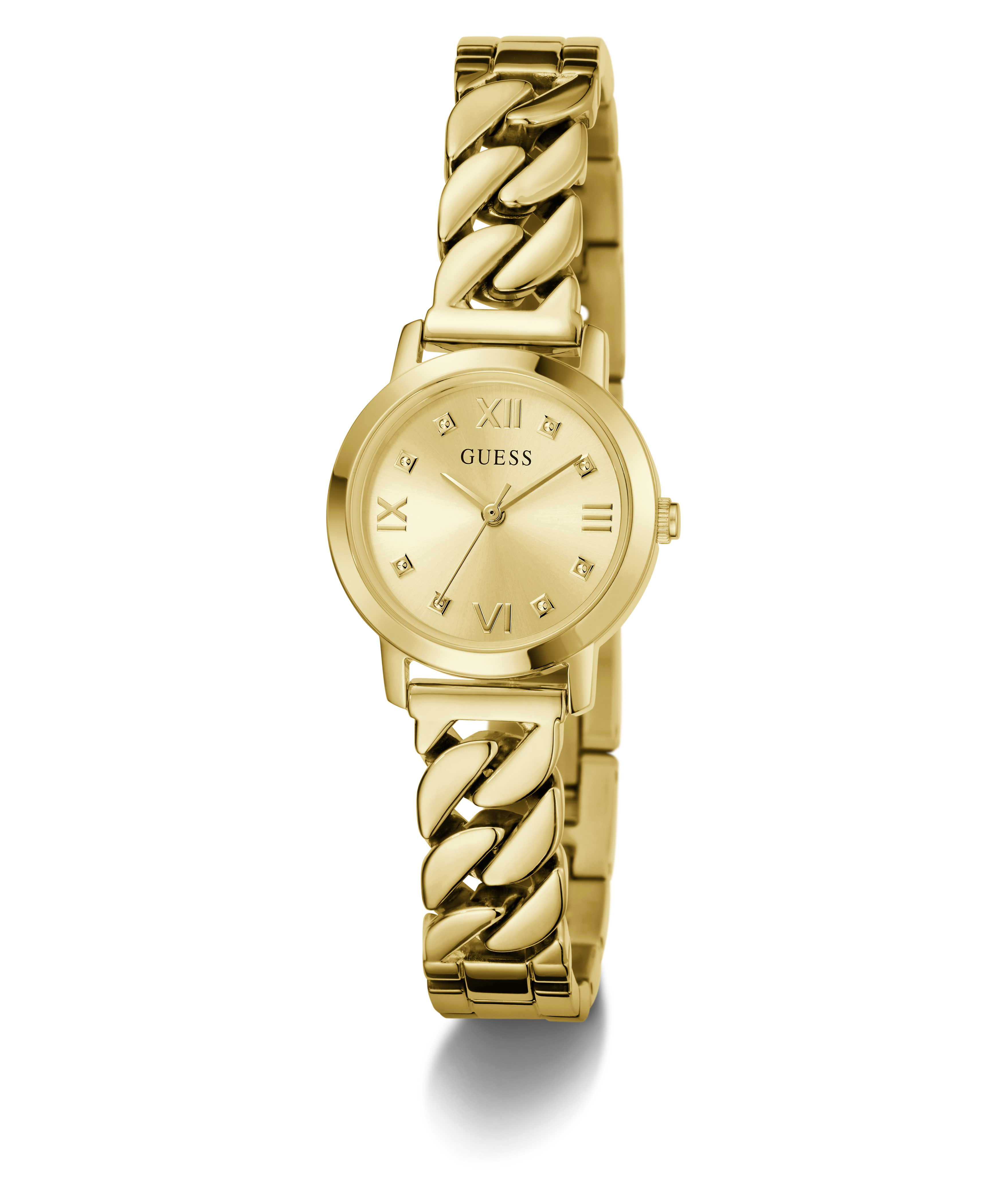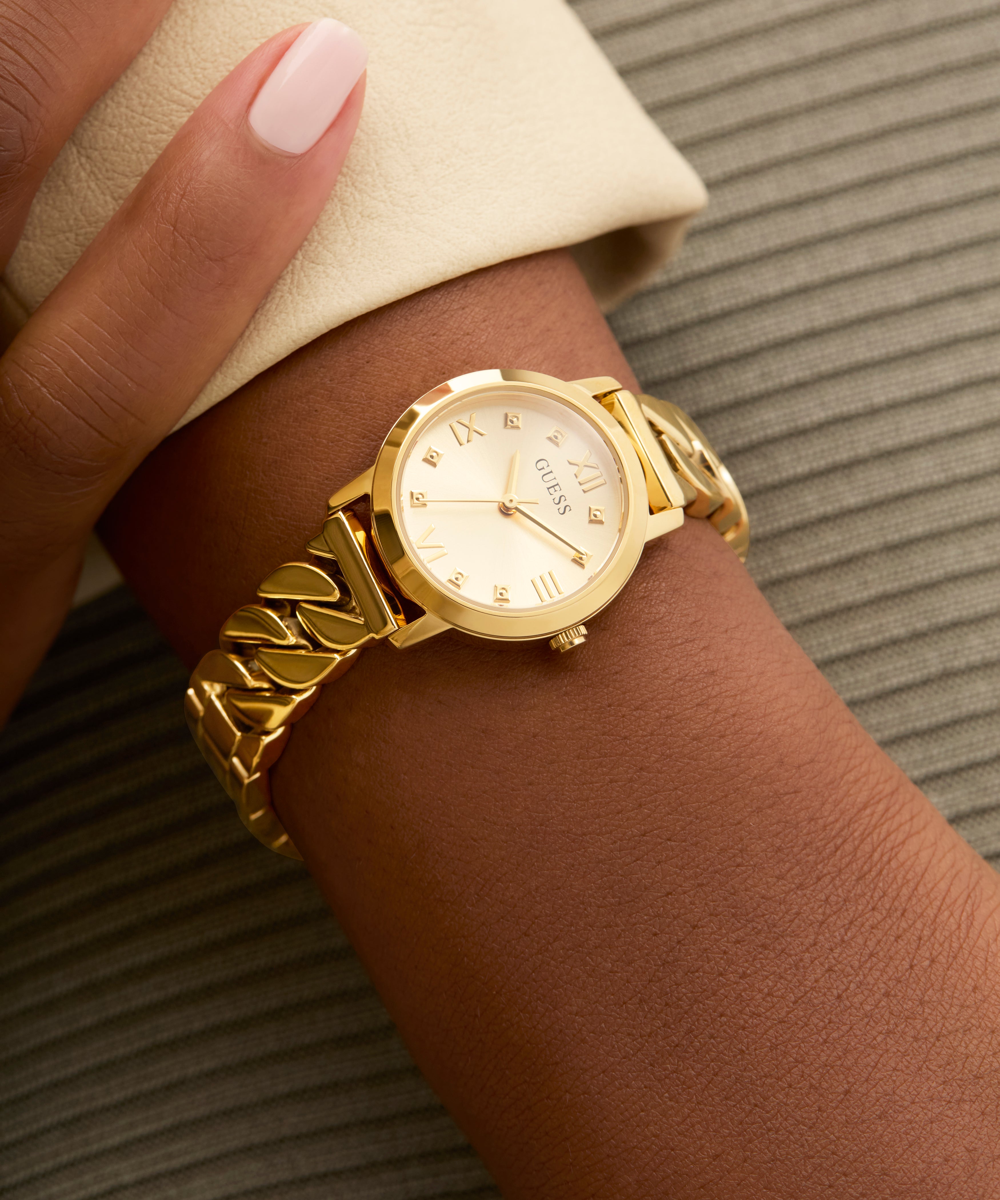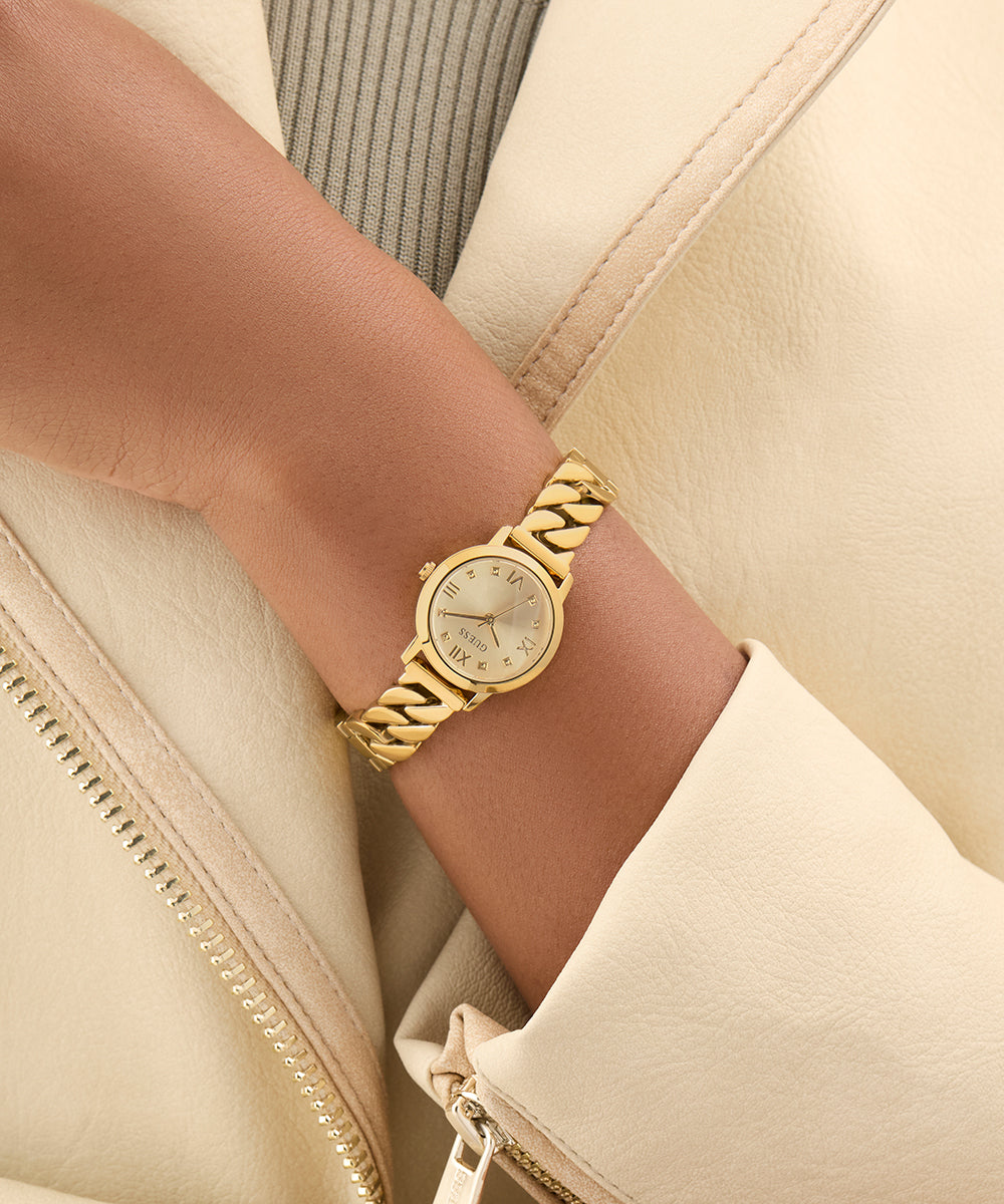 This new petite chain look is sure to be a go-to in your watch wardrobe. Self-adjustable g-links make this style easy to size. Great on its own or stacked with other jewelry!