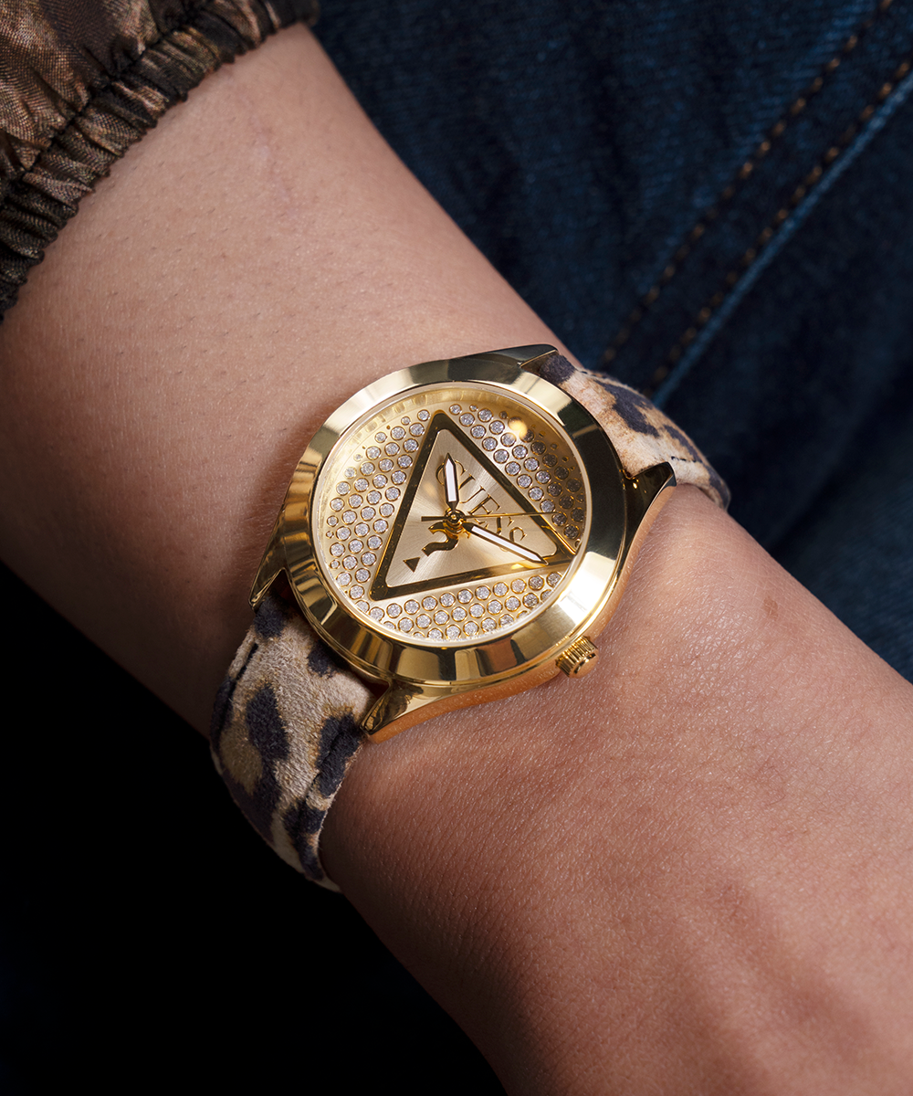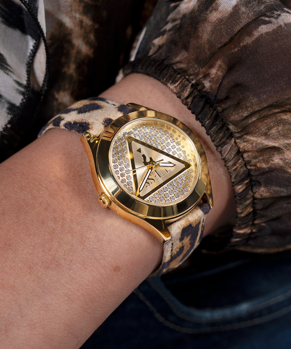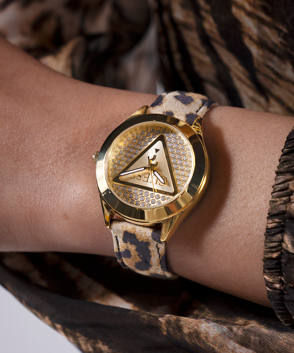 Go to the shopSure to be a staple in your watch wardrobe, this style features a polished case with a glitzed out dial and a triangle logo plaque.