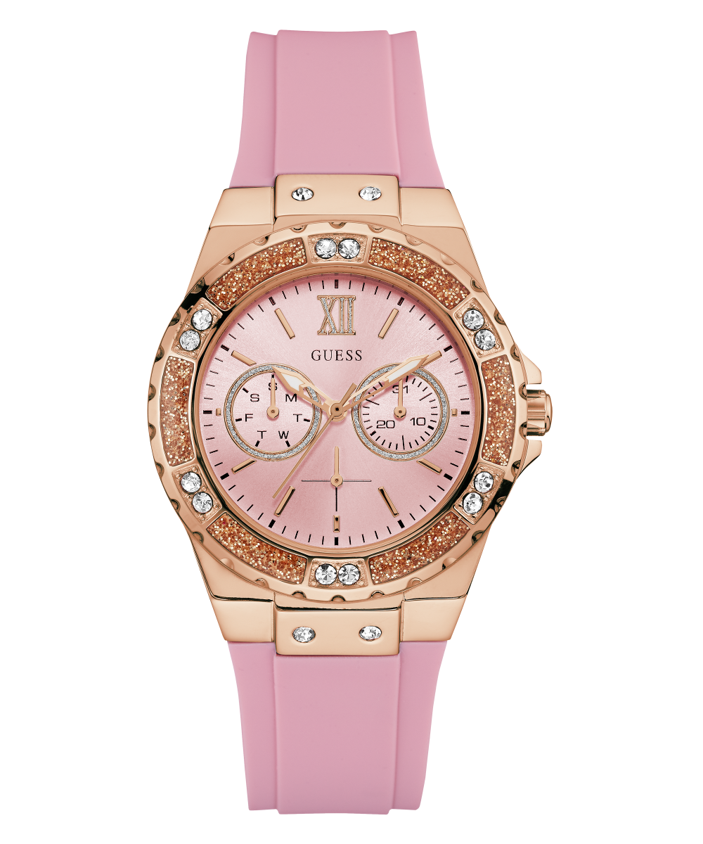 GUESS Ladies Pink Rose Gold Tone Multi-function Watch