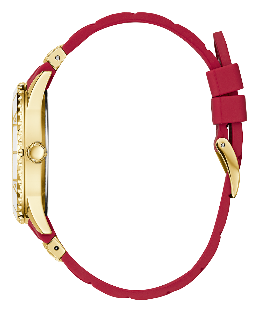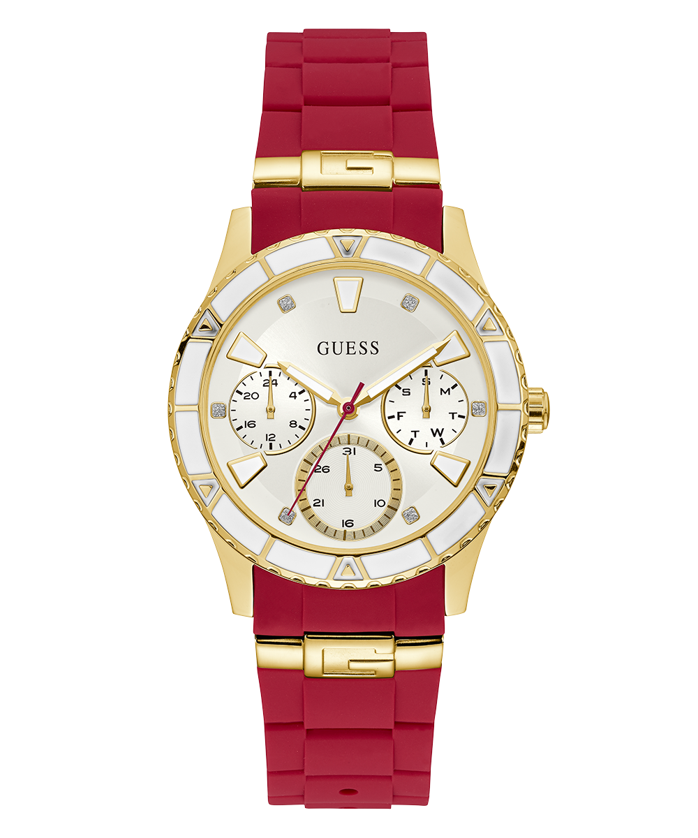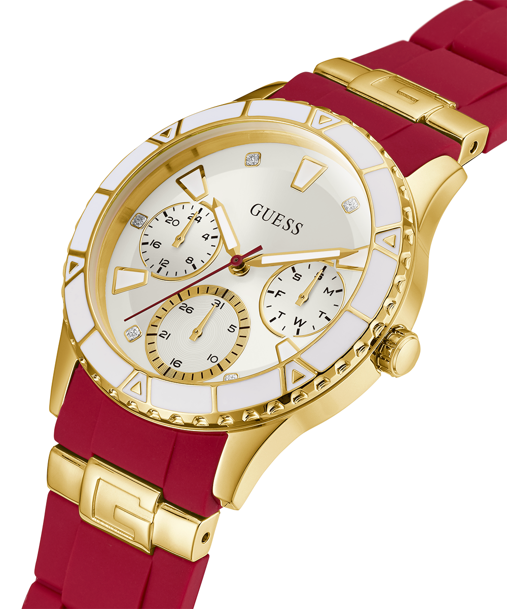 GUESS Ladies Red Gold Tone Multi-function Watch
