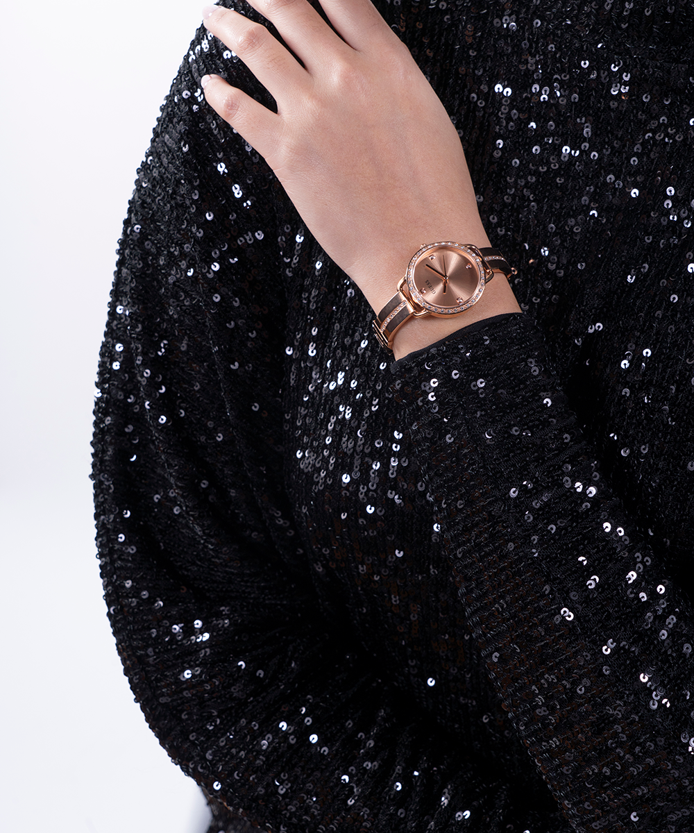 Go to the shopA touch of sparkle on this dressy bangle featuring crystals on the case, bangle and dial. This timepiece is perfect to layer with your favorite bracelets or worn alone.