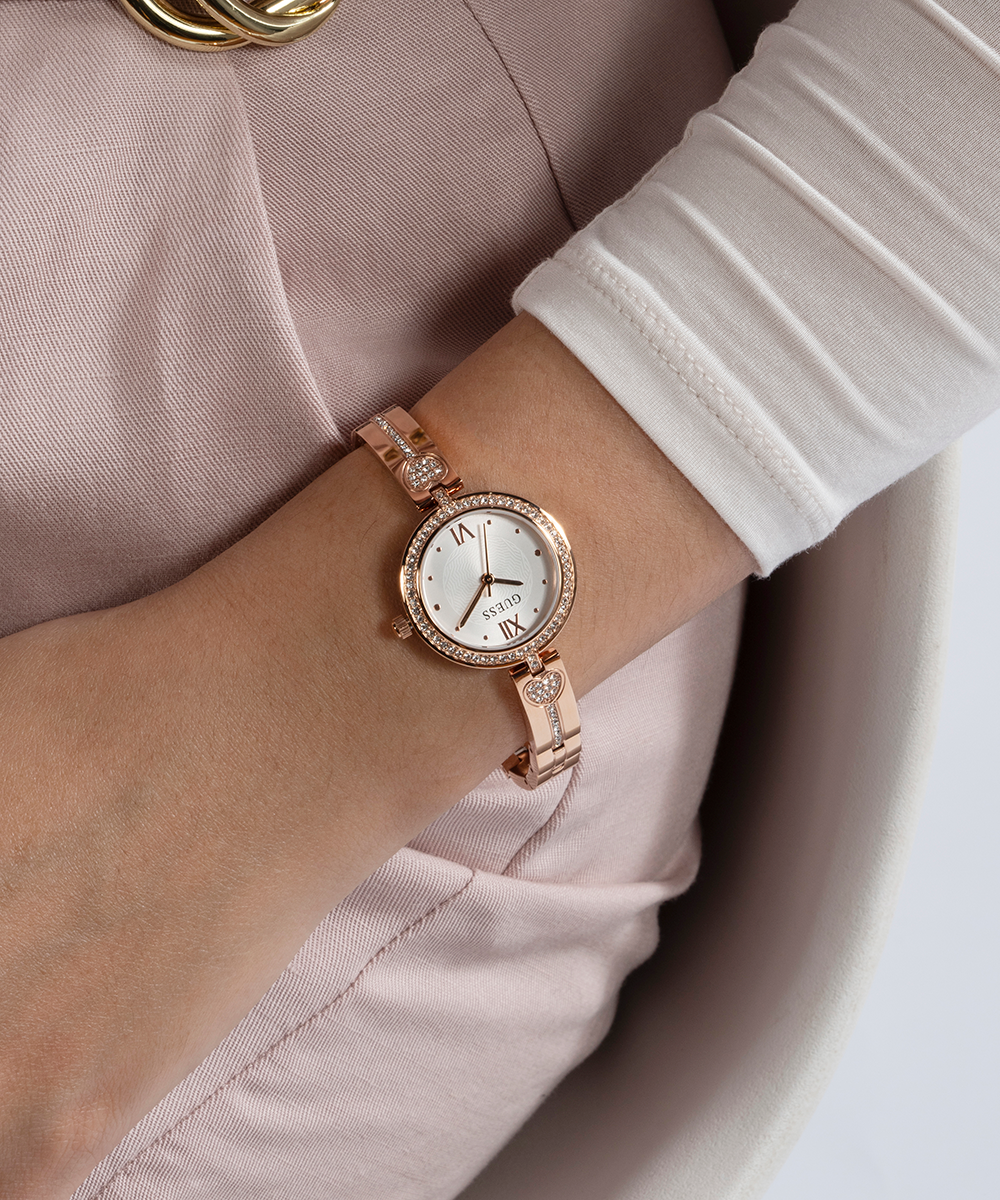 A subtle heart detail on either side of this crystal embellished bangle is just right for your everyday style