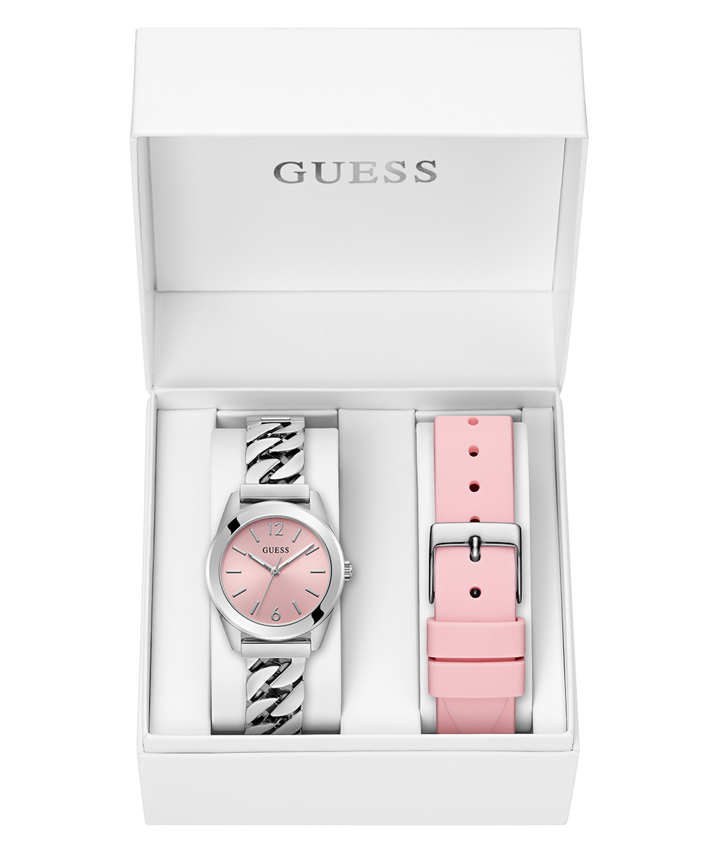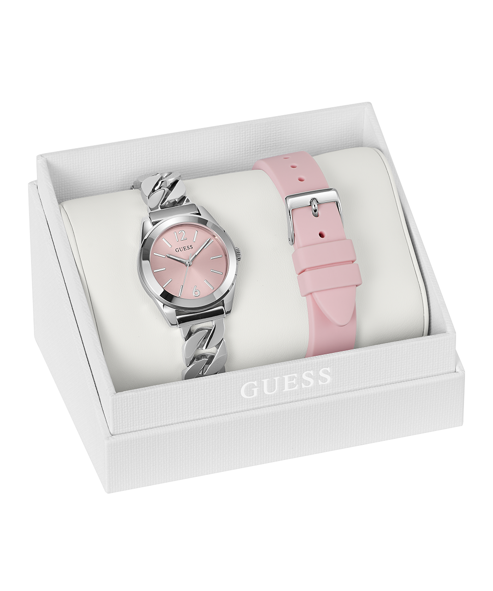 GUESS Ladies Silver Tone Analog Watch Box Set