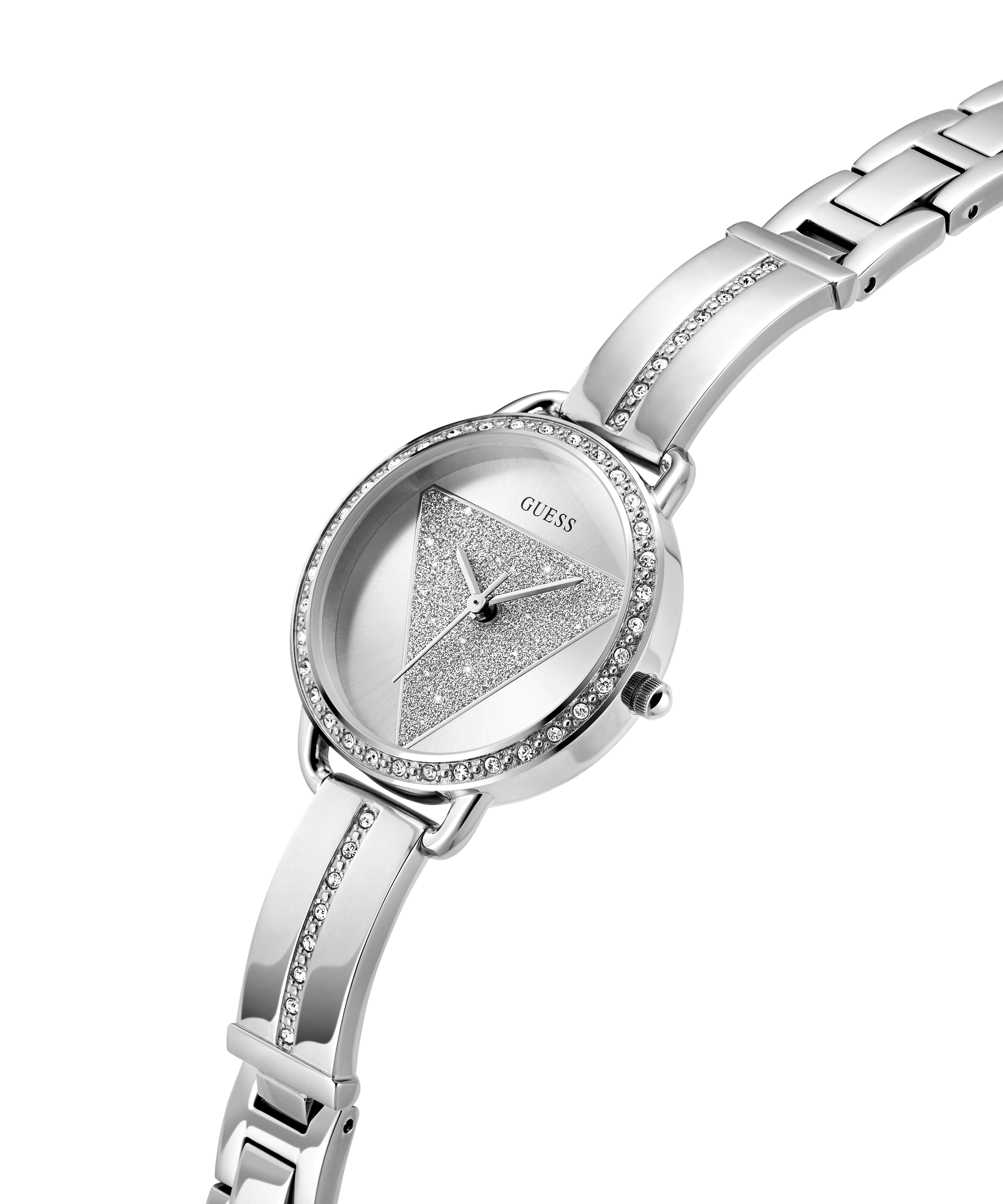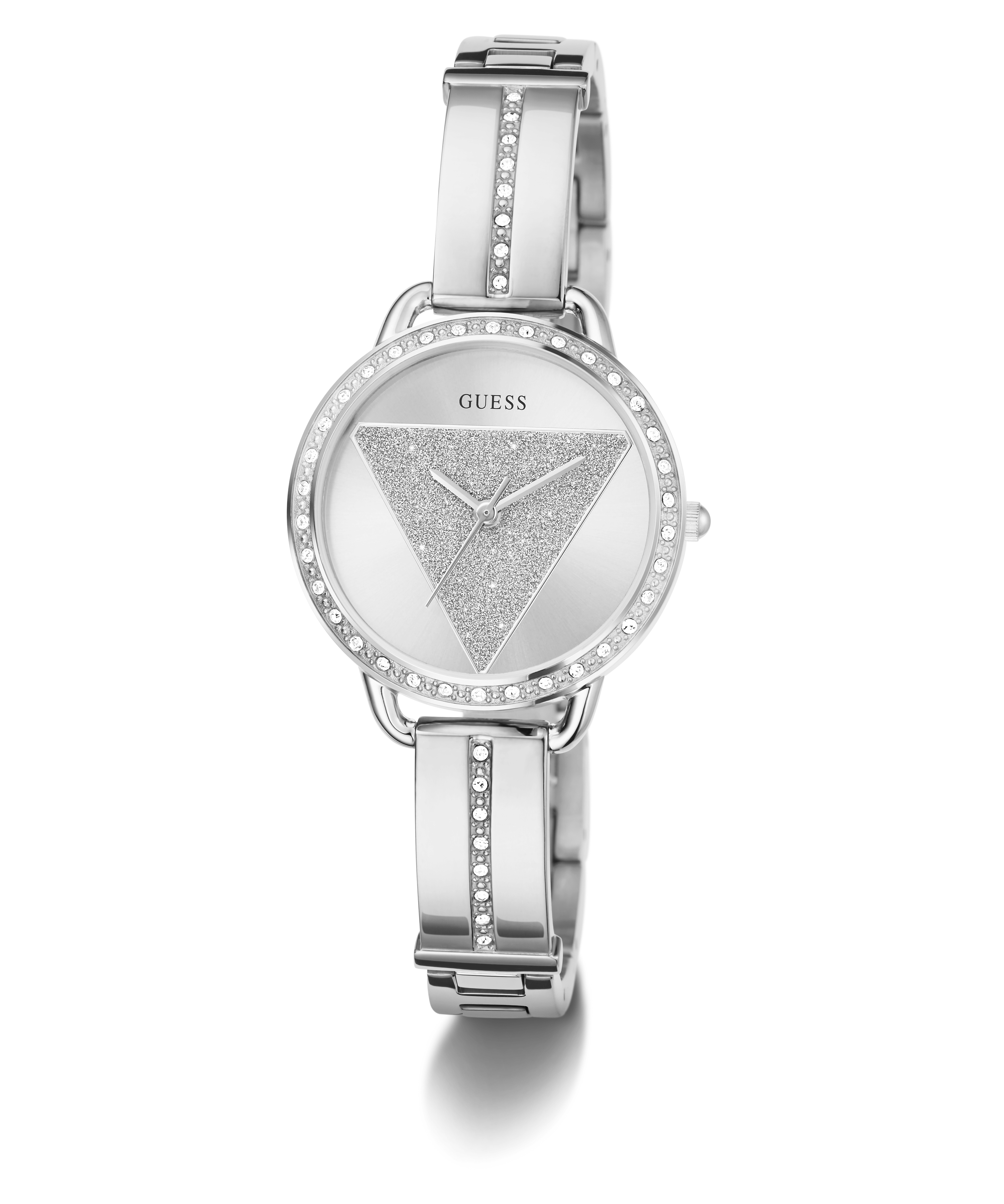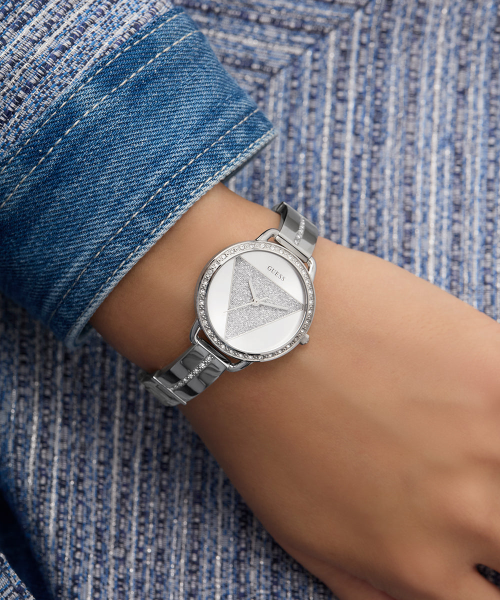 Add a touch of sparkle to your watch wardrobe while sporting your GUESS love with this new bangle look featuring a glitzed out triangle on its dial and crystals on the bezel and bangle! Self-adjustable g-links make this style easy to size. Great on its own or stacked with other...