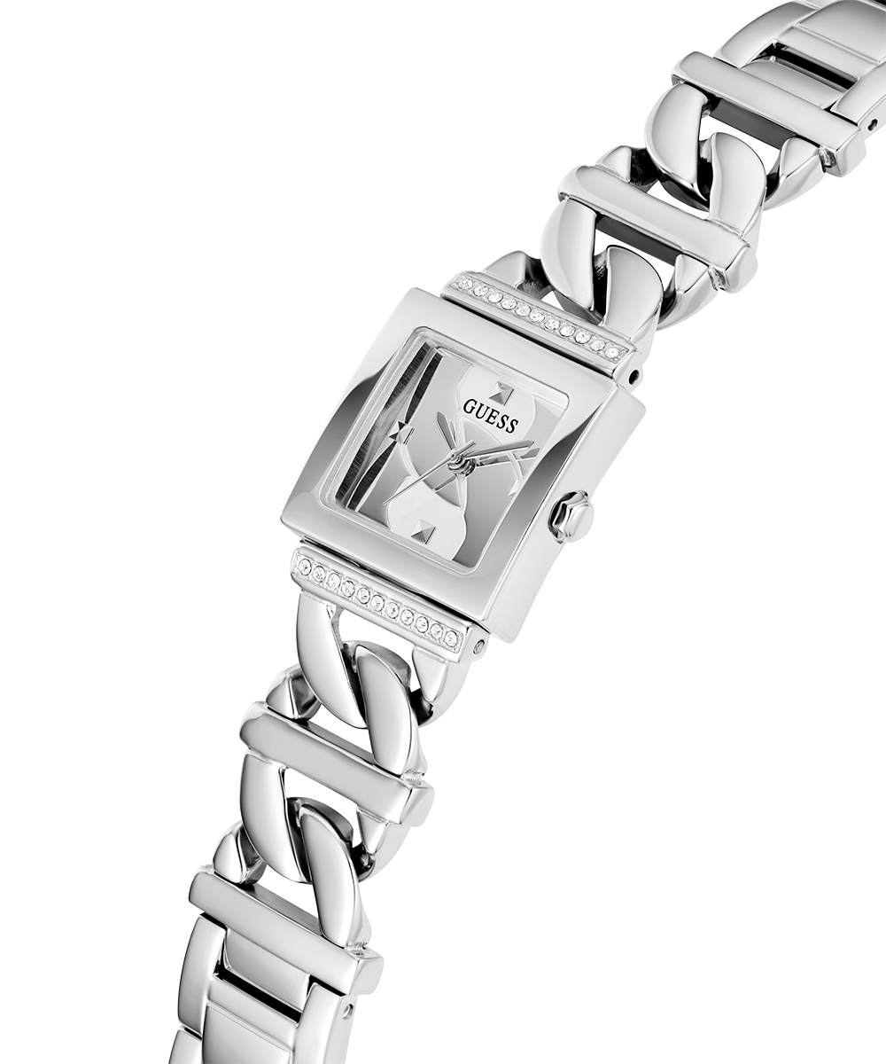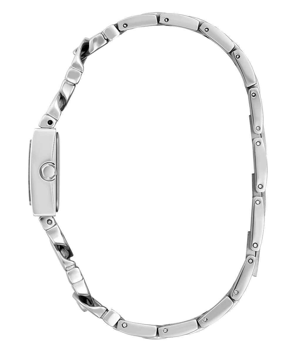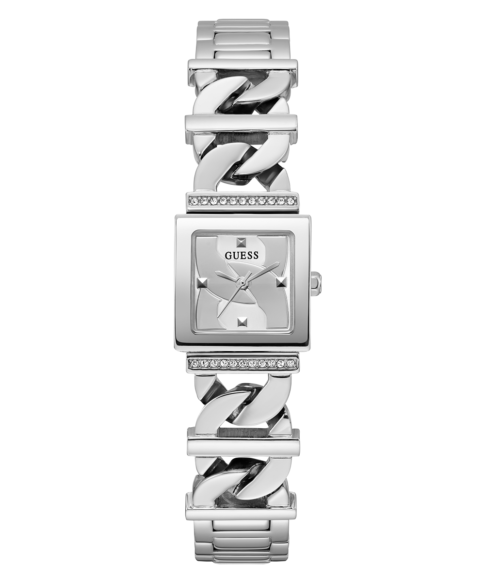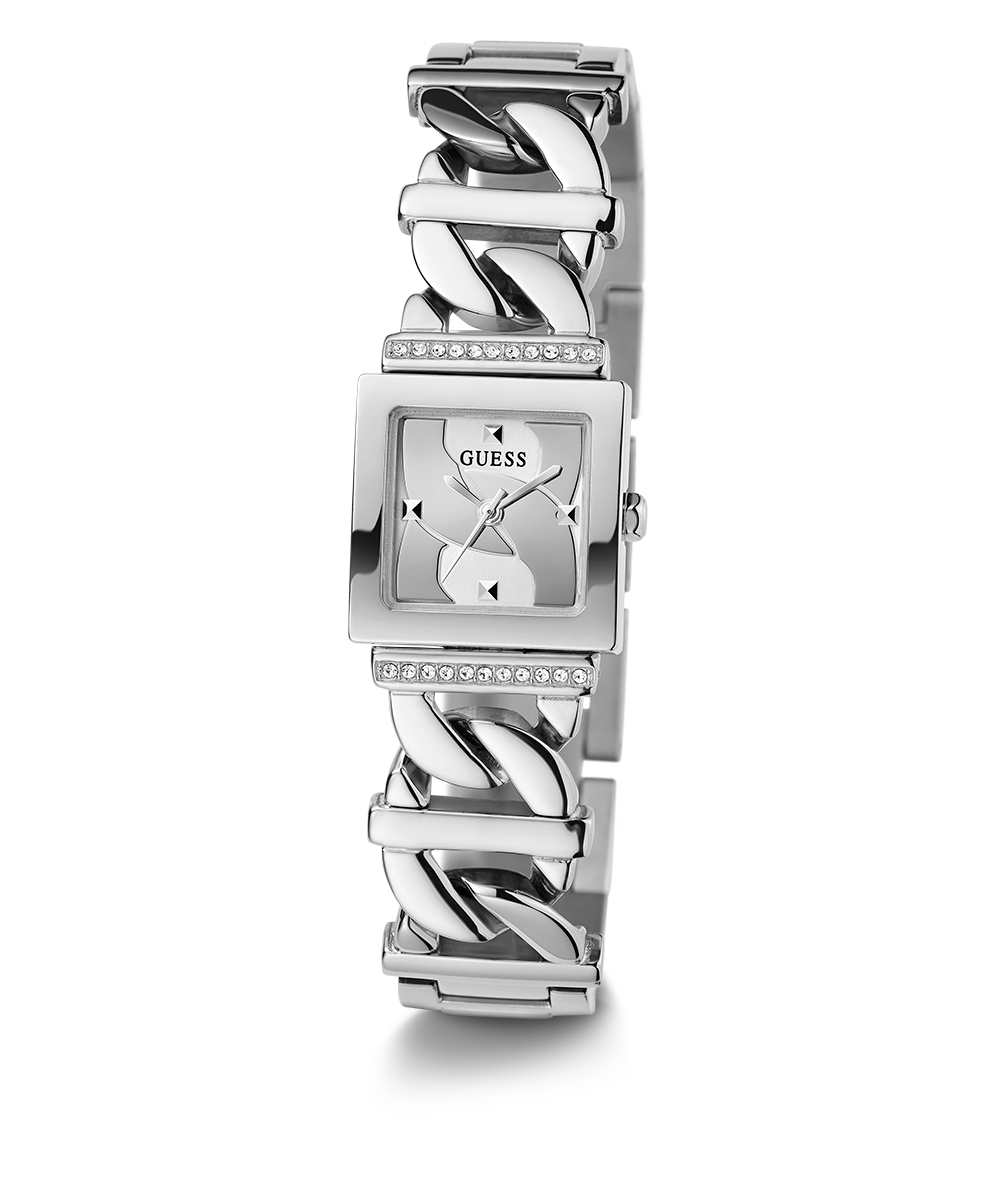 A chain pattern that also continues through the dial making it seamless. It can be paired with additional bracelets or worn alone for an overall chain look.