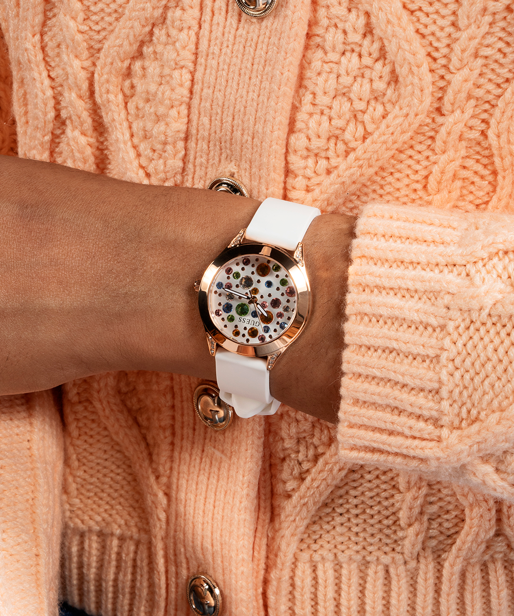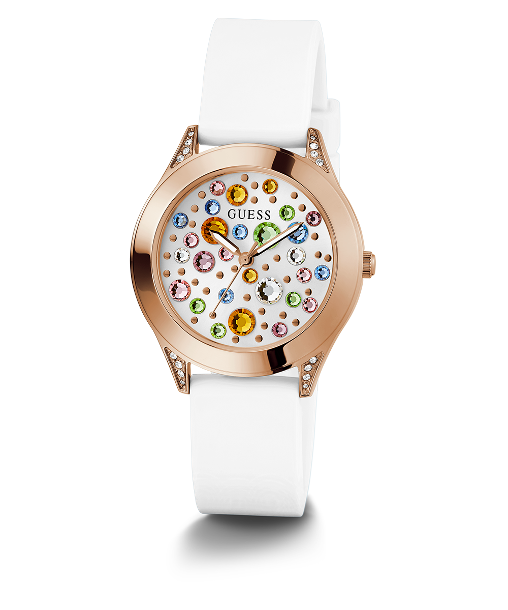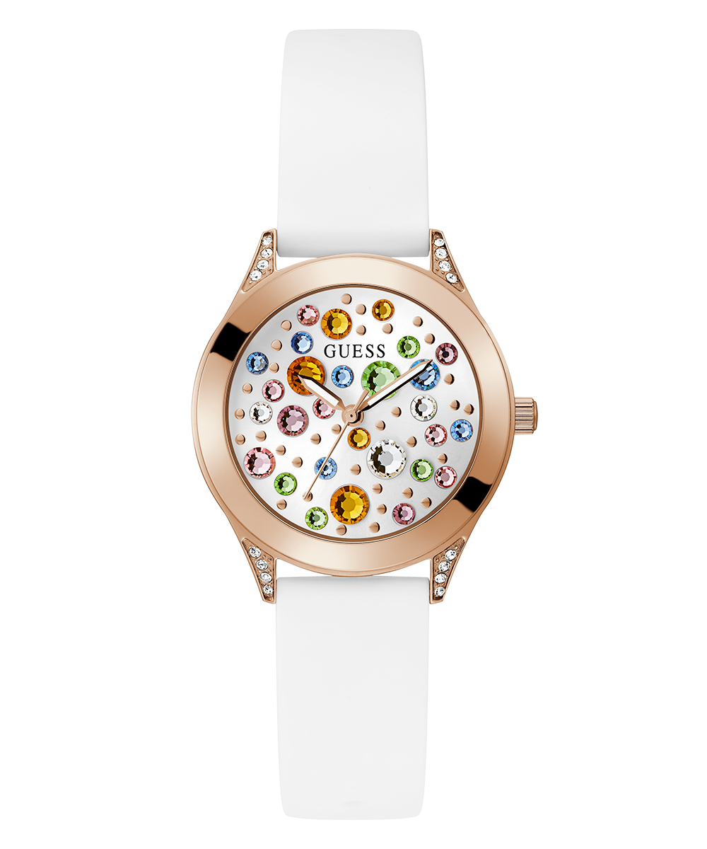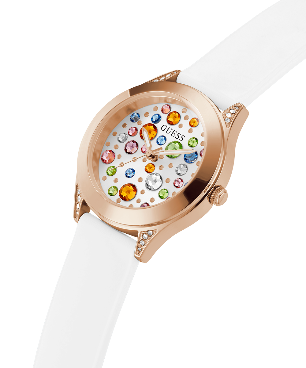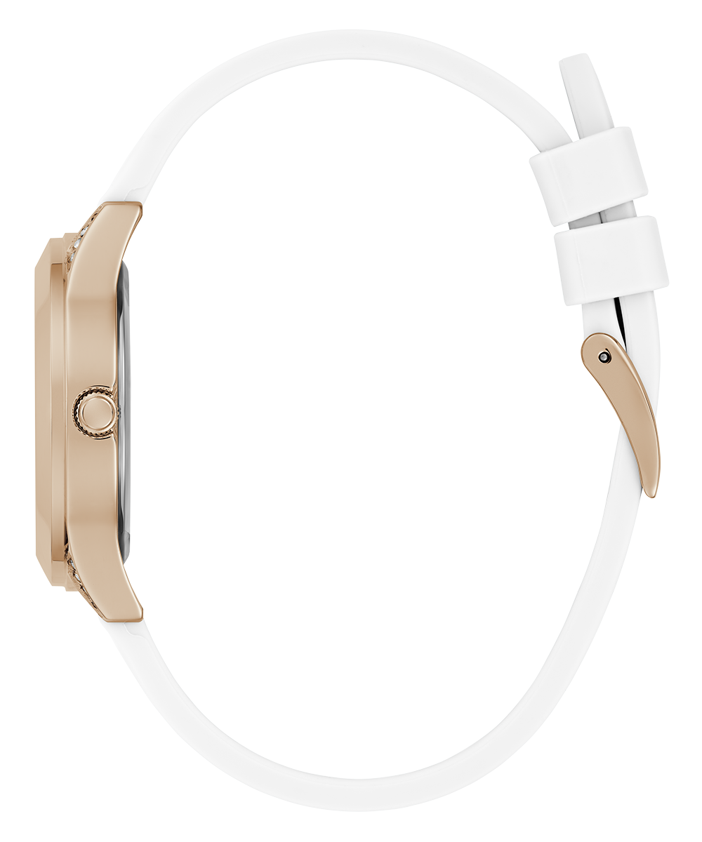 GUESS Ladies White Rose Gold Tone Analog Watch