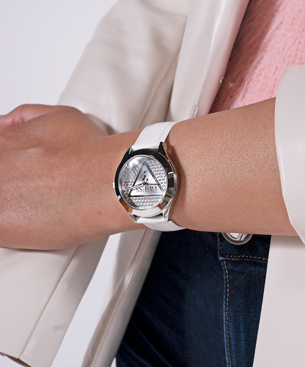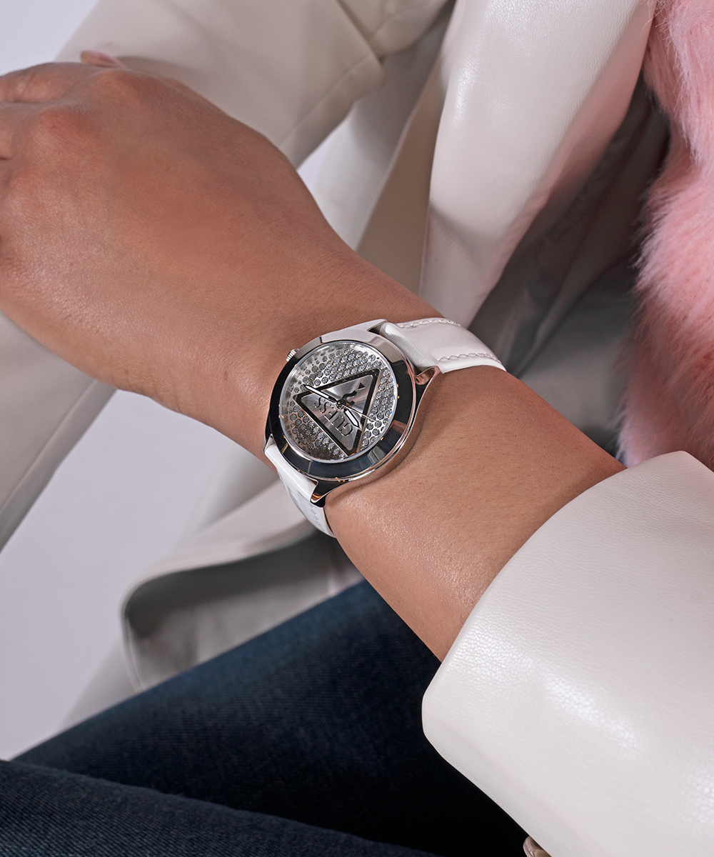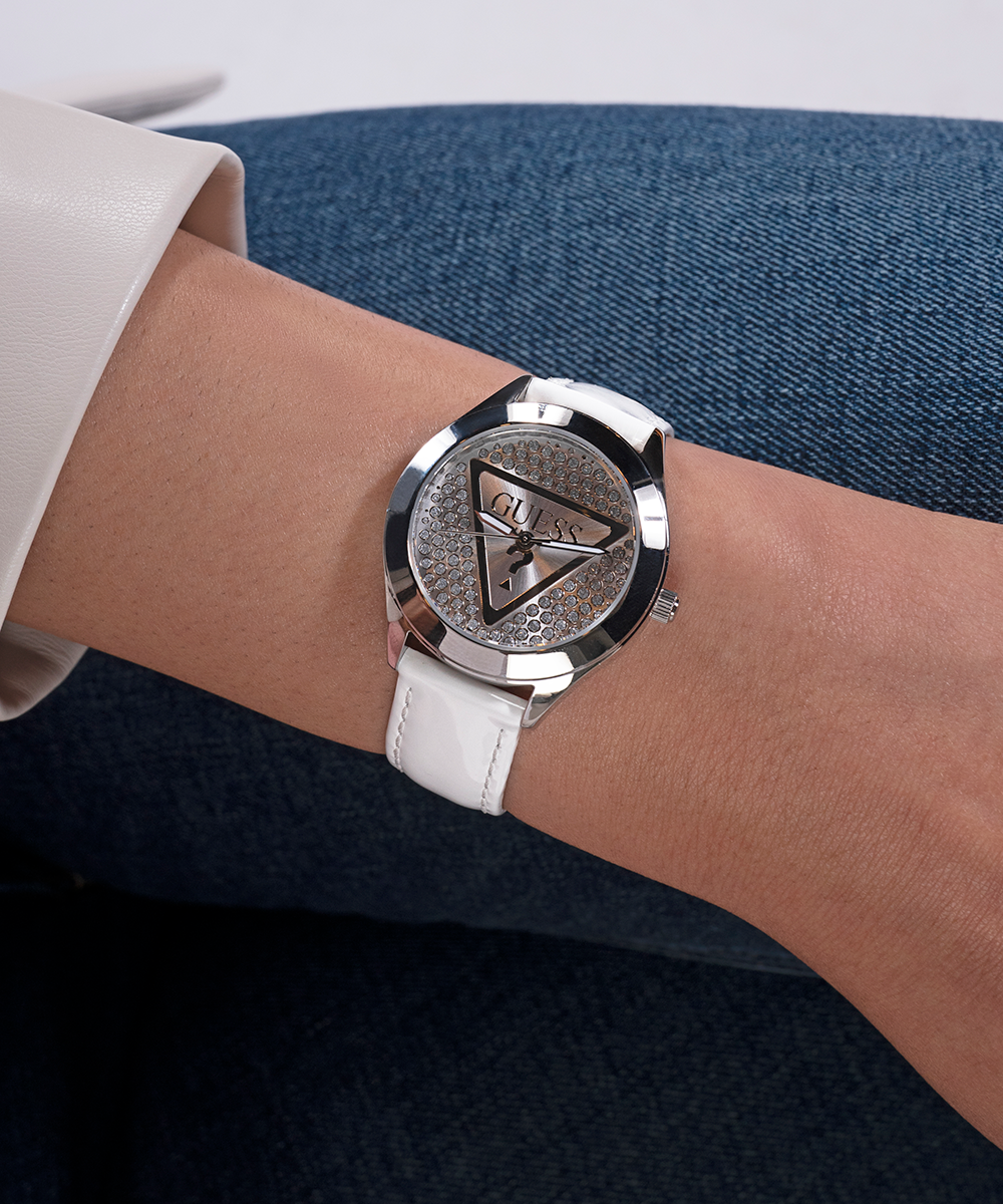 Go to the shopSure to be a staple in your watch wardrobe, this style features a polished case with a glitzed out dial and a triangle logo plaque.