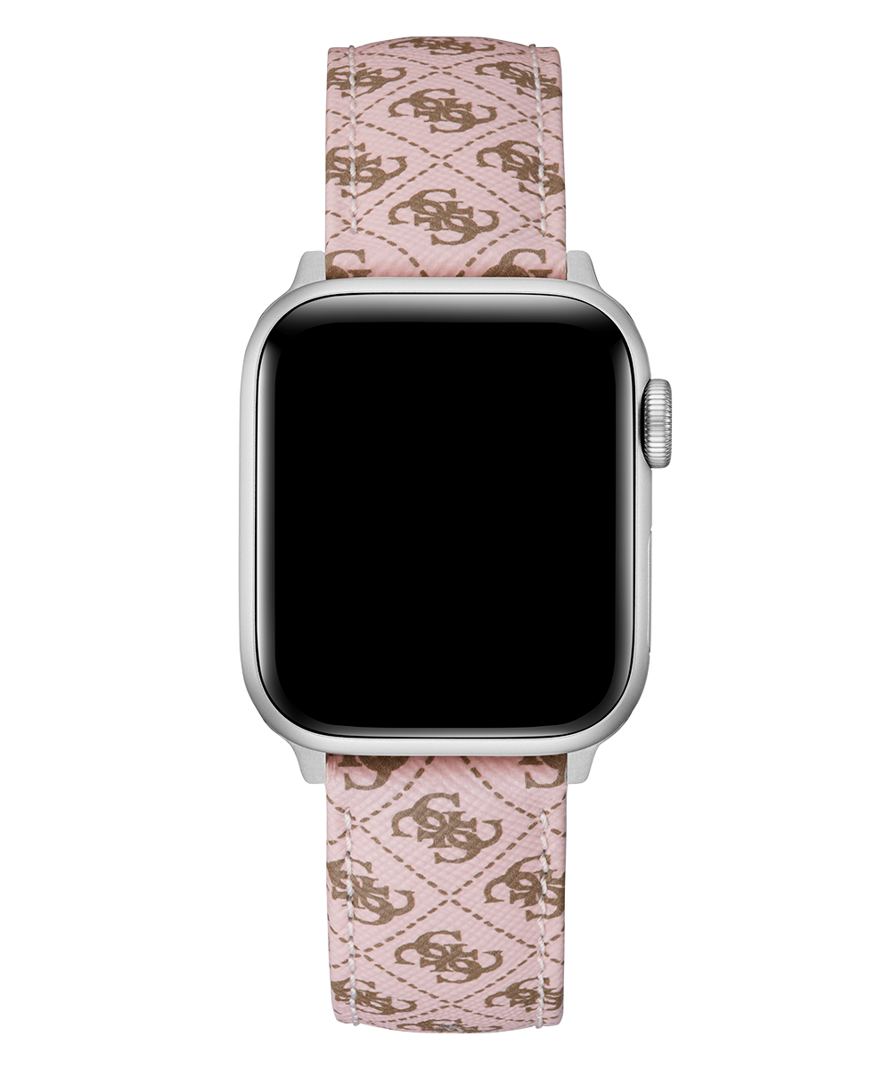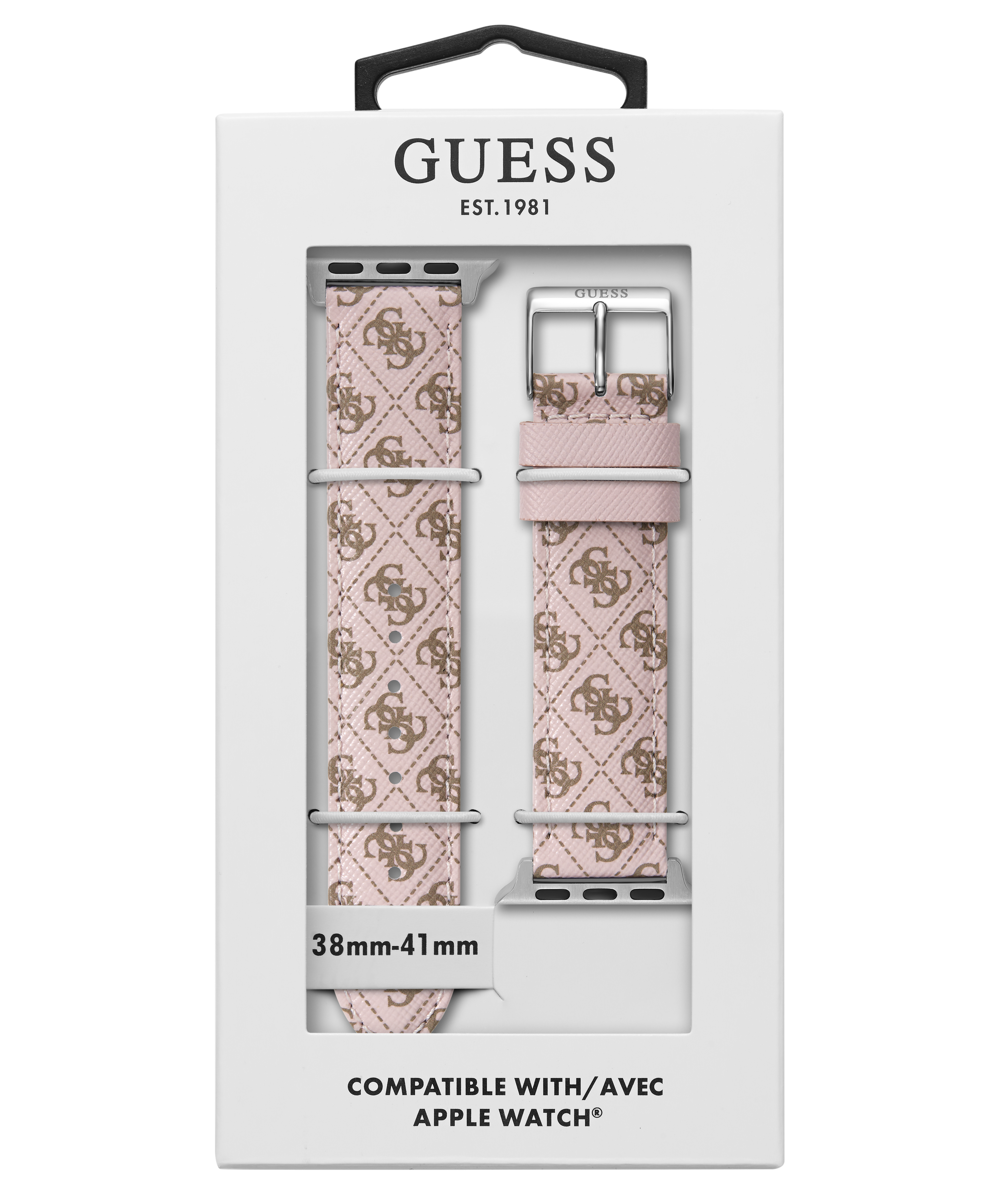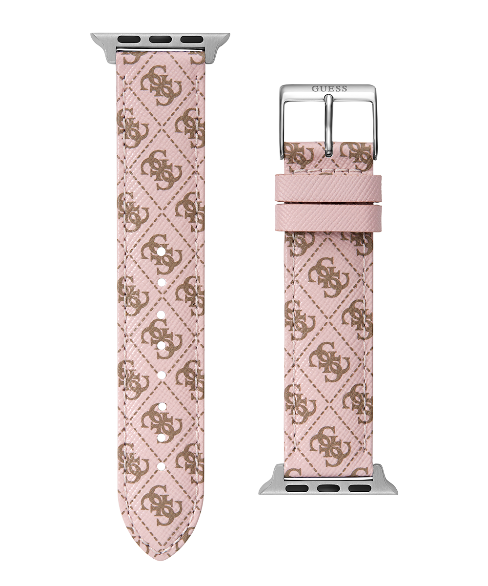 Go to the shopShow your love for GUESS with this signature quattro "G" pattern in taupe on a pink leather strap that is compatible with Apple Watches 38-40 mm. *Apple Watch not included