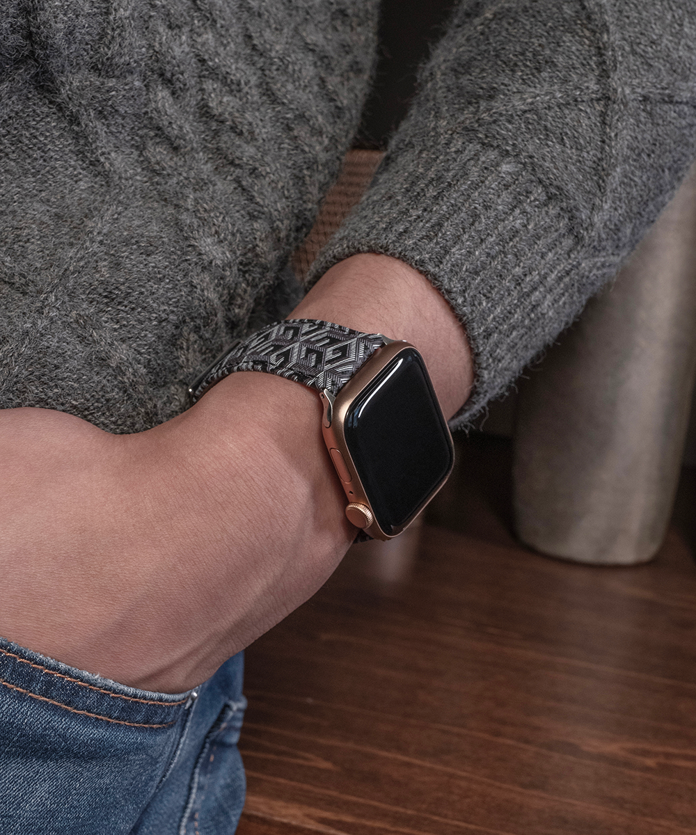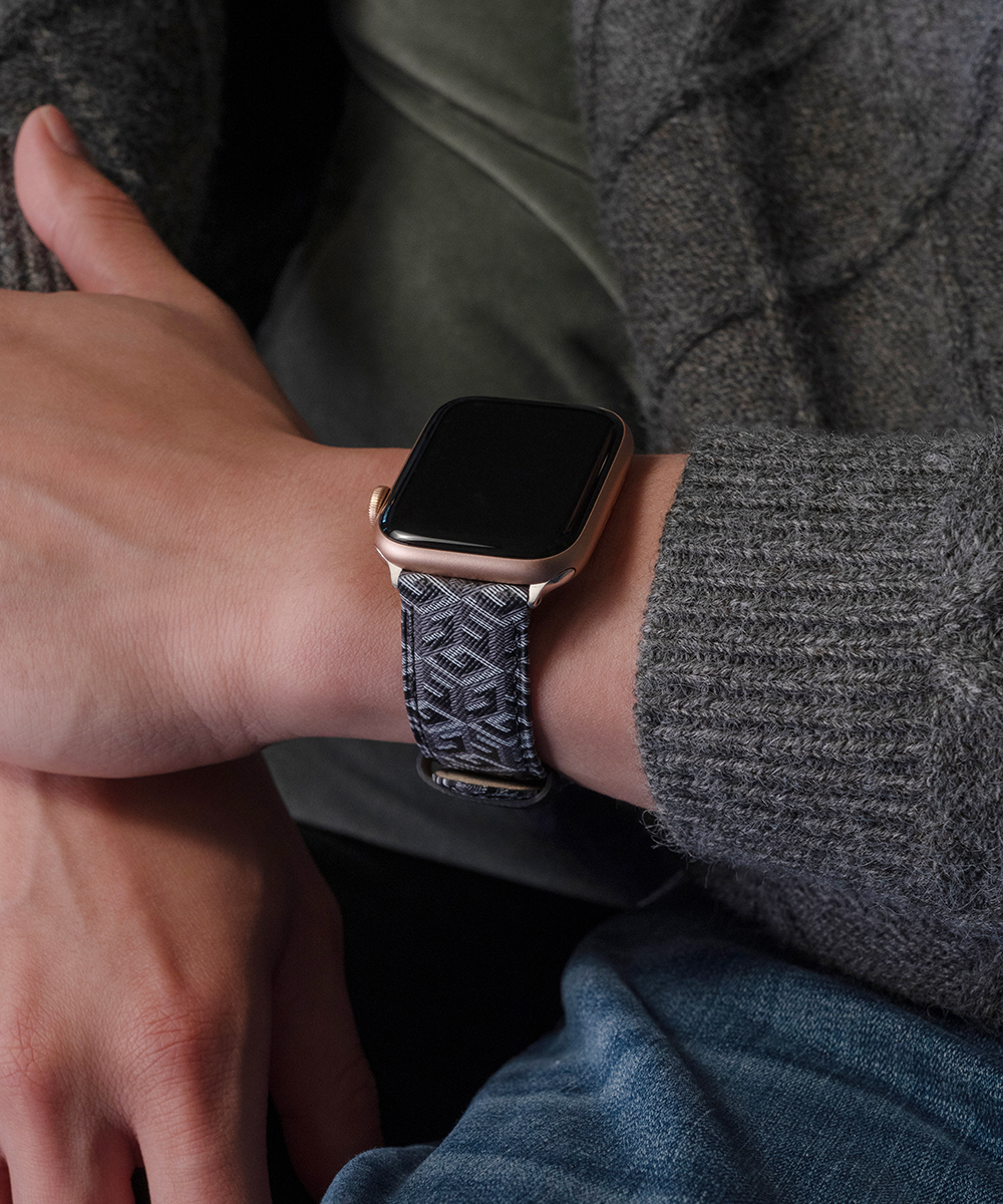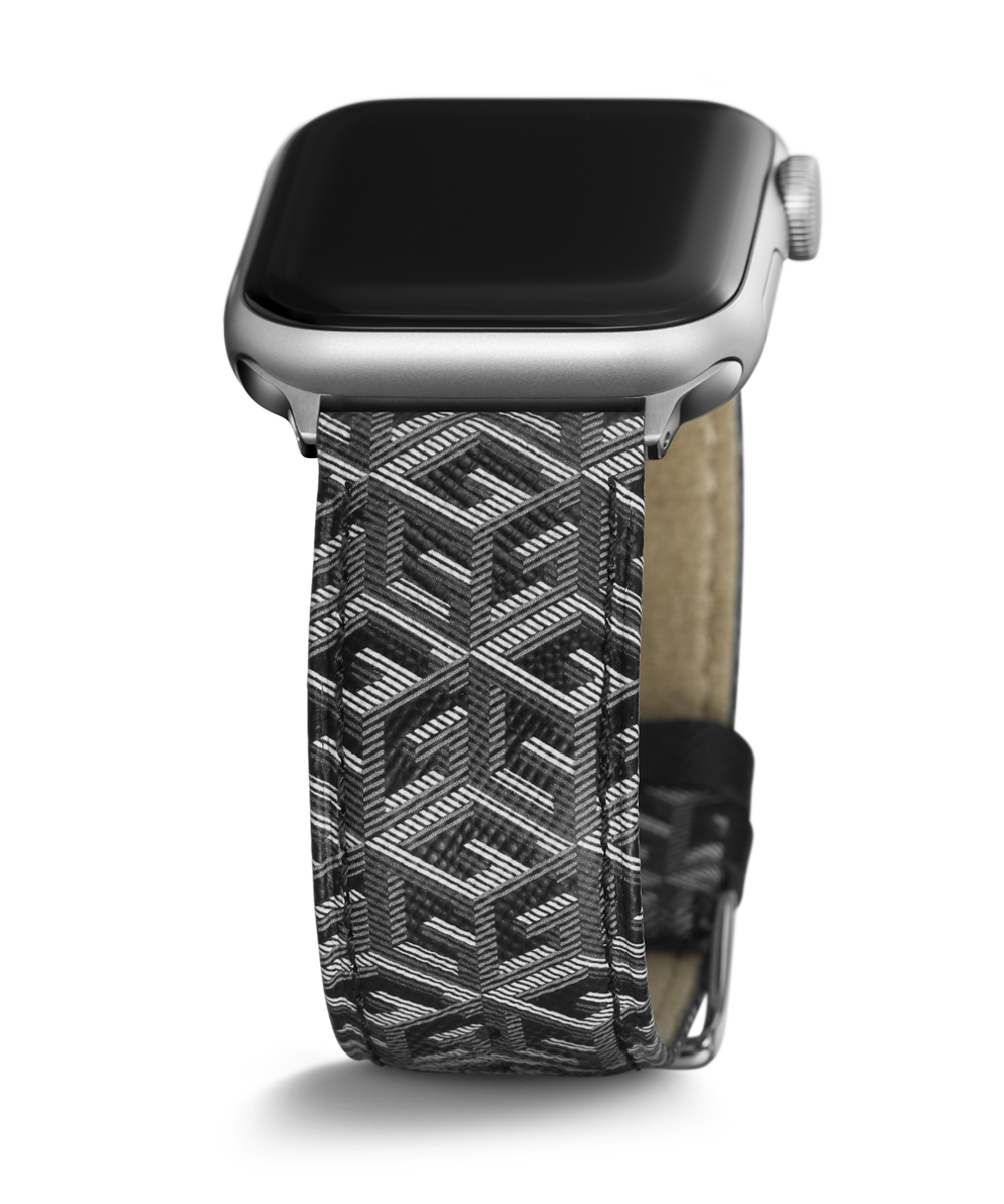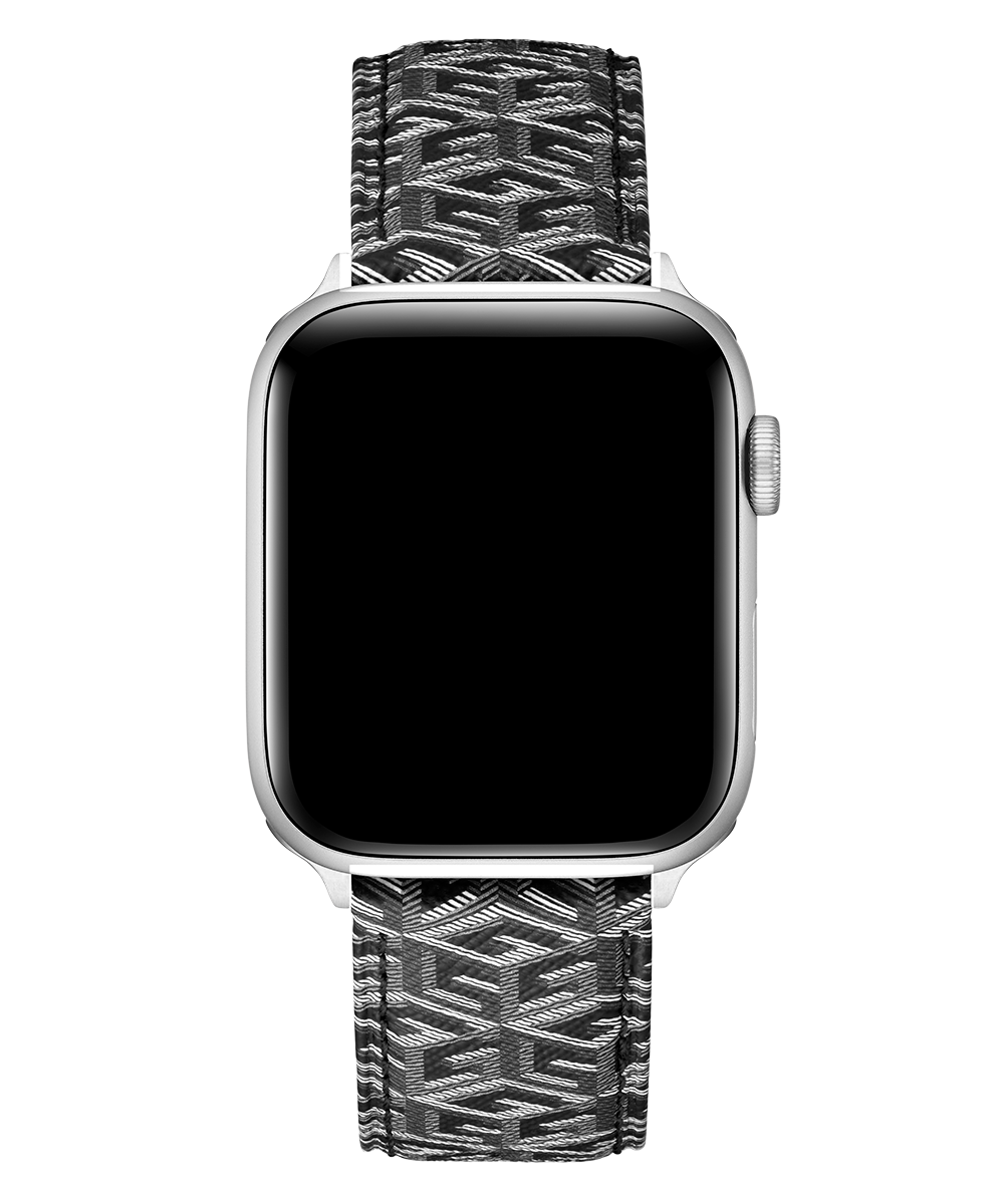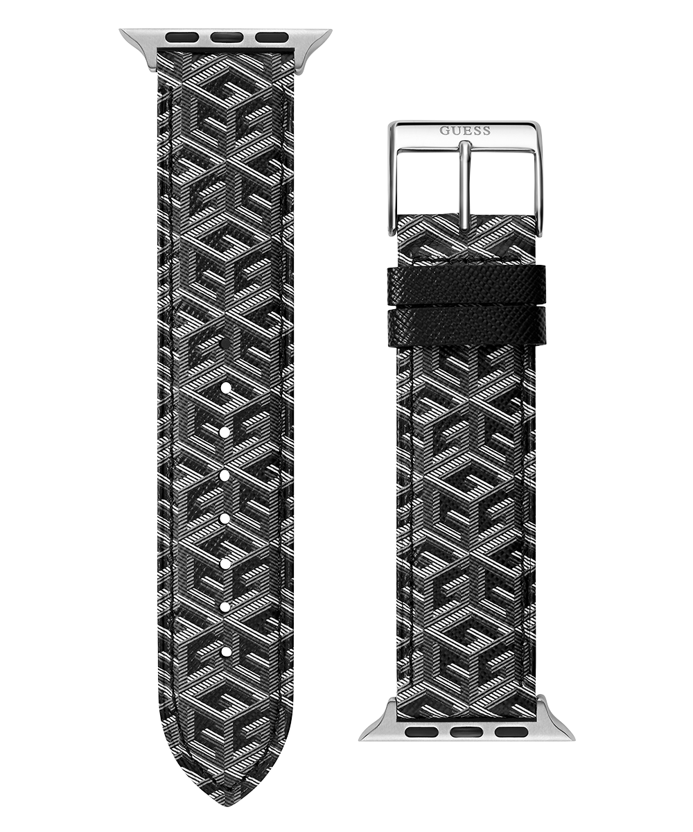 Go to the shopShow your love for GUESS with this signature G CUBE pattern on a charcoal grey leather strap that is compatible with Apple Watches 42-44 mm. *Apple Watch not included