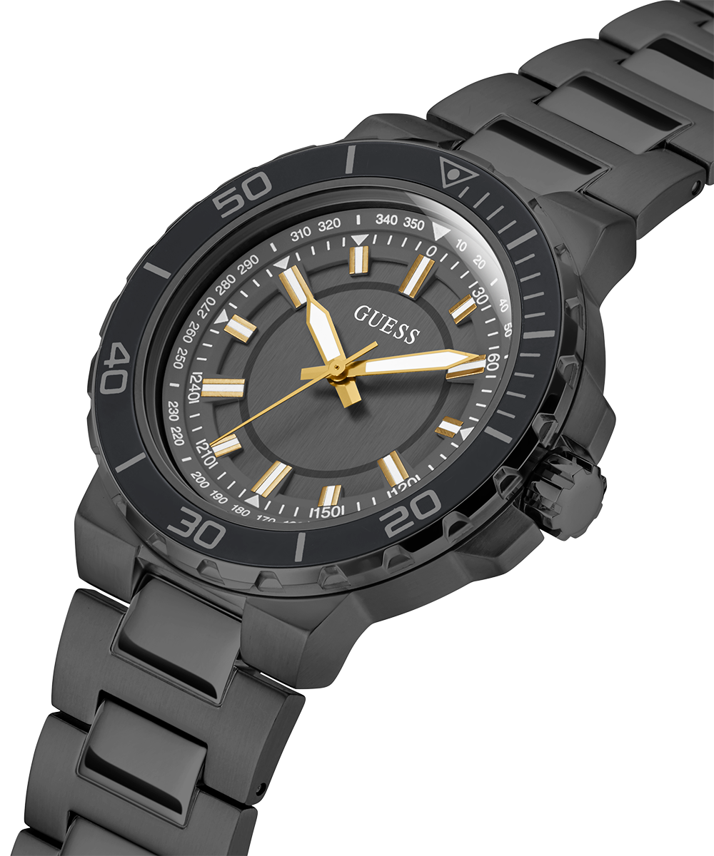 Get on track with this diver inspired classic! An intricately designed dial with multi-layers is paired with a sturdy integrated bracelet.