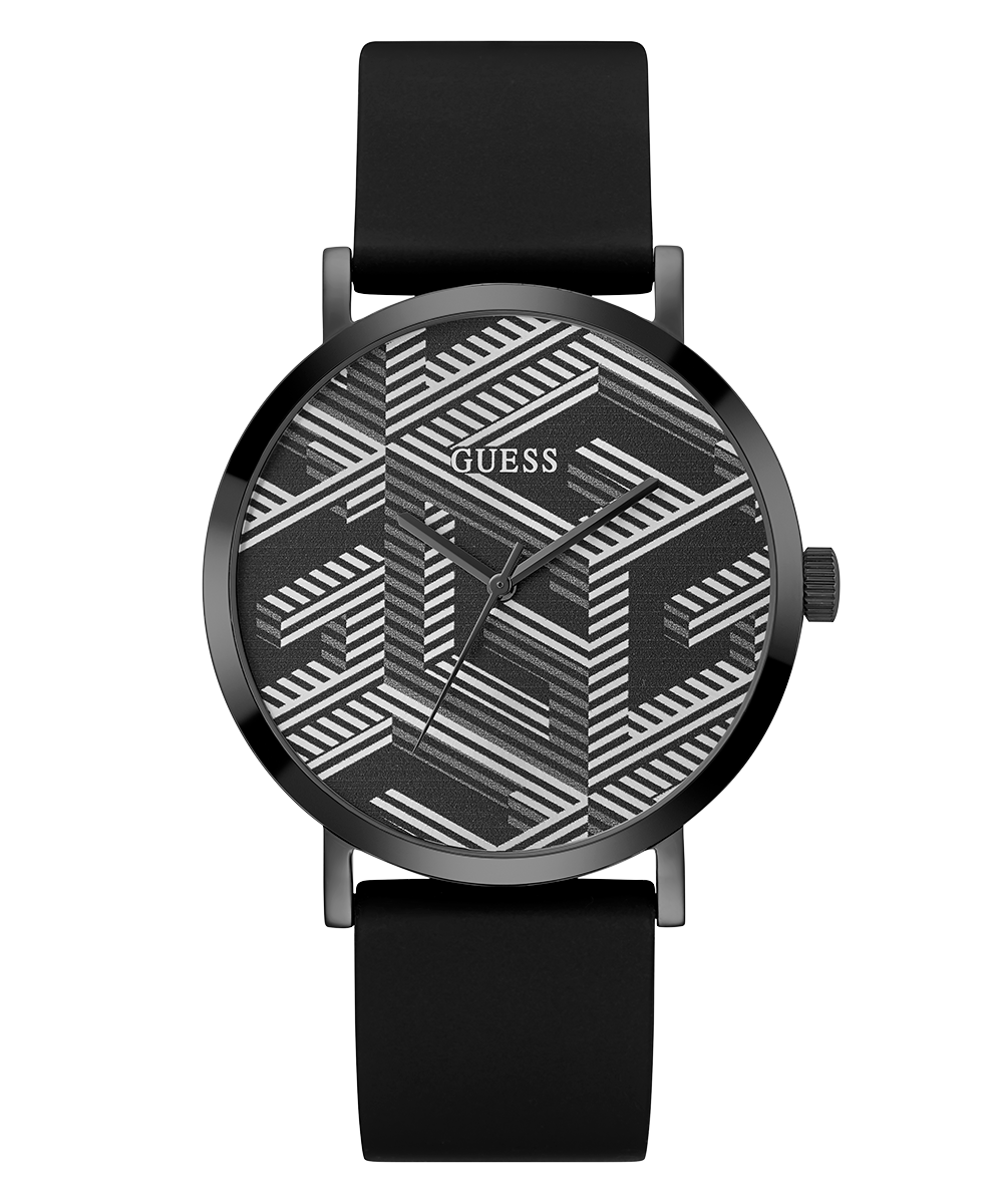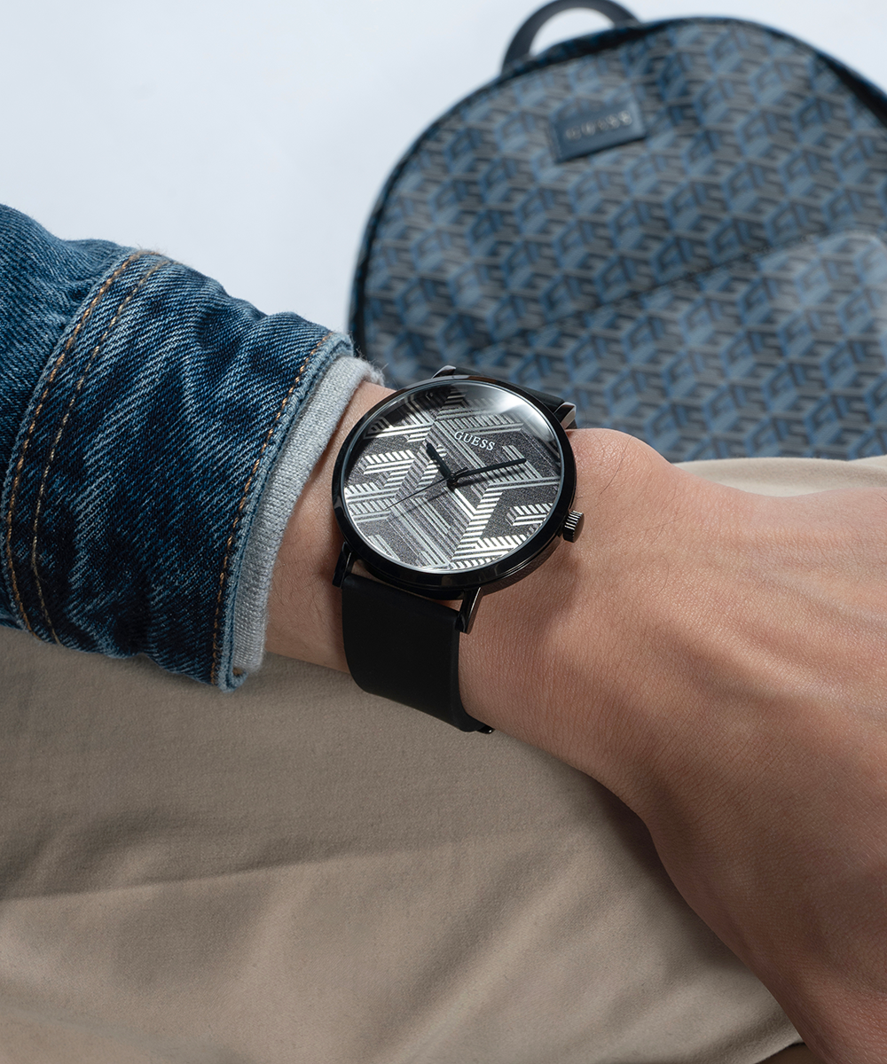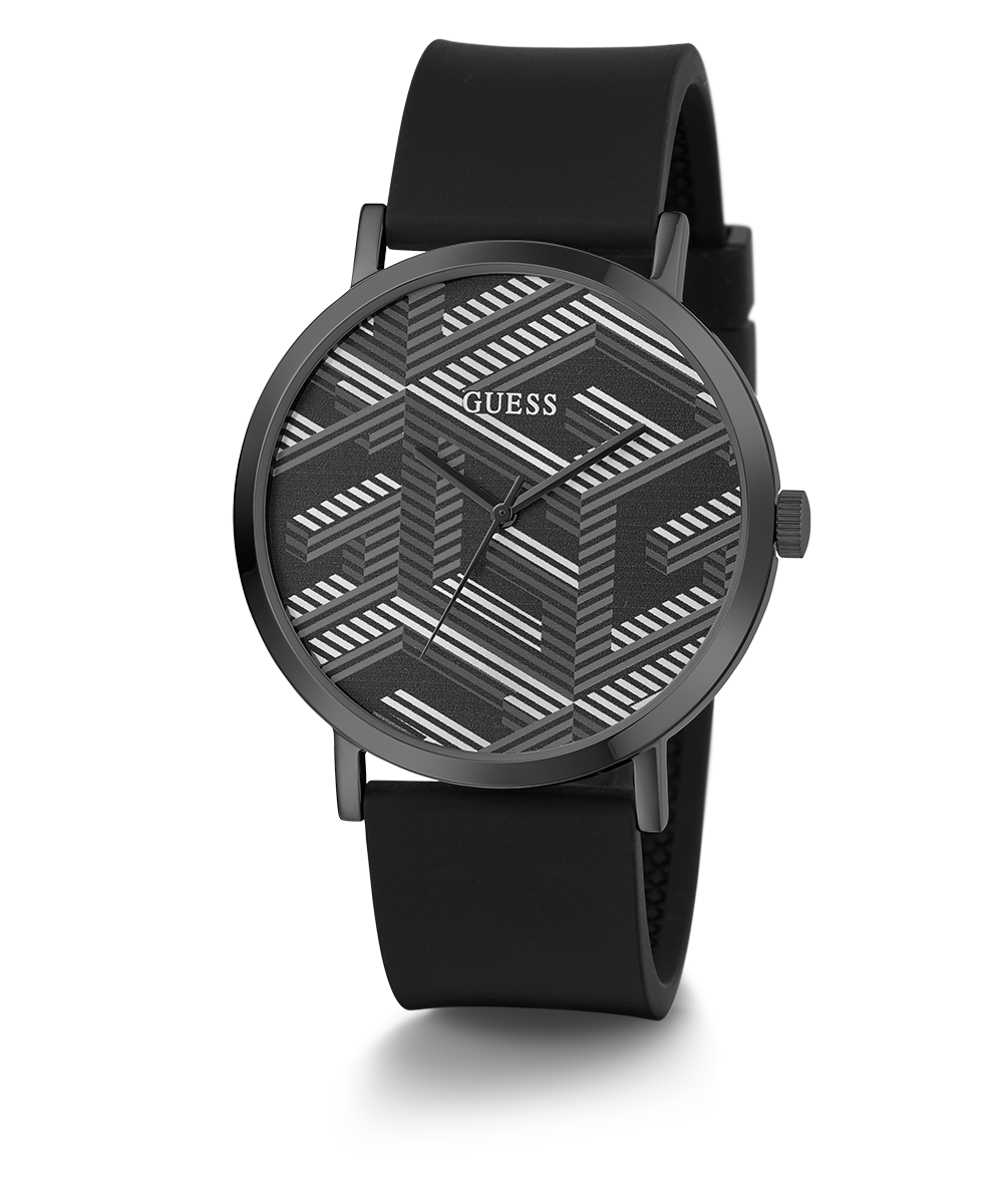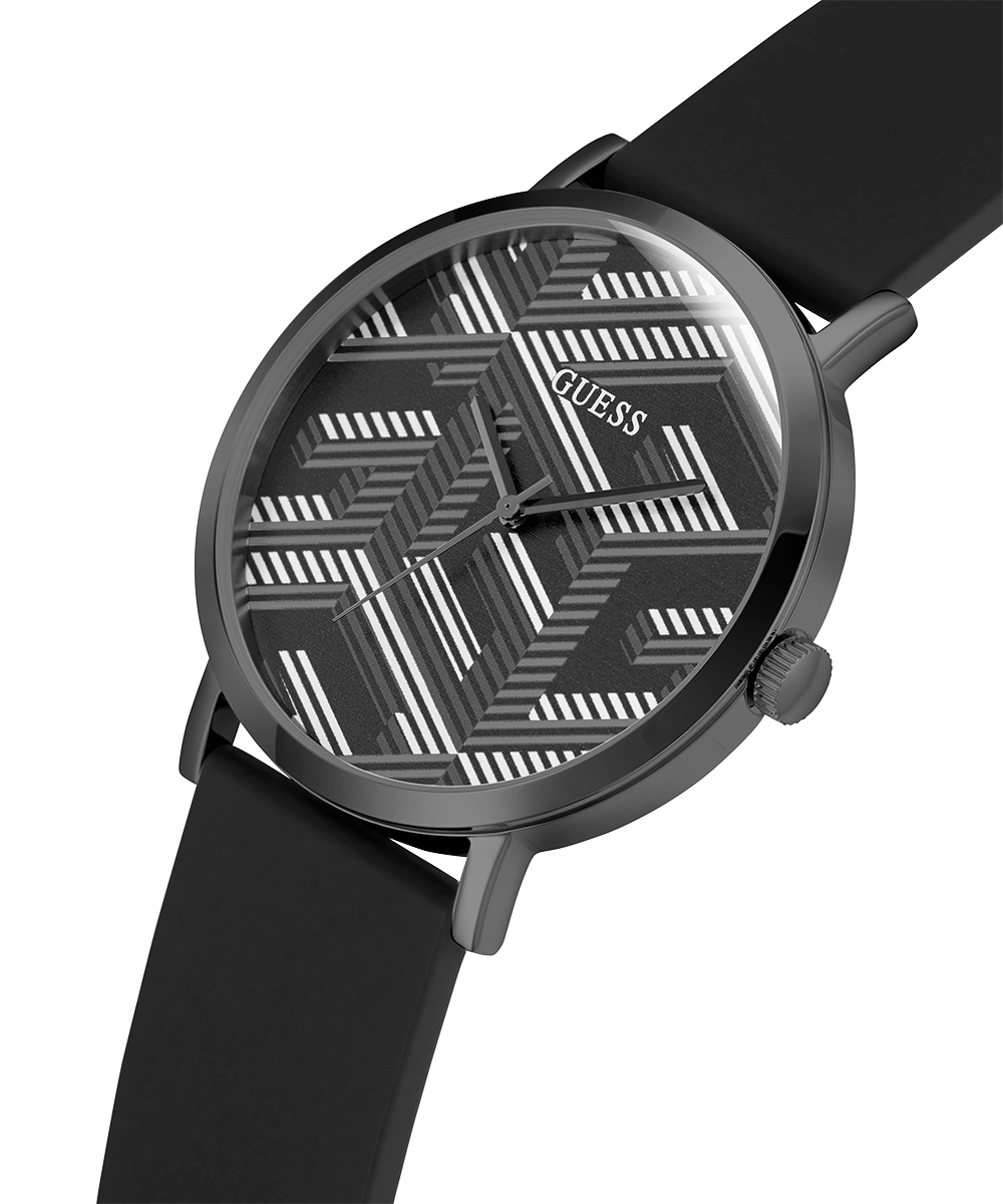 An understated case design on this watch gives way to a 3D G cube logo pattern and smooth silicone strap