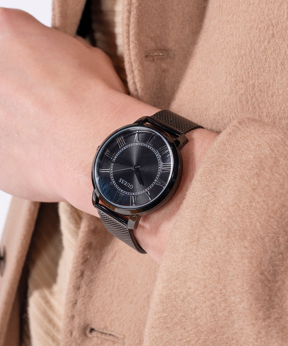 This new clean dress look is sure to be a staple in your watch wardrobe with a clean dial featuring roman numerals and a self-adjustable mesh strap.
