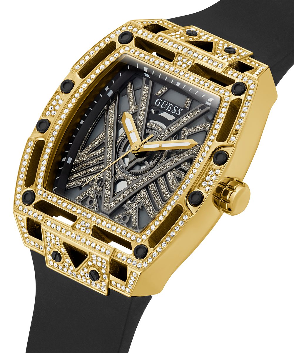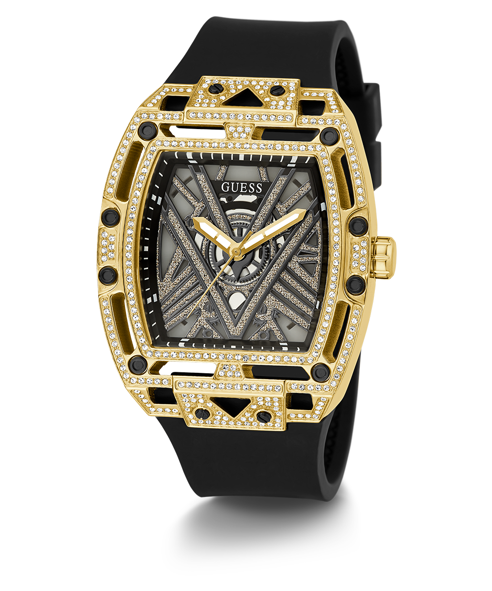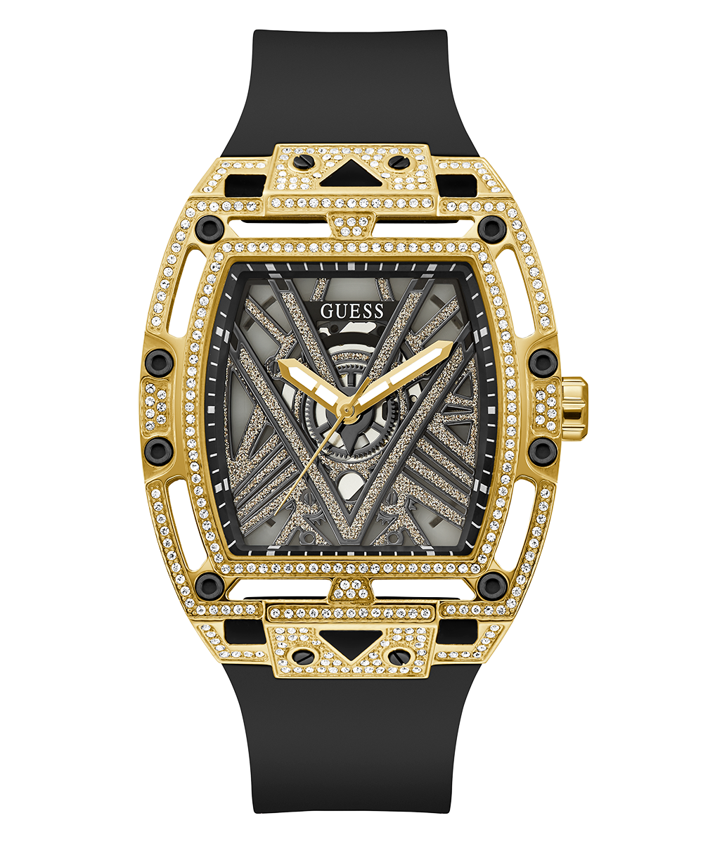 GUESS Mens Black Gold Tone Analog Watch