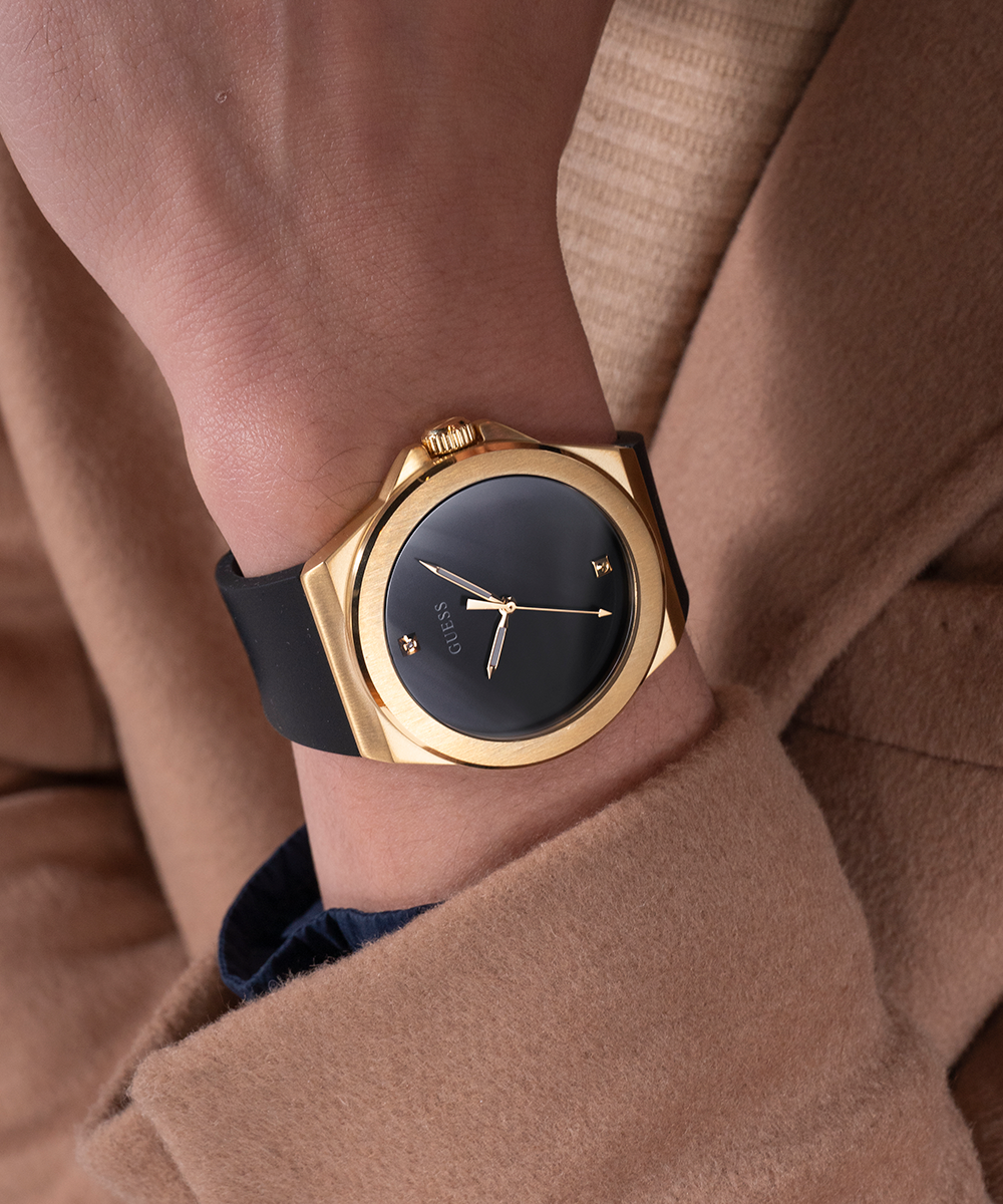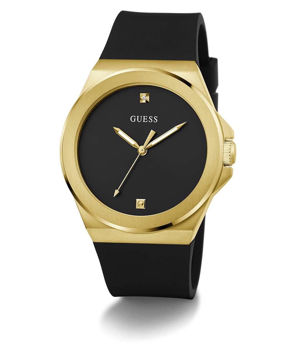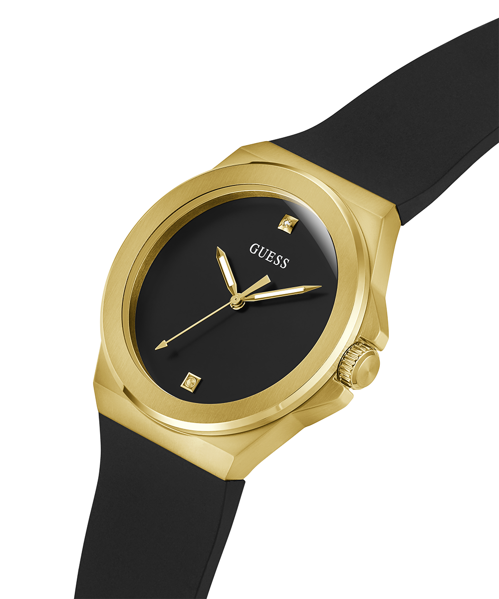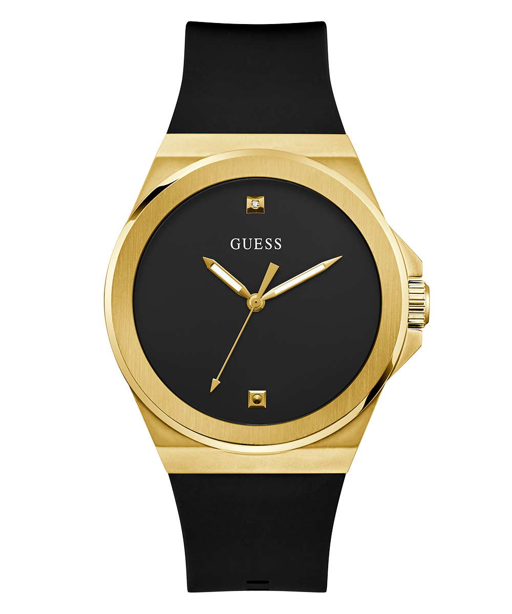 GUESS Mens Black Gold Tone Analog Watch