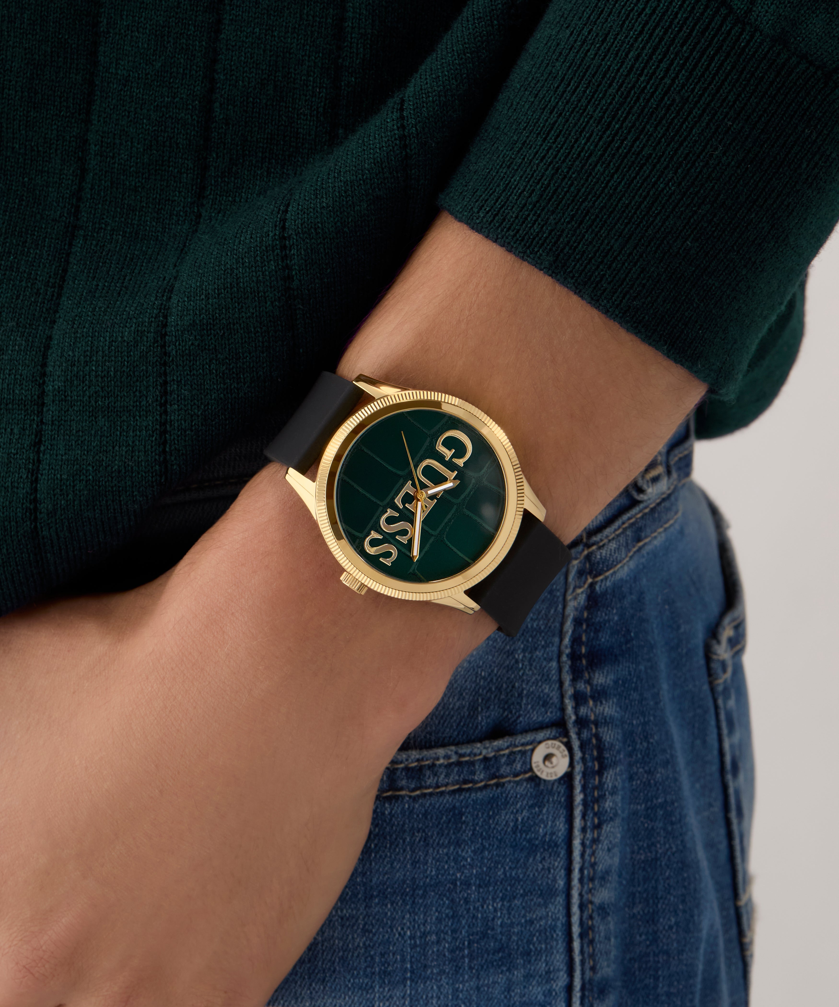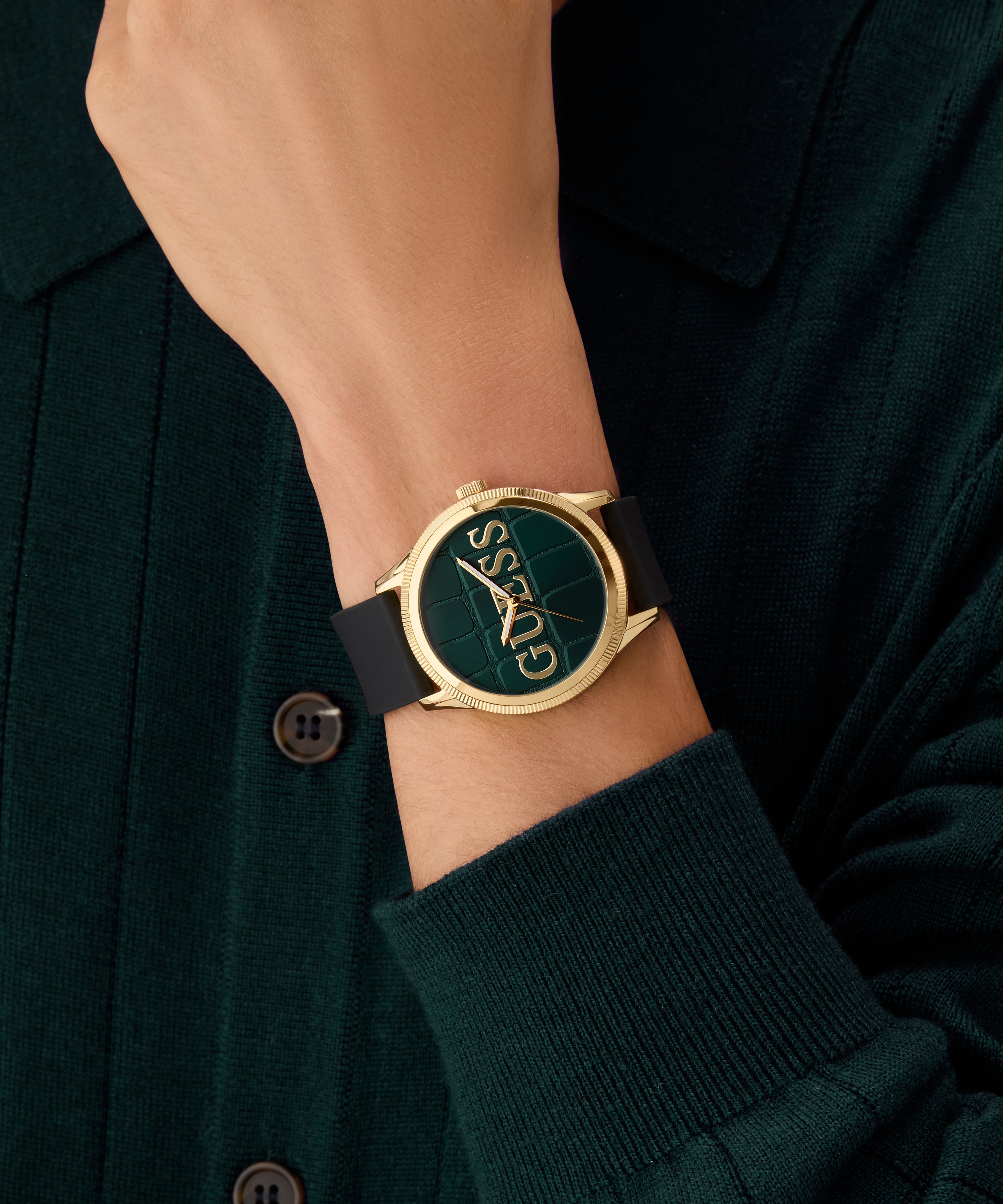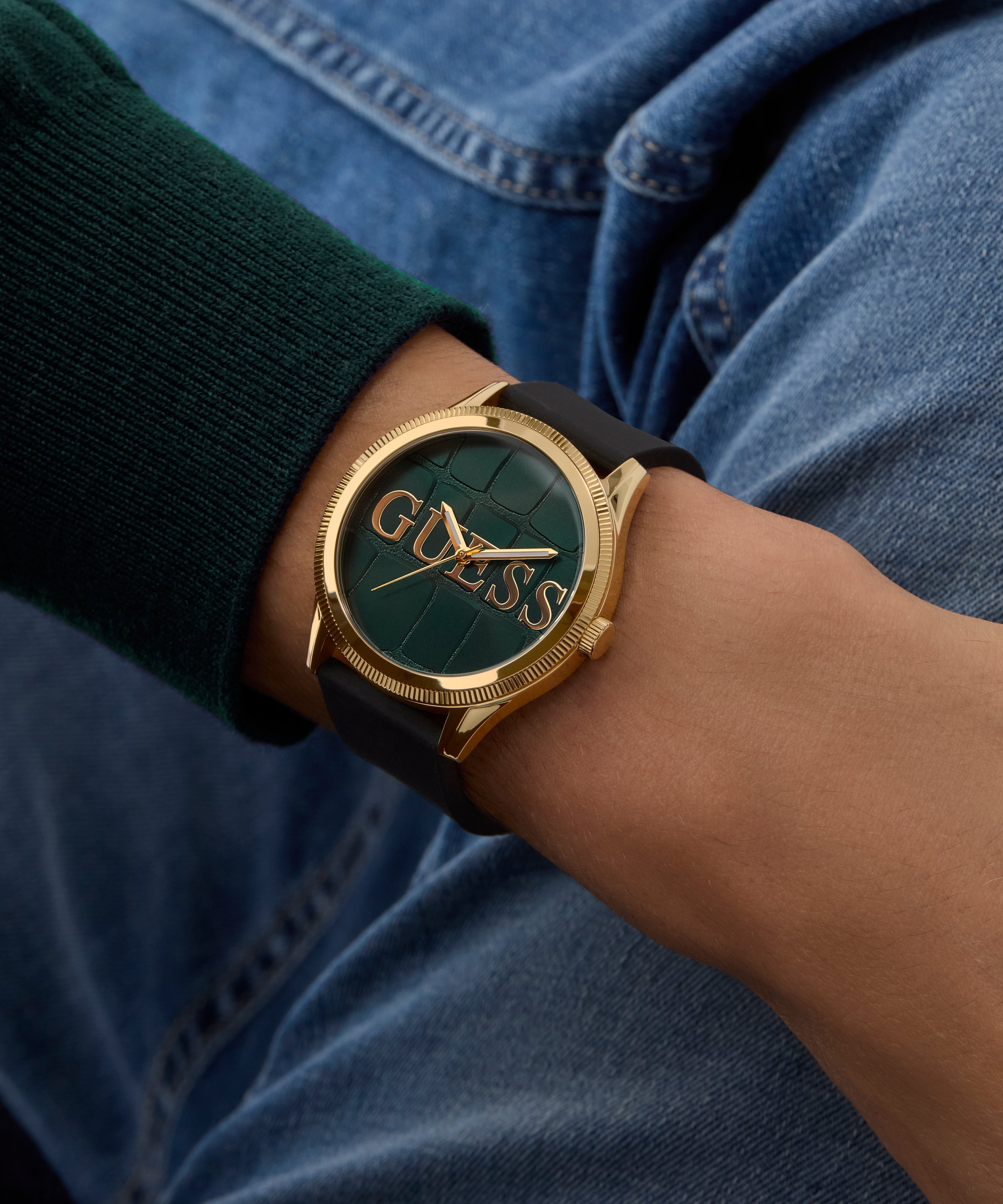 Let your reputation precede you with this new logo look featuring a croco pattern on the dial and a smooth silicone strap.