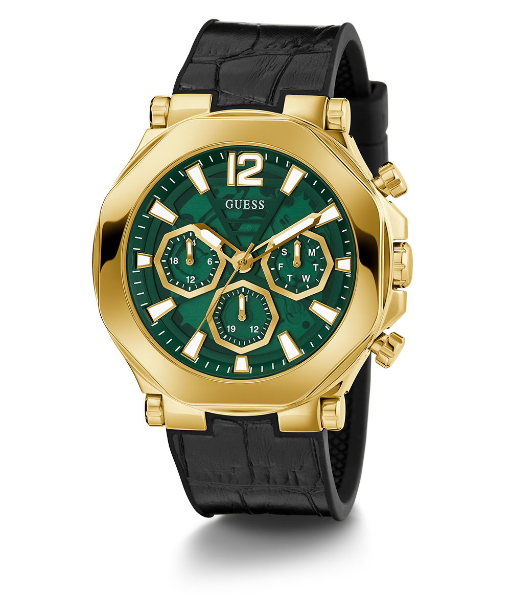 GUESS Mens Black Gold Tone Multi-function Watch