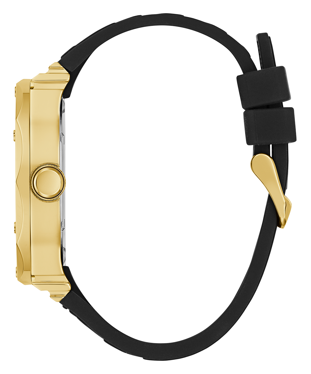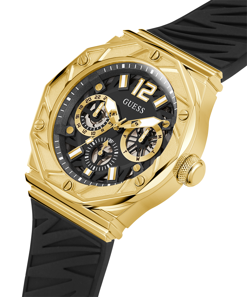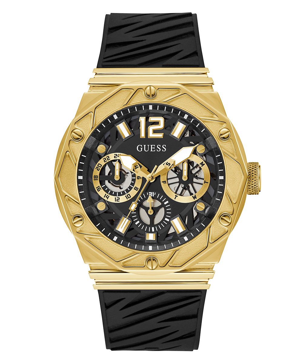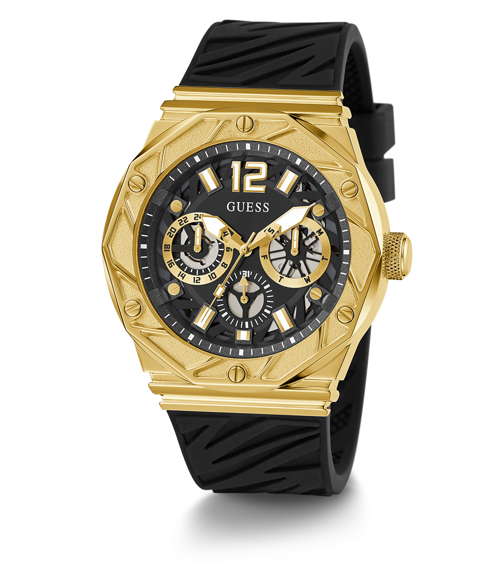 A riveting multi-function watch with textured details on the case and strap give an overall edgy look